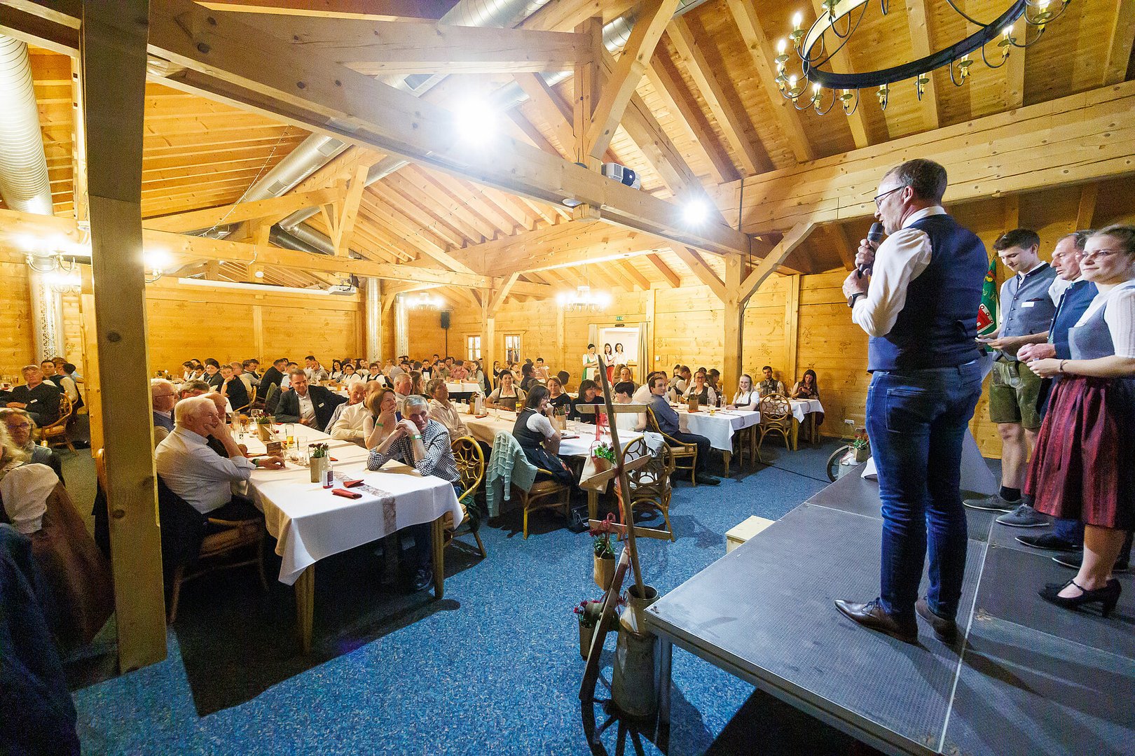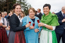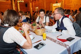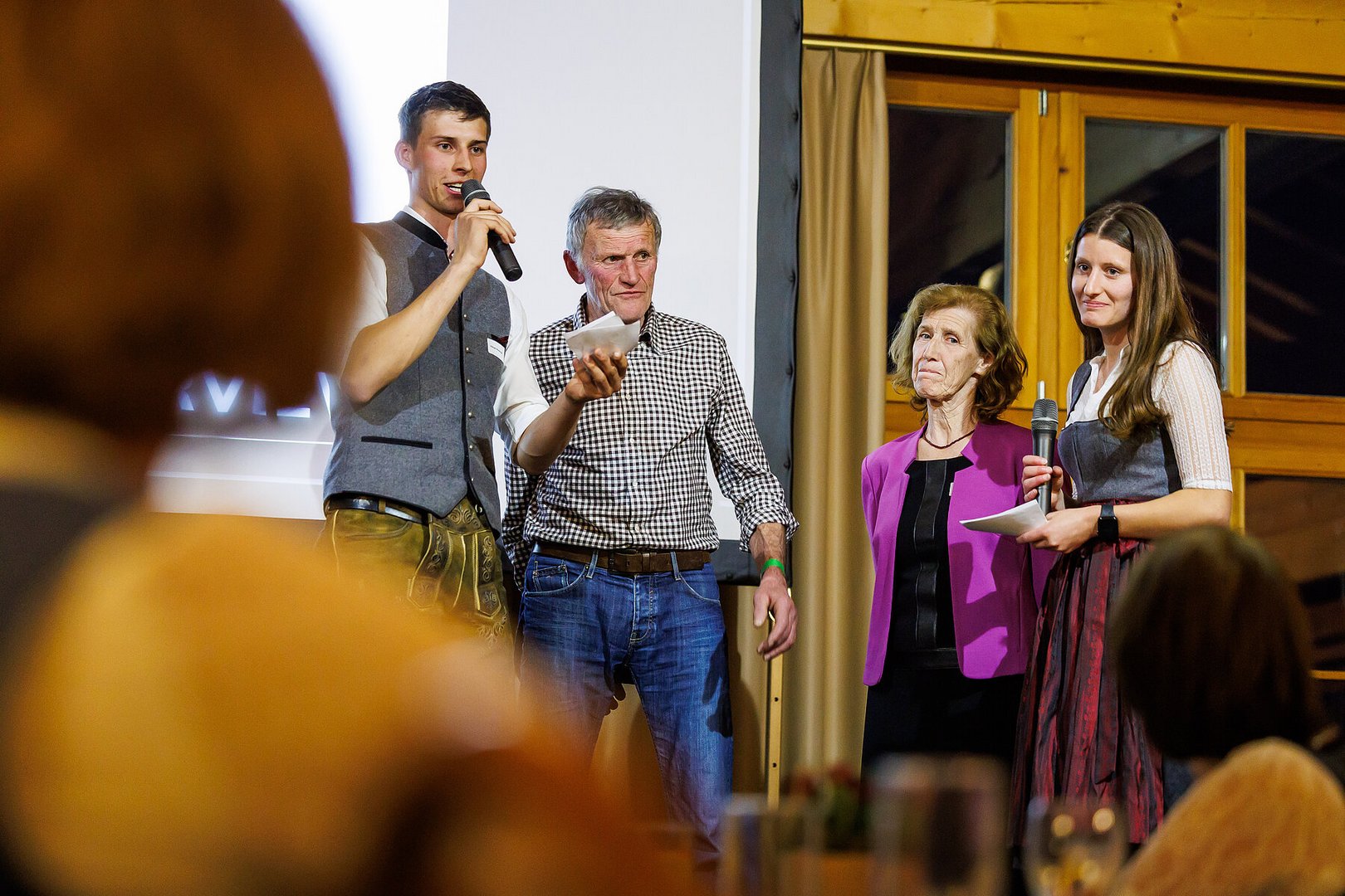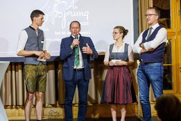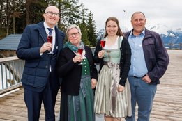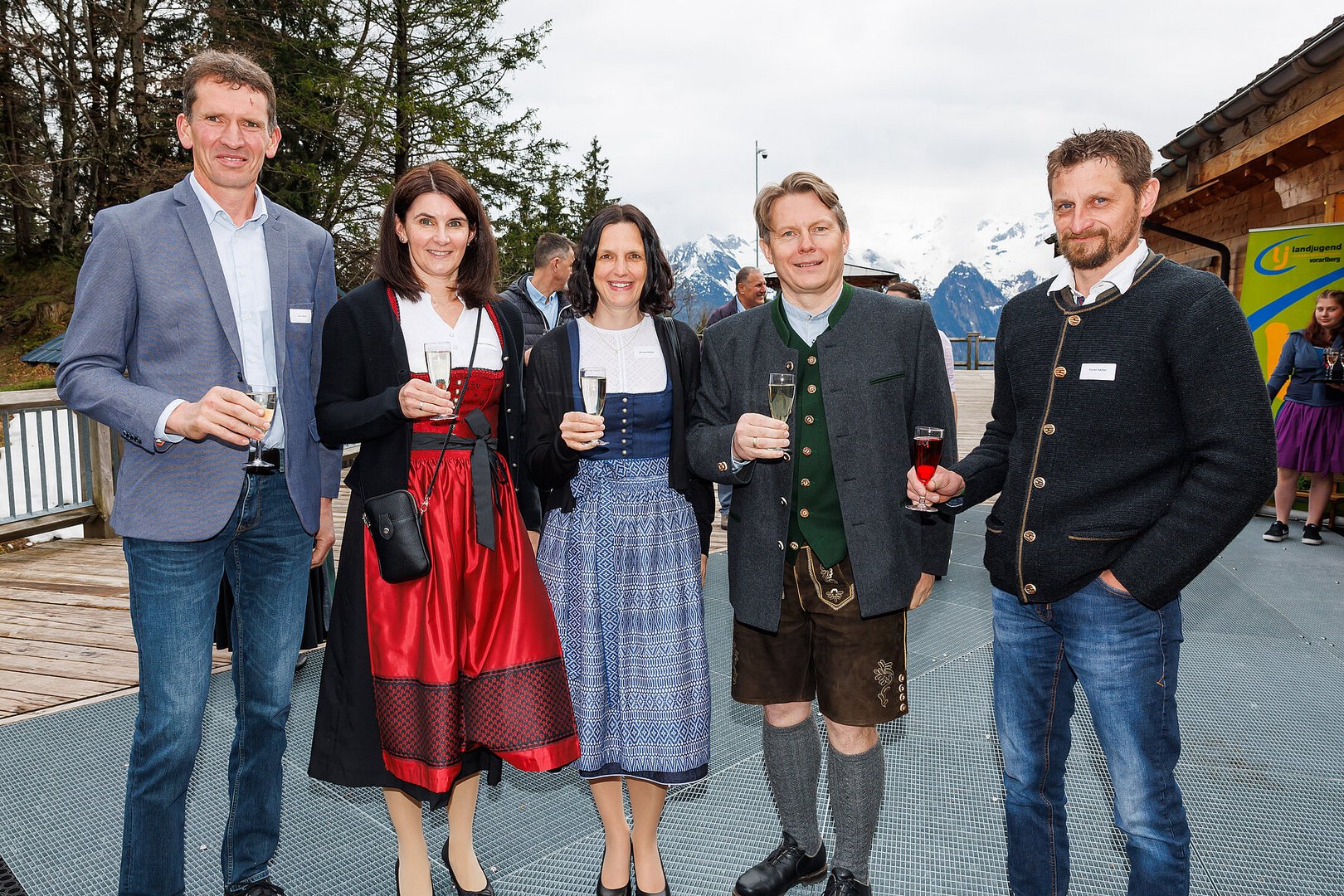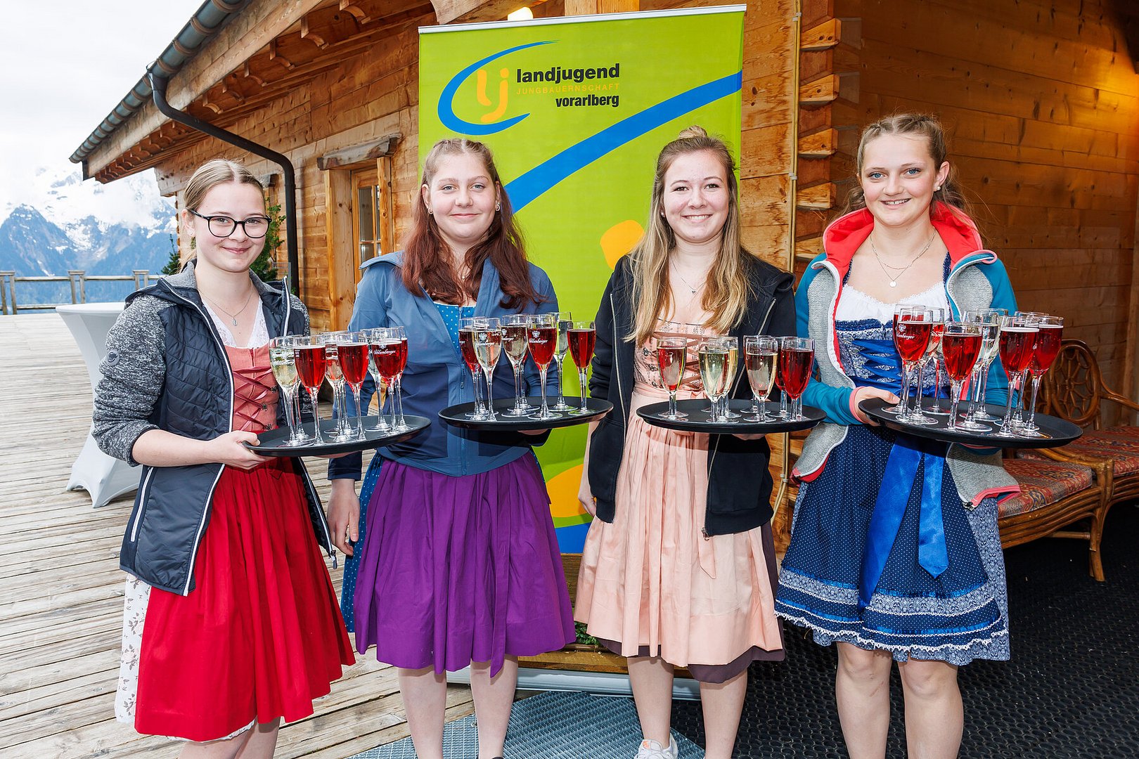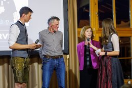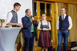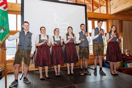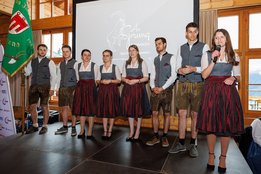 Der Abend begann mit einem leckeren Aperitif und Alphornklängen der Familie Wachter Alphornpower aus Riefensberg. Im Anschluss wurden die Gäste offiziell von der aktuellen Landesleitung um Michael Meusburger und Christina Dünser begrüßt, davor durfte natürlich der Einzug mit der Vereinsfahne nicht fehlen. Christina und Michael stellten das Menü vor. Es bestand vollständig aus regionalen Lebensmitteln und durfte von den Geladenen im Anschluss direkt verkostet werden. Auch der süße Abschluss des Abends wurde von den Landesvorstandsmitgliedern selbst gemacht und von vier fleißigen Schülerinnen des Bäuerlichen Schul- und Bildungszentrum angerichtet. Akustisch genoss man die Klänge der Hausmusik Kraft aus St. Gallenkirch.