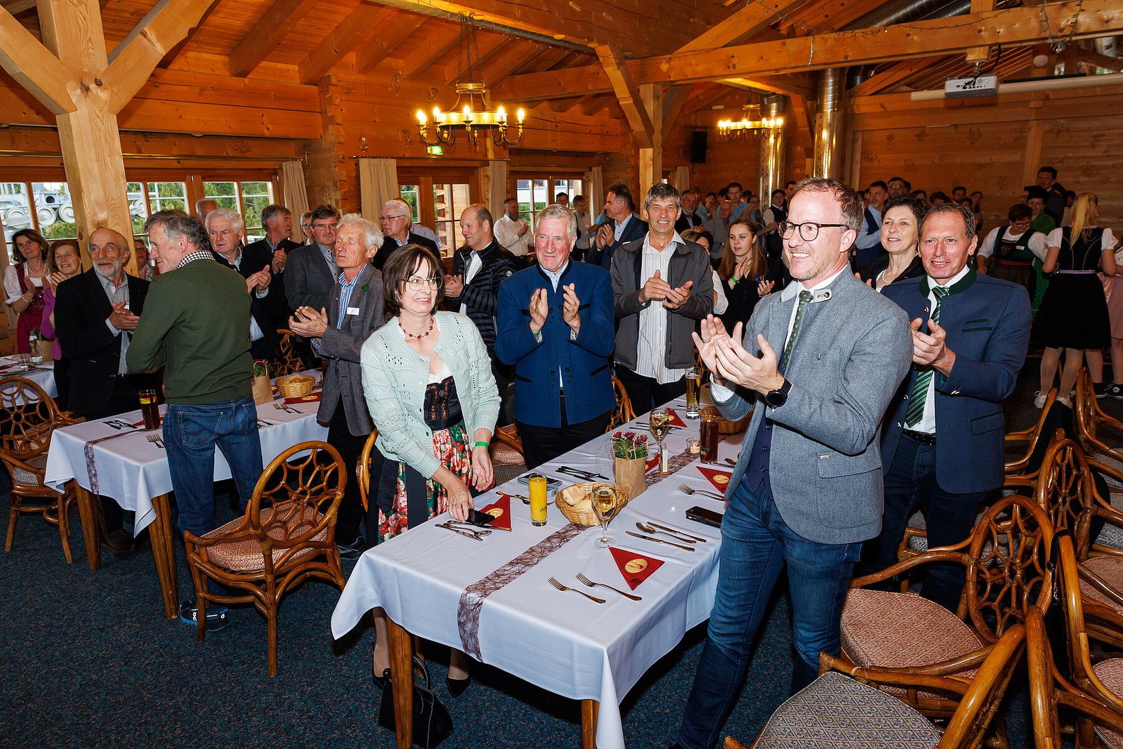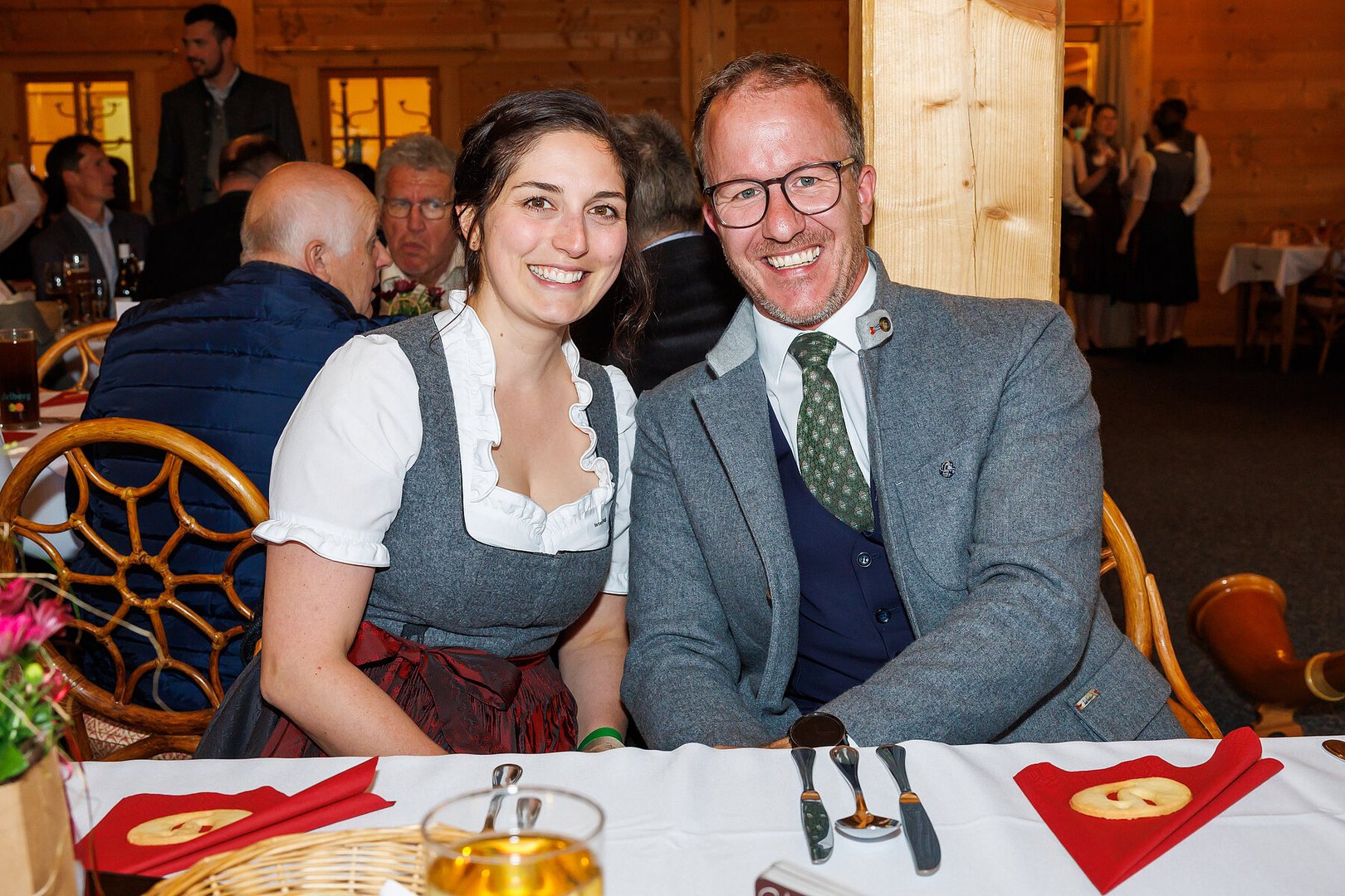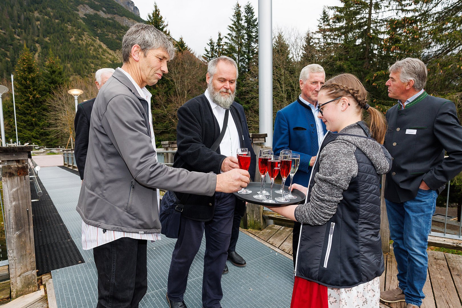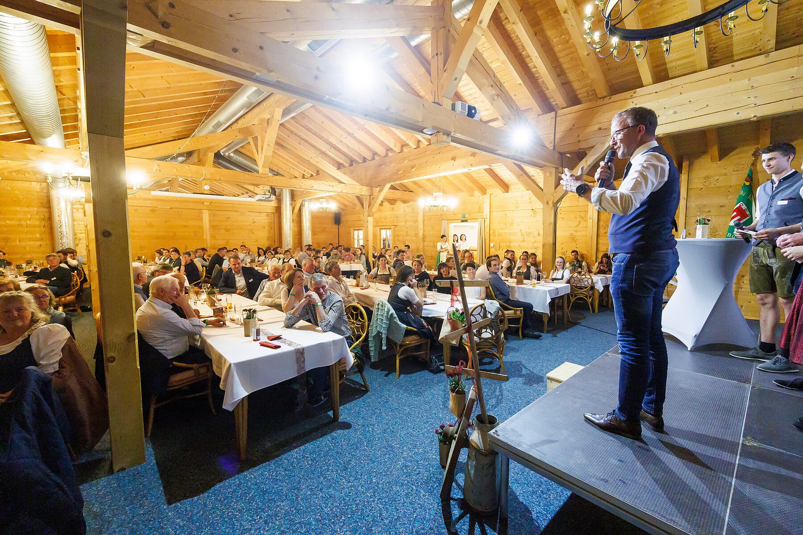 Der Abend begann mit einem leckeren Aperitif und Alphornklängen der Familie Wachter Alphornpower aus Riefensberg. Im Anschluss wurden die Gäste offiziell von der aktuellen Landesleitung um Michael Meusburger und Christina Dünser begrüßt, davor durfte natürlich der Einzug mit der Vereinsfahne nicht fehlen. Christina und Michael stellten das Menü vor. Es bestand vollständig aus regionalen Lebensmitteln und durfte von den Geladenen im Anschluss direkt verkostet werden. Auch der süße Abschluss des Abends wurde von den Landesvorstandsmitgliedern selbst gemacht und von vier fleißigen Schülerinnen des Bäuerlichen Schul- und Bildungszentrum angerichtet. Akustisch genoss man die Klänge der Hausmusik Kraft aus St. Gallenkirch.