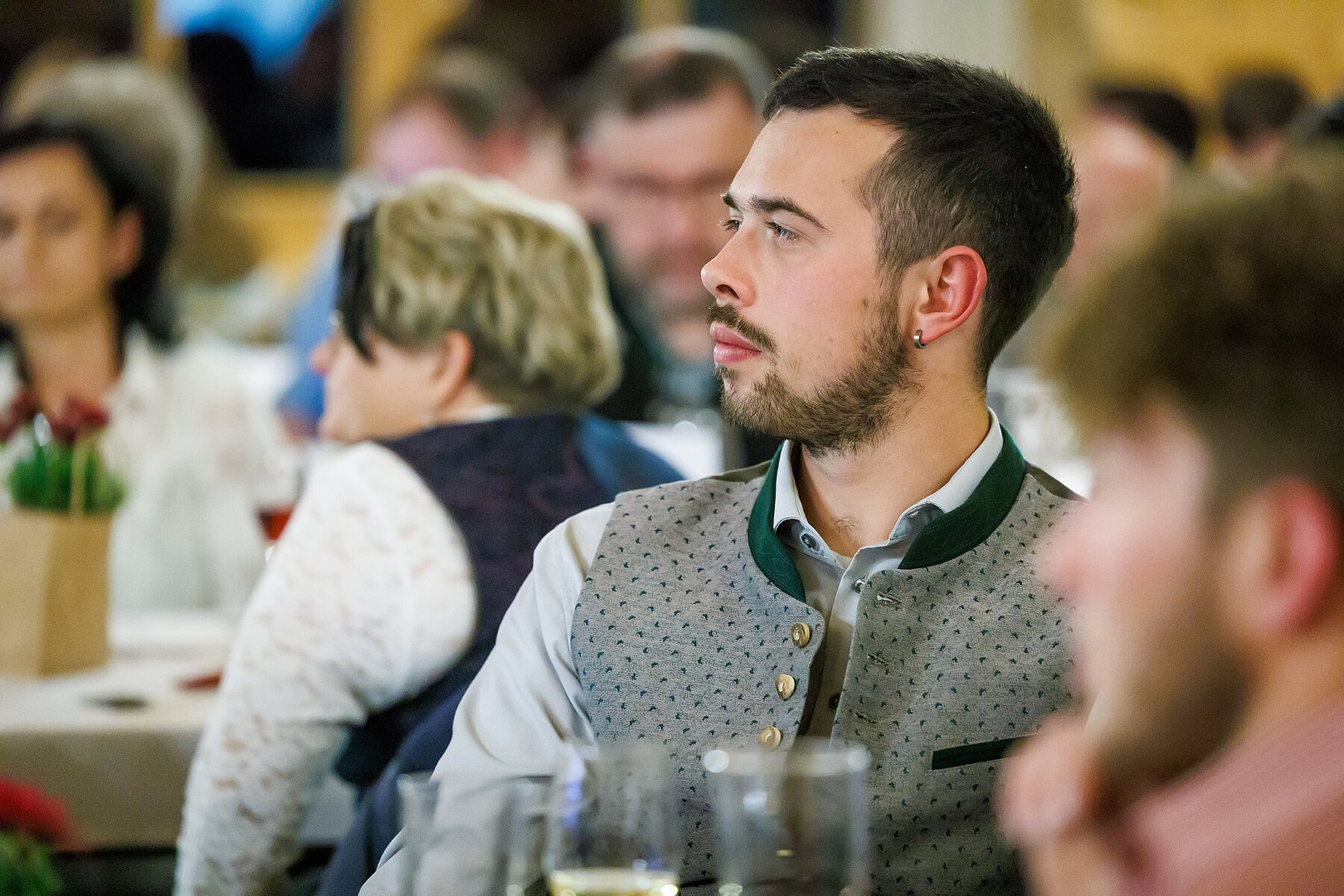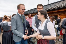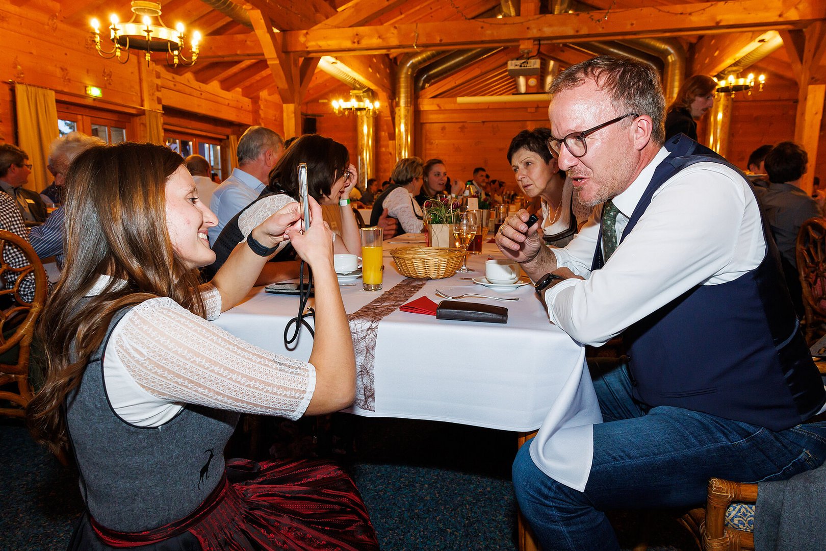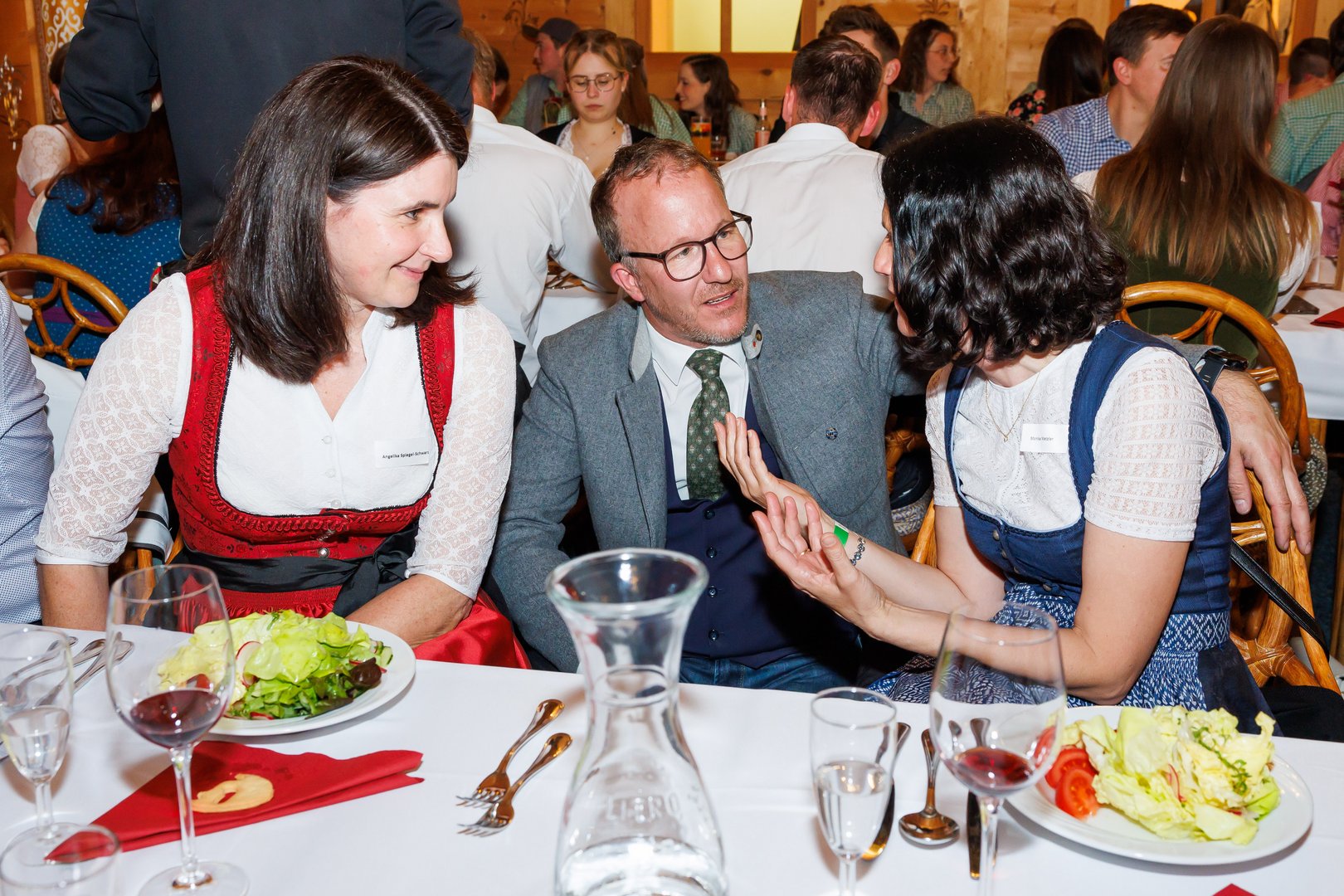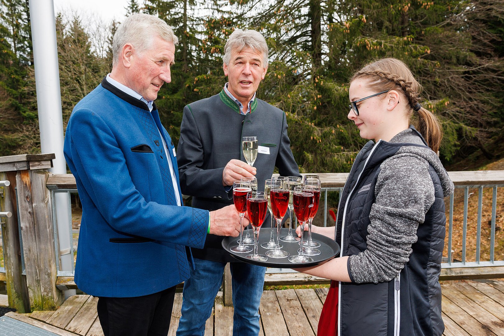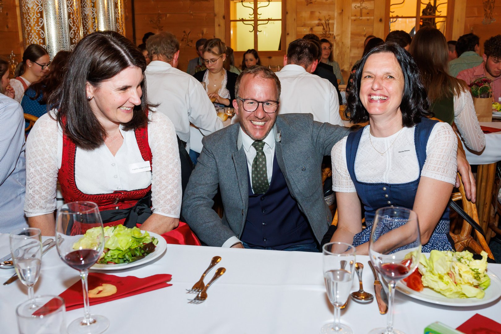 Der Abend begann mit einem leckeren Aperitif und Alphornklängen der Familie Wachter Alphornpower aus Riefensberg. Im Anschluss wurden die Gäste offiziell von der aktuellen Landesleitung um Michael Meusburger und Christina Dünser begrüßt, davor durfte natürlich der Einzug mit der Vereinsfahne nicht fehlen. Christina und Michael stellten das Menü vor. Es bestand vollständig aus regionalen Lebensmitteln und durfte von den Geladenen im Anschluss direkt verkostet werden. Auch der süße Abschluss des Abends wurde von den Landesvorstandsmitgliedern selbst gemacht und von vier fleißigen Schülerinnen des Bäuerlichen Schul- und Bildungszentrum angerichtet. Akustisch genoss man die Klänge der Hausmusik Kraft aus St. Gallenkirch.