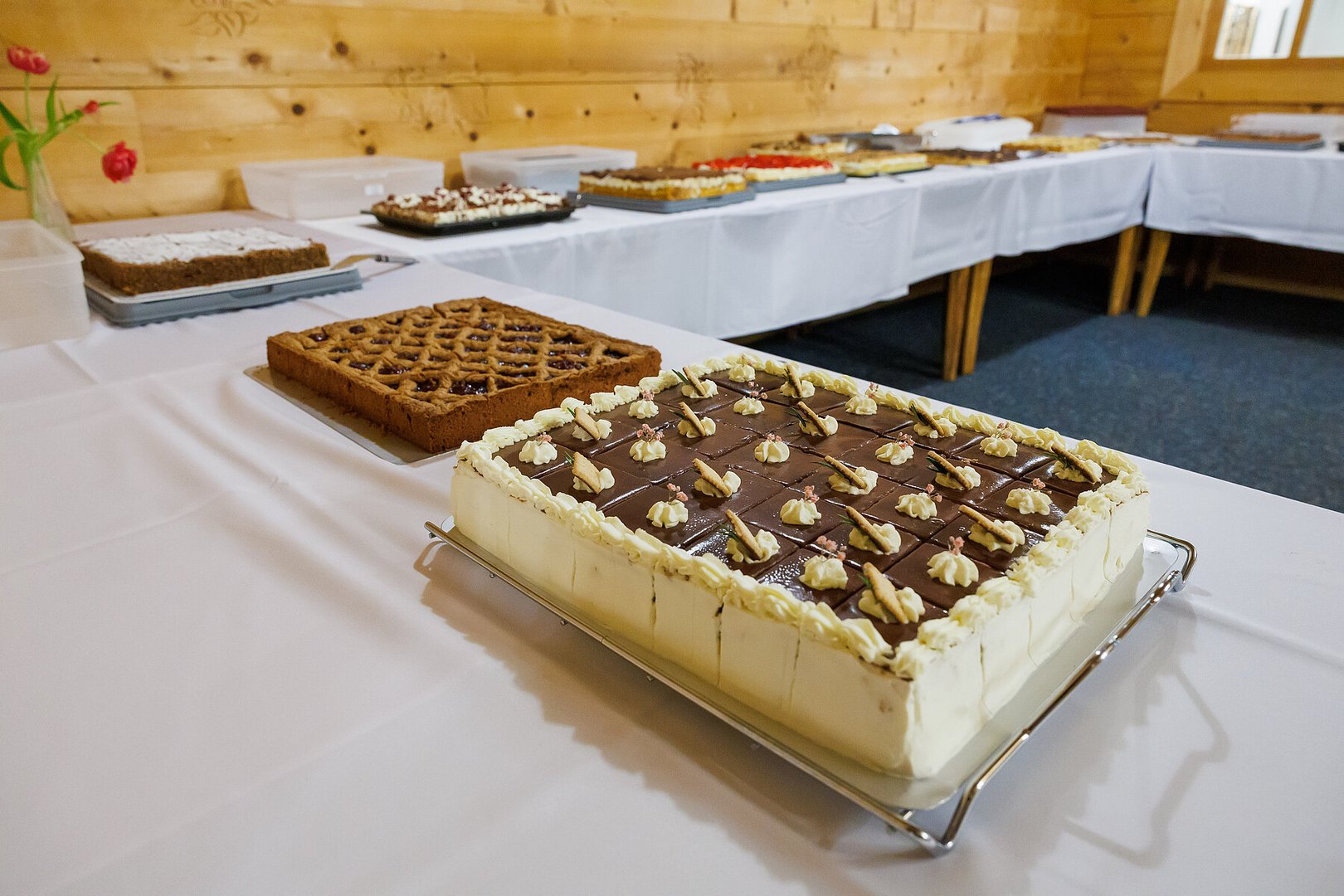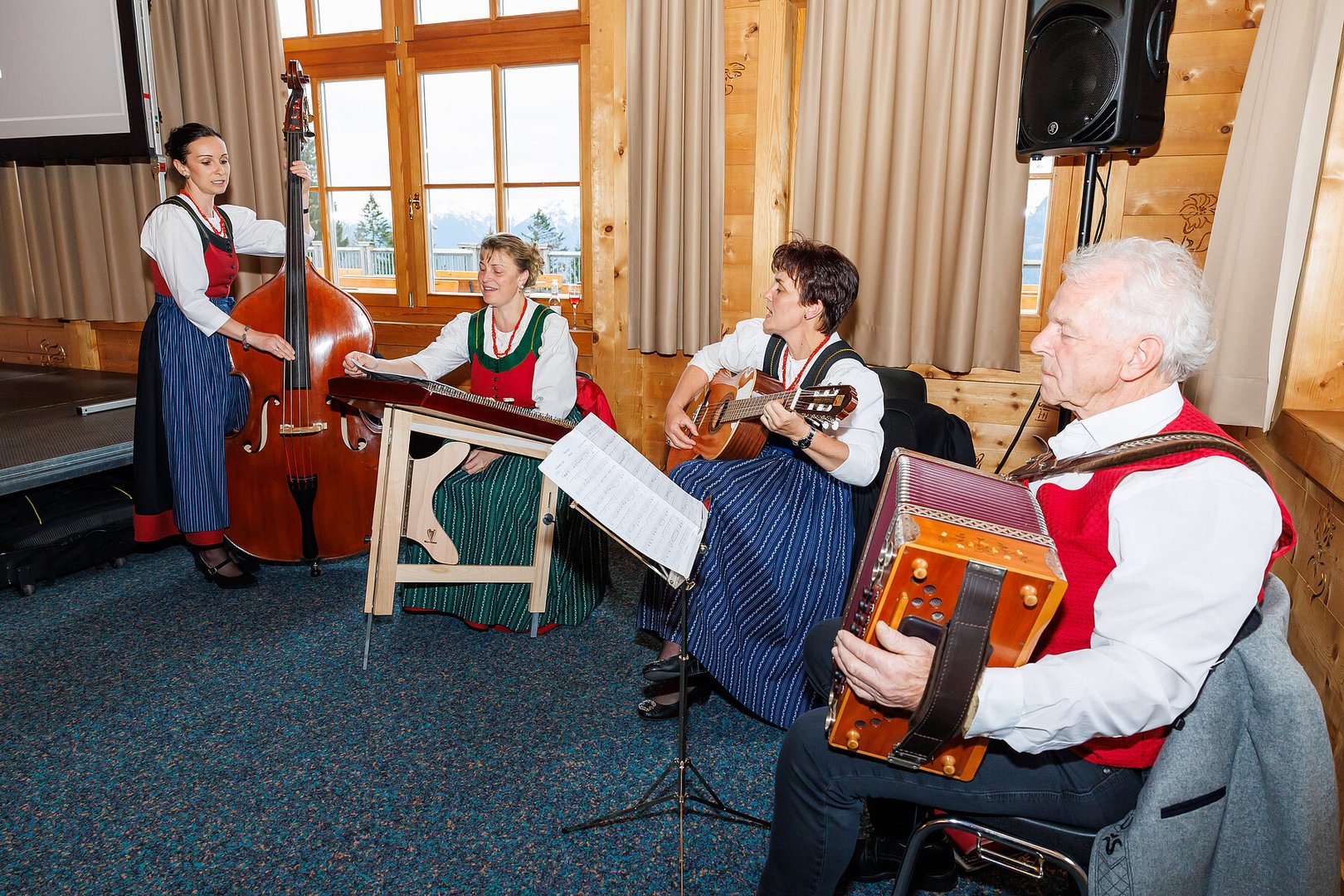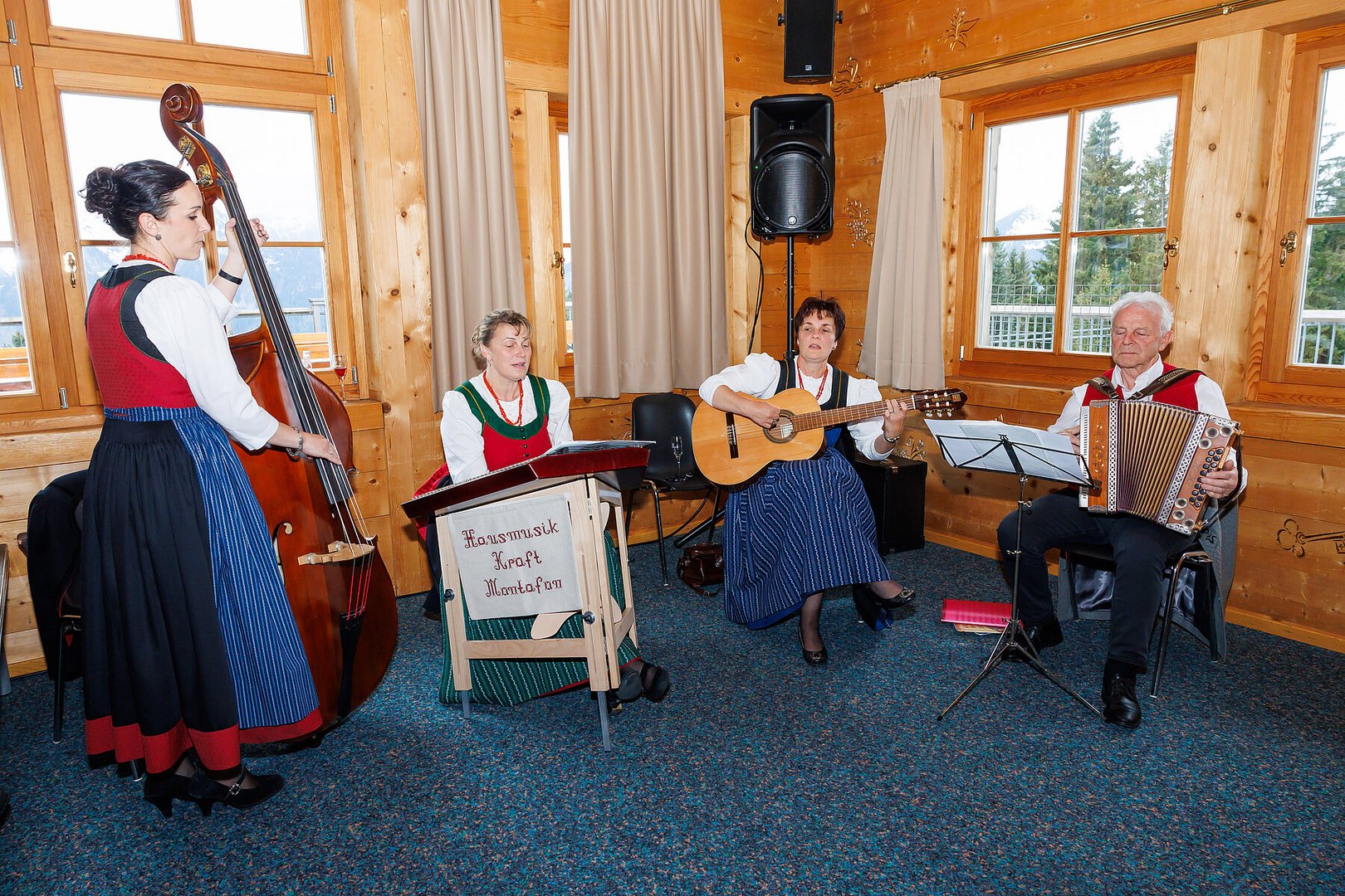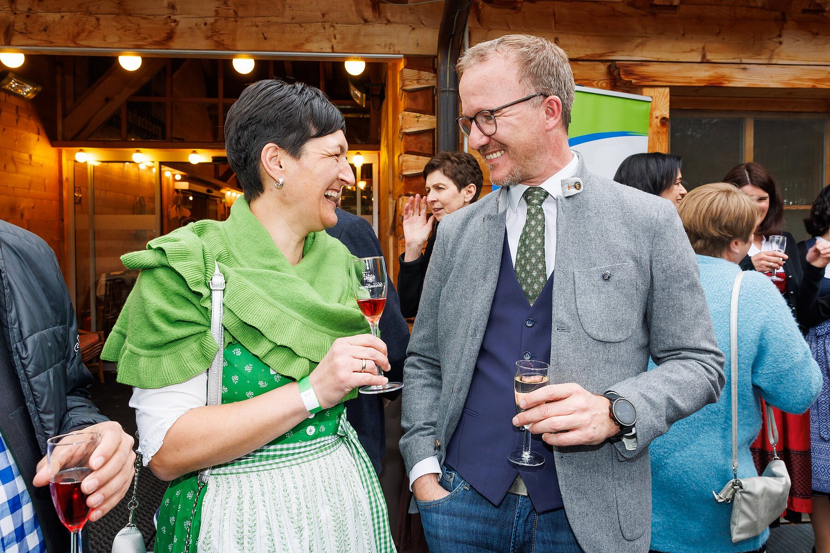 Der Abend begann mit einem leckeren Aperitif und Alphornklängen der Familie Wachter Alphornpower aus Riefensberg. Im Anschluss wurden die Gäste offiziell von der aktuellen Landesleitung um Michael Meusburger und Christina Dünser begrüßt, davor durfte natürlich der Einzug mit der Vereinsfahne nicht fehlen. Christina und Michael stellten das Menü vor. Es bestand vollständig aus regionalen Lebensmitteln und durfte von den Geladenen im Anschluss direkt verkostet werden. Auch der süße Abschluss des Abends wurde von den Landesvorstandsmitgliedern selbst gemacht und von vier fleißigen Schülerinnen des Bäuerlichen Schul- und Bildungszentrum angerichtet. Akustisch genoss man die Klänge der Hausmusik Kraft aus St. Gallenkirch.
