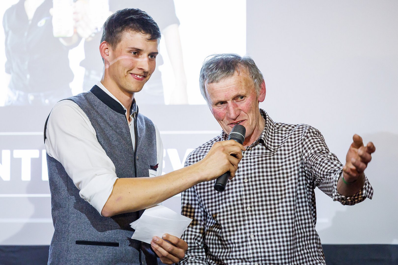 Ein weiterer Höhepunkt war das Gespräch mit der ersten Landesleitung: Anton Natter (Egg) und Margit Schwärzler (Lingenau). Die Beiden erzählten von den Anfängen des Vereins und waren sichtlich angetan, dass die Organisation auch 50 Jahre nach der Gründung noch so ein tolles Auftreten hat und für wichtige Anliegen der ländlichen Jugend eintritt. Zur Ehre von Anton und Margit wurden Cider mit ihren Namen hergestellt. Die regionalen Getränke kommen vom Peterhof aus Fraxern und haben die Geschmacksrichtungen „Anton – Apfel“ und „Margit – Apfel Kirsch“. Wollt auch ihr diese probieren, dann kommt #ansprung zu unserem Jubiläumsfest am 24.- und 25. August in Egg-Junkerau.