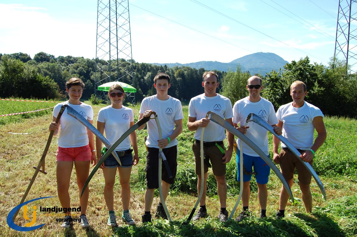 Mäherelite der Landjugend beim Bundesentscheid Sensenmähen