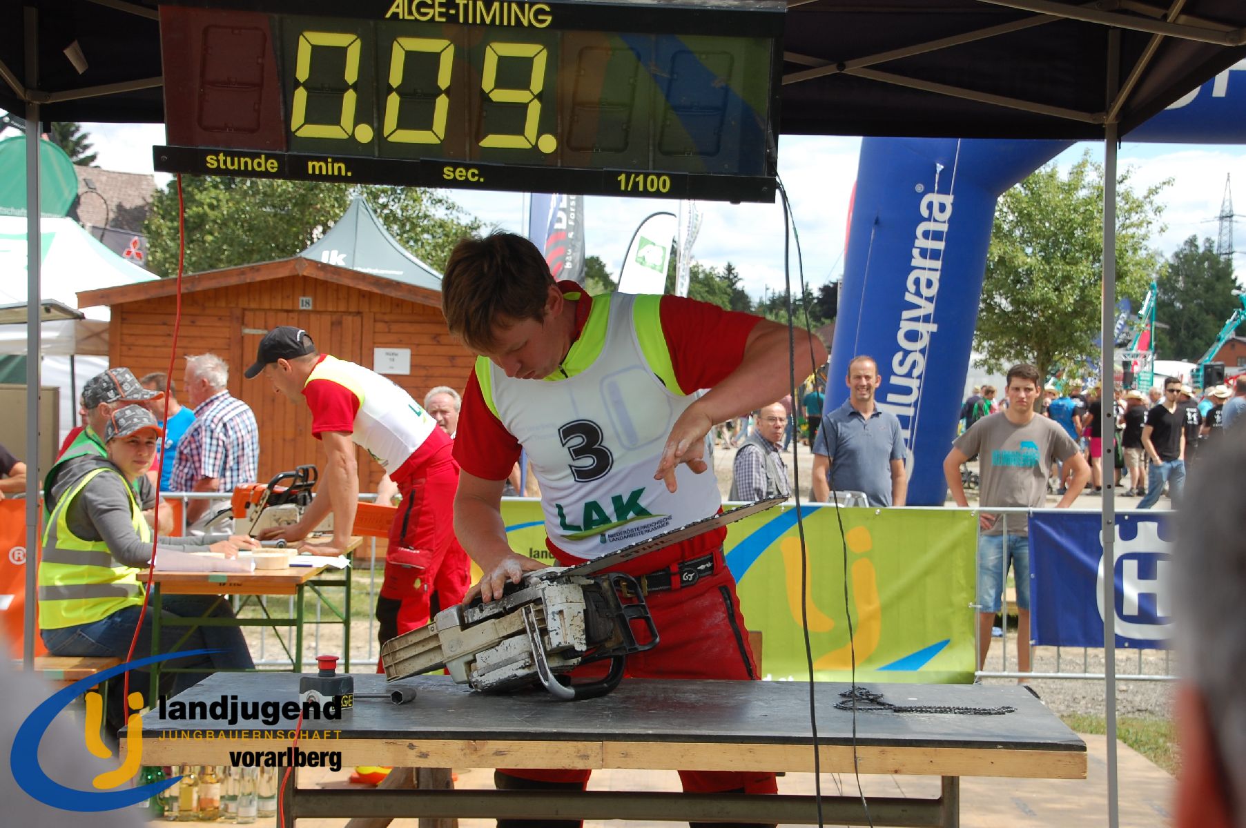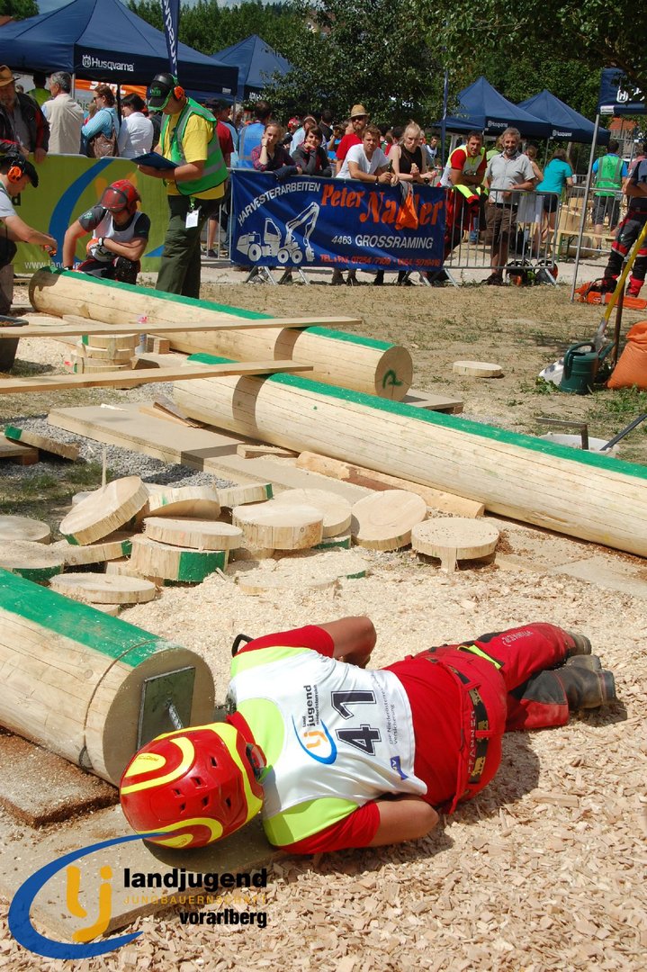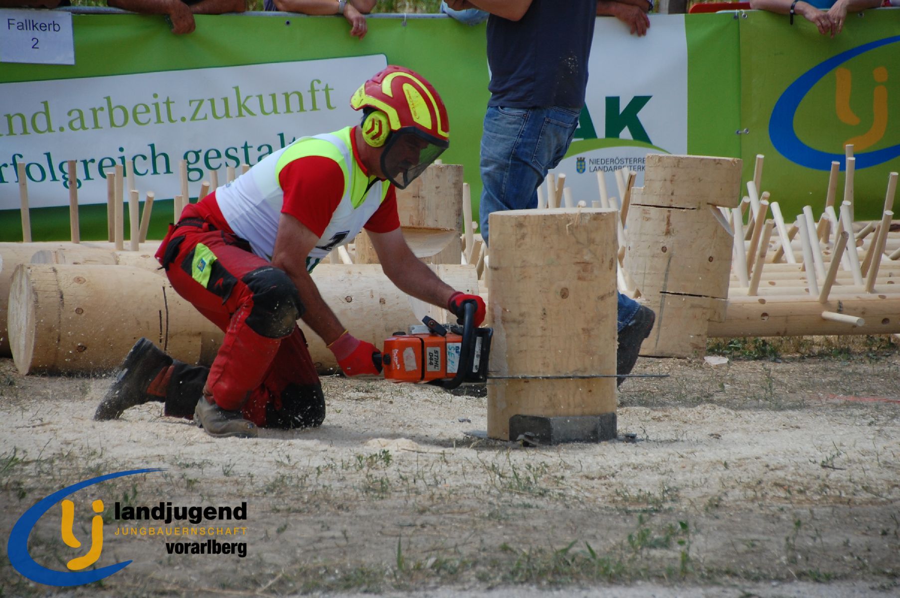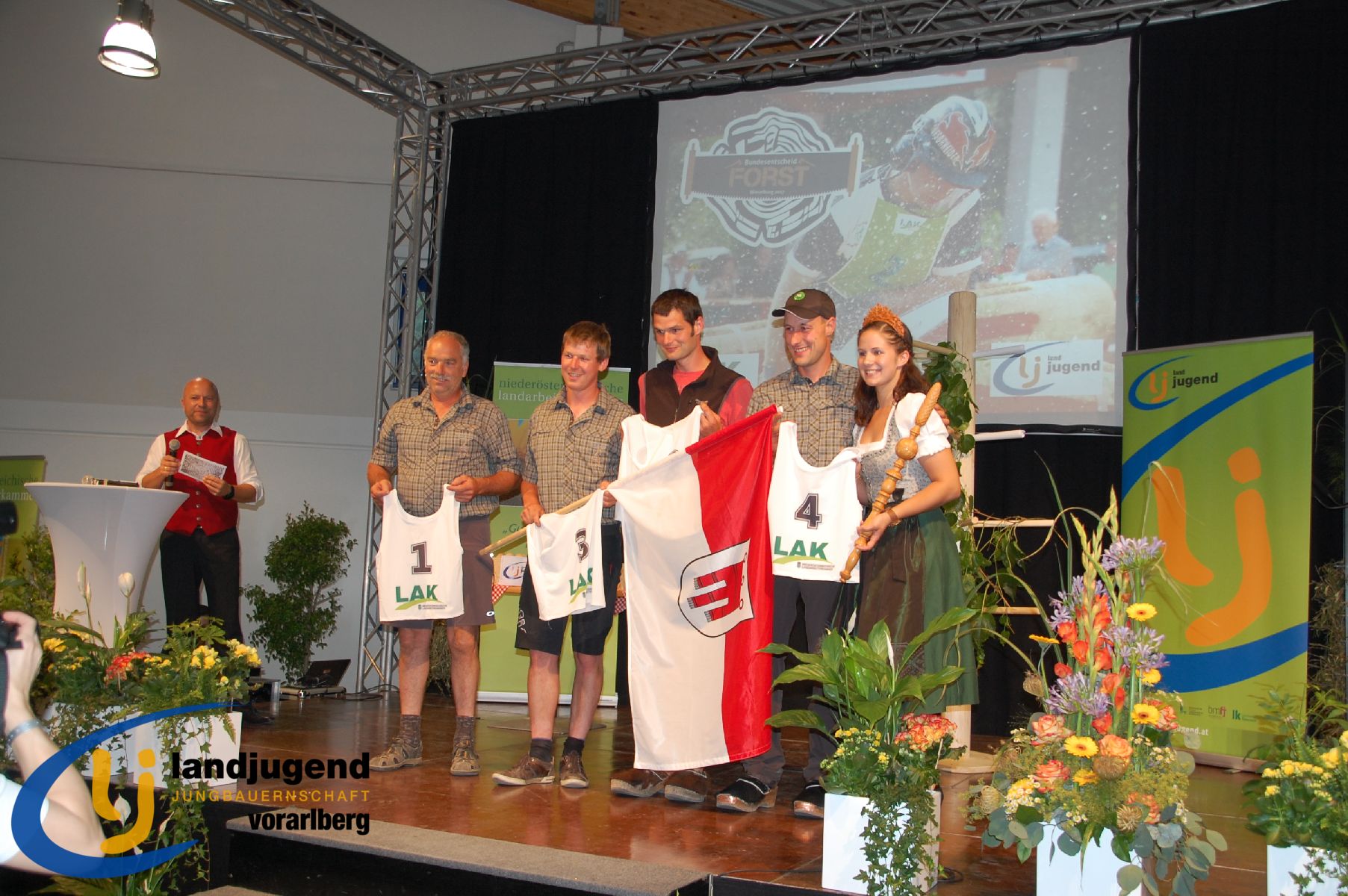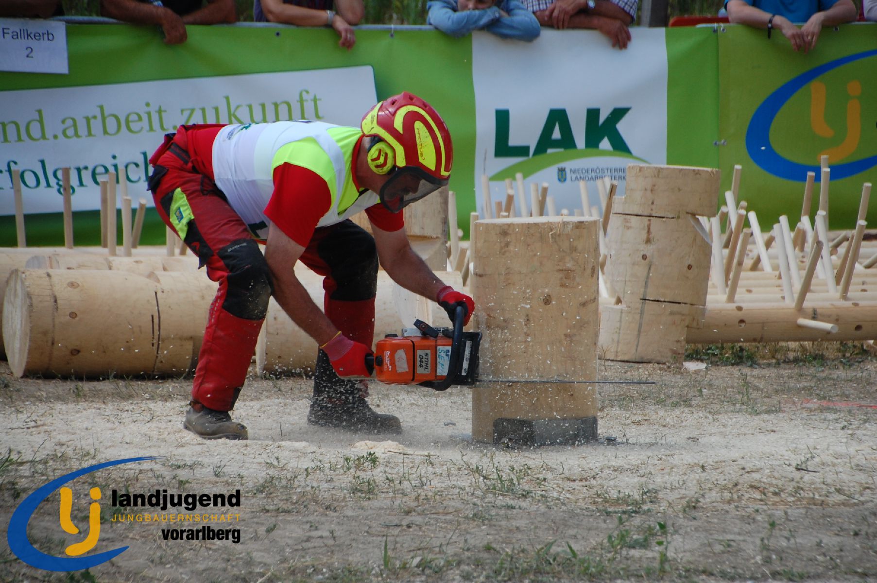 Mannschaftswertung: Kärnten vor Niederösterreich und Vorarlberg In der Mannschaftswertung ging die Goldmedaille ebenfalls an Kärnten. Dahinter landete Niederösterreich, gefolgt von Vorarlberg mit Josef Bitschnau, Thomas Ganahl, Benjamin Greber und Martin Moosbrugger, auf Rang drei. In den Disziplinenwertungen gab es bei den Profis Erfolge für Jürgen Erlacher aus Kärnten (Kombinationsschnitt), Johannes Meisenbichler aus der Steiermark (Präzisionsschnitt), Mathias Morgenstern aus Kärnten (Durchhacken und Kettenwechsel) sowie für Vorarlbergs Martin Moosbrugger aus Andelsbuch (Fällen und Geschicklichkeitsschneiden). Bester beim finalen "Entasten" war Harald Umgeher (NÖ). Benjamin Greber, ebenfalls aus Andelsbuch konnte gleich drei Bronzemedaillen, nämlich in den Bewerben Kettenwechsel, Kombinationsschnitt und Durchhacken erringen. Kärntner räumten auch im Landjugend-Bewerb alle Titel ab Neben den Profis zeigten auch die Starter der Landjugend tolle Leistungen. Beide Einzelgoldmedaillen gingen auch hier nach Kärnten. Bei den Burschen ging der Sieg an Daniel Oberrauner, der sich damit das Ticket für den WM-Kader für die Weltmeisterschaft 2018 in Norwegen sicherte. Beste Dame im Feld war Caroline Weinberger. Aron Bitschnau konnte als bester Vorarlberger den 13. Gesamtrang erreichen und verpasste mit Rang 4 beim Kombinationsschnitt nur knapp eine Medaille. Auch beim Kettenwechsel und Durchhacken konnte er sich unter den Top 10 platzieren. Auch Thomas Bertschler aus Göfis war mit Rang 8 beim Durchhacken bei den stärksten mit dabei. Kilian Moosmann aus Mellau und Raphael Ammann aus Bartholomäberg komplettierten das Landjugend Team aus dem Ländle. "Wir haben spannende Wettkämpfe auf allerhöchsten technischem Niveau gesehen, die das hohe Level der forstlichen Ausbildung der heimischen Forstarbeiter in Österreich wiederspiegeln und sind natürlich äußerst stolz auf die tollen Erfolge unserer Teilnehmer aus Niederösterreich", lautete die positive Bilanz von NÖ LAK-Präsident Andreas Freistetter. Die Vorarlberger Teilnehmer wurden dankenswerterweise von Tobias Bitschnau und Thomas Lerch betreut und von der Firma Anton Pfanner, Schutzbekleidung und Firma Protos ausgestattet. Die Entsendung erfolgte durch die Landjugend und die Sektion Dienstnehmer der LK Vorarlberg.