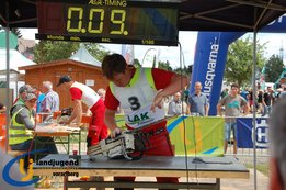 Die besten Motorsägen-Athleten Österreichs kämpften beim Bundesentscheid der Forstarbeit in Wieselburg um den begehrten Titel. Der Sieg in der Profiklasse ging am Ende an den Kärntner Mathias Morgenstern. Österreichs bester Forstwettkämpfer kommt aus Kärnten und heißt Mathias Morgenstern. Mit diesem Ergebnis endete der Bundesentscheid der Forstarbeit am 1. Juli, den die Landarbeiterkammer Niederösterreich gemeinsam mit der Landjugend im Rahmen der Messe Wieselburg organisierte. Nach einem spannenden Wettbewerb, in dem in sechs Disziplinen Präzision, Technik und Schnelligkeit gefragt waren, wurden im spektakulären Finalbewerb Entasten die besten Athleten der heimischen Forstwettkampf-Elite ermittelt. Kärntner Sieg vor Trio aus Niederösterreich In der Profi-Klasse der Berufsforstarbeiter setzte sich am Ende der Kärntner Mathias Morgenstern mit 1835 Punkten durch. Für den 24-Jährigen ehemaligen Junioren-Weltmeister ist es sein erster Staatsmeistertitel. Den Grundstein für seinen Sieg legte der Cousin von Schispringer Thomas Morgenstein mit starken Leistungen im Durchhacken und Kettenwechsel. Hinter dem Kärntner landeten die Lokalmatadore aus Niederösterreich auf den Plätzen zwei bis vier. Silber ging an Markus Herzog vor seinem Zwillingsbruder und Titelverteidiger Hannes Herzog. Überraschenderweise gaben die beiden nach Ende der Bewerbe bekannt, ihre aktive Karriere zu beenden: "Unsere Erfolge haben in Wieseburg begonnen und es ist schön, dass wir unsere Laufbahn hier im eigenen Bundesland am Podest stehend beenden können", so ein gerührter Markus Herzog. Eine sensationelle Aufholjagd zeigte Harald Umgeher, ebenfalls aus Niederösterreich, der sich mit einer sensationellen Leistung im Entasten noch von Rang neun bis auf Platz vier in der Gesamtwertung verbesserte. Vorarlbergs Profiteam hatte durchwegs mit Schwierigkeiten bei einzelnen Bewerben zu kämpfen. Trotzdem konnten sich alle geschlossen im Mittelfeld platzieren, wobei Thomas Ganahl mit Rang 10 am besten abschnitt. Das Ergebnis in den Disziplinenwertungen mit fünf Medaillen zeigt aber, dass unsere Wettkämpfer immer ein Wörtchen mitzureden haben.