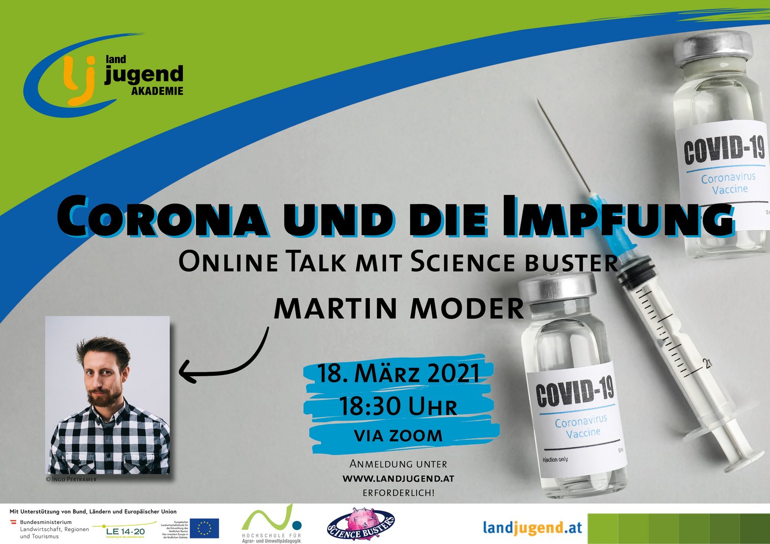 Viele von uns beschäftigen sich gerade mit Fragen rund um Corona und die Impfung. Daher hat die Landjugend Österreich einen Online-Talk mit Science Buster Martin Moder zu diesem Thema organisiert.