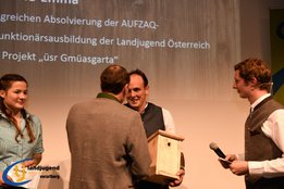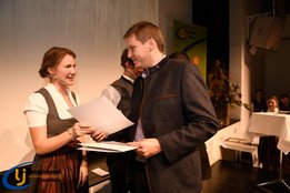 Traditionell startet der Tag der Landjugend Vorarlberg mit dem Einzug mit der eigenen Vereinsfahne. "Unsere Vereinsfahne ist ein Zeichen für unsere Wurzeln und unsere starke Gemeinschaft. Wir säen in Hoffnung und ernten mit Dank! Das ganze Jahr haben wir gesät und jetzt schauen wir auf eine erfolgreiche Ernte - auf ein erfolgreiches Vereinsjahr mit landesweit 400 Veranstaltungen zurück", so Andreas Schwarz bei seinen Eröffnungsworten. Landesleiterin Hannah Türtscher ergänzte stolz: "Schon 44 Jahre gibt es die Landjugend Jungbauernschaft Vorarlberg, doch heute feiern wir eine Premiere. Zum ersten Mal seit der Gründung steht hier nun der Landesvorstand mit einheitlicher Vereinstracht." Unterstützung aus dem Rheintal Vor dem Festakt und dem Landjugendball trafen sich noch 80 Funktionäre und zahlreiche Ehrengäste zur 45. Generalversammlung des Vereines ein. Auf humorvolle und kreative Art und Weise präsentierte dort der Landesvorstand in Gedichtform den Tätigkeitsbericht. Bei den Ergänzungswahlen wurde dann der Gaissauer Niklas Sutter als Beirat in den Landesvorstand gewählt. Ehrung für erbrachte Leistungen Leistungsabzeichen Gold Martin Netzer (Schruns) Fabian Winder (Krumbach) Leistungsabzeichen Silber Hannah Türtscher (Sonntag) Andreas Schwarz (Hittisau) Leistungsabzeichen Bronze Lisa-Maria Almberger (Tschagguns) Andrea Burtscher (Nüziders) Anna-Katharina Burtscher (Thüringerberg) Simon Burtscher (Nüziders) Maximilian Dalpez (Frastanz) Maria Dünser (Braz) Bernd Gerer (Höchst) Dominic Jordan (Bartholomäberg) Denise Küng (Bartholomäberg) Ronald Rüttimann (Schruns) Simon Stocker (St. Gallenkirch) Bundessieger Fabian Winder (Krumbach) aufZAQ-Absolventen Emma Bitschnau (Braz) LAKI Funktionärsausbildung Lisa-Maria Almberger (Tschagguns) Georg Bereuter (Sibratsgfäll) Theresa Blank (Sulzberg) Anna-Katharina Burtscher (Thüringerberg) Johannes Meusburger (Egg) Selina Müller (Blons) Martin Netzer (Schruns) Bianca Ruthardt (Braz) Ronald Rüttimann (Schruns) Anna Laura Schmid (Schwarzenberg) Katharina Stark (Fontanella) Vorderwald - aktivste Landjugendgruppe Die Frage, wer wohl die aktivste Landjugendgruppe 2018 wird, stellten sich auch einige Ehrengäste. Darunter waren Nationalrat Norbert Sieber, Landesrat Christian Gantner, Obmann der Österreichischen Jungbauernschaft Franz Xaver Broidl, Martin Stieglbauer von der Landjugend Österreich, Gert Fenkart von den Vorarlberger Raiffeisenbanken, Altlandesrat Erich Schwärzler, Landtagsabgeordnete Bernhard Feuerstein und Markus Hartmann, sowie von Seiten der Landwirtschaftskammer Präsident StR. Josef Moosbrugger und Direktor Gebhard Bechter. Ehrenamtliche Projektarbeit, soziales Engagement, Öffentlichkeitsarbeit und das Mitwirken an Landes- und Bundesveranstaltungen - das sind Kriterien für die aktivste Landjugendgruppe. Das Jubeln der aktivsten Landjugendgruppe schallte durch den ganzen Raum, als verkündet wurde, dass die LJ-JB Vorderwald ihren Mitgliedern ein unverwechselbares, eindrucksvolles Vereinsjahr geboten hat und daher zur aktivsten Landjugendgruppe 2018 gekürt wird. Der Vorarlberger Landjugend-Steinbock und den Gutschein für eine Spanferkelpartie wurde den stolzen Vorderwälder Mitgliedern von Landesrat Christian Gantner feierlich überreicht, der sich anschließend sehr für die Landesorganisation freute: "Recht herzliche Gratulation der Landjugend Vorarlberg zum wiederum beeindruckenden "Tag der Landjugend 2018" - ihr seid unbestritten die aktivste Jugendorganisation im Ländlichen Raum!" Tombolapreise im Wert von 3.000 Euro