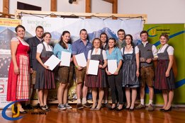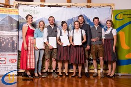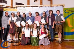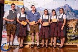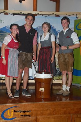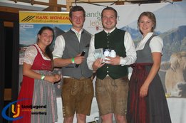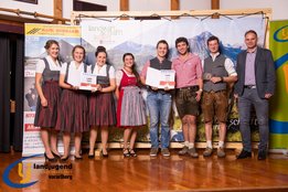 Aktiven, engagierten und motivierten Mitgliedern wurde vergangenen Samstag die Bühne geboten. Fabian und Jakob Winder wurden für ihre großartigen Leistungen auf der Europameisterschaft im Handmähen gratuliert, sowie auch Aron Bitschnau und Raphael Ammann, die bei der Bundesmeisterschaft Forst bei den Einzeldisziplinen Gold und Silber ins Ländle holten. Jürgen Nachbauer, Lisa Maria Almberger, Theresa Blank und Andrea Burtscher wurde zur erfolgreichen Absolvierung der aufZAQ-Funktionärsausbildung gratuliert, und die Teilnehmer der LAKI Funktionärsausbildung bekamen ihre Teilnehmerurkunde für den erfolgreichen Abschluss überreicht. Für den großartigen, langjährigen ehrenamtlichen Einsatz für die LJ-JB Vorarlberg wurden Michael Natter aus Bezau, Lisa Maria Almberger aus Tschagguns, Maria Dünser aus Braz und Andrea Burtscher aus Nüziders die Leistungsabzeichen in Silber verliehen. Weitere neun Personen bekamen das Abzeichen in Bronze überreicht. Ebenso wurden die besten vier Projekte der Landjugendgruppen ausgezeichnet und mit Gutscheinen von der Funworld in Hard in der Höhe von 450,- Euro beschenkt. Rang Eins nahm die LJ-JB Oberland mit ihrem "LaufRegional" ein, gefolgt von dem Projekt "Eggxpress - Eier auf Achse" von der LJ-JB Montafon, den dritten Platz nahm der Vorderwald mit dem Projekt "Spenden durch Schwenden" ein und mit dem Projekt "Tag der offenen Stalltüre" nahm die LJ-JB Unterland den guten vierten Platz ein.