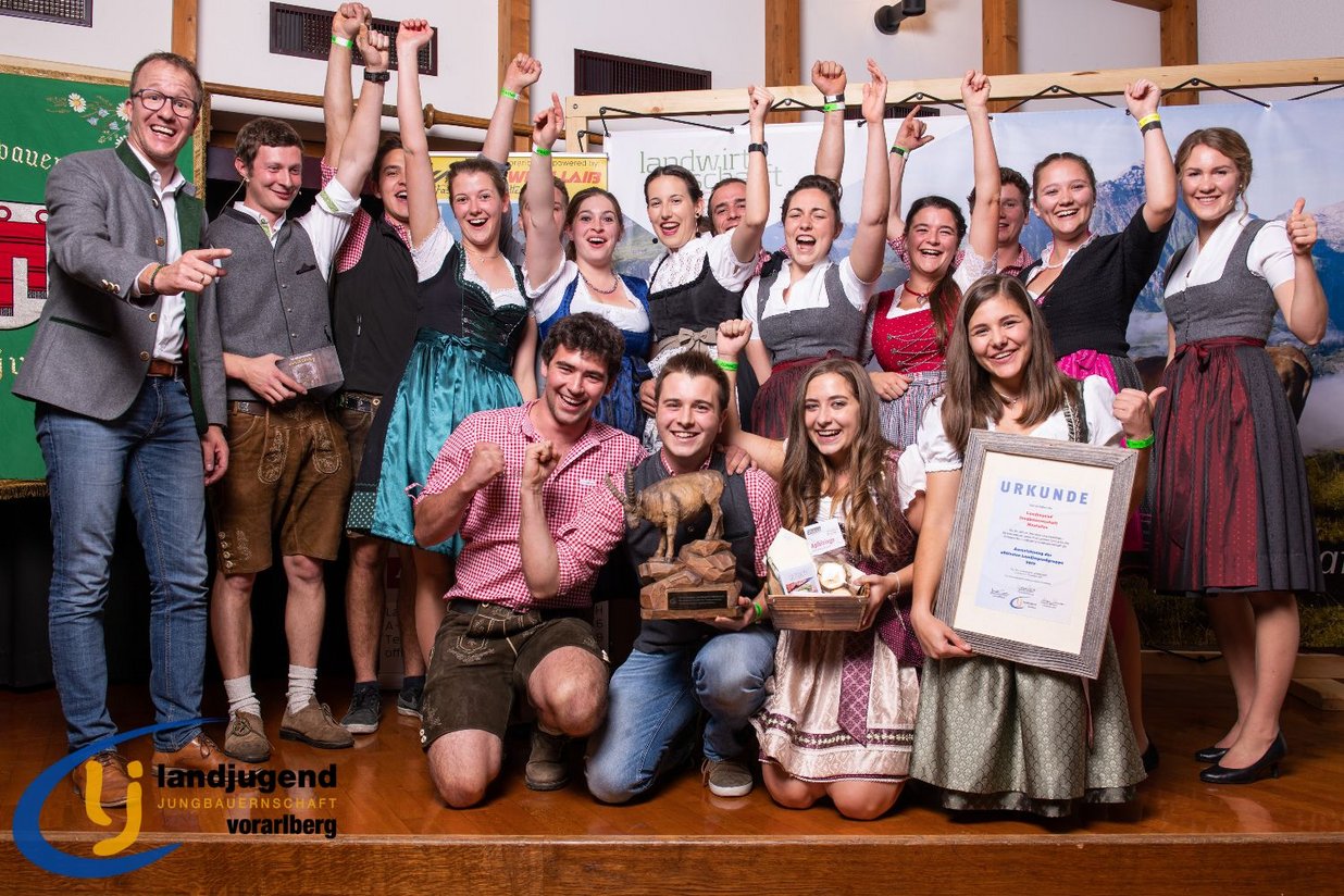 Darunter waren Nationalrat Norbert Sieber, Landesrat Christian Gantner, Obmann der Österreichischen Jungbauernschaft Franz Xaver Broidl, Helene Binder und Martin Kubli von der Landjugend Österreich, Unterstützer der Landjugend Karl Wohllaib, Altlandesrat Erich Schwärzler, sowie von Seiten der Landwirtschaftskammer Präsident StR. Josef Moosbrugger und Direktor Stefan Simma. Ehrenamtliche Projektarbeit, soziales Engagement, Öffentlichkeitsarbeit und das Mitwirken an Landes- und Bundesveranstaltungen - das sind Kriterien für die aktivste Landjugendgruppe. Das Jubeln der Montafoner Mitglieder schallte durch den ganzen Raum, als verkündet wurde, dass die LJ-JB Montafon ihren Mitgliedern ein unverwechselbares, eindrucksvolles Vereinsjahr geboten hat und daher zur aktivsten Landjugendgruppe 2019 gekürt wird. Der Vorarlberger Landjugend-Steinbock und der Siegergutschein für eine Spanferkelpartie von der Familie Gstach wurde den stolzen Montafoner Mitgliedern von Landesrat Christian Gantner feierlich überreicht, der sich anschließend sehr für die Landesorganisation freute: "Recht herzliche Gratulation der Landjugend Vorarlberg zum wiederum beeindruckenden "Tag der Landjugend 2019" - die Landjugend Jungbauernschaft ist unbestritten die aktivste Jugendorganisation im Ländlichen Raum!"