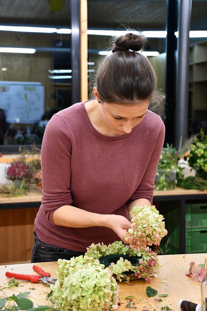 Am 7. Oktober fand im Bäuerlichen Schul- und Bildungszentrum in Hohenems der Floristikkurs zum Thema "Herbstkränze binden" statt.