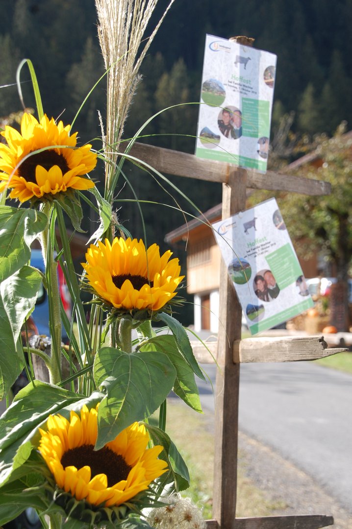 Bis zu 700 Besucher folgten der Einladung nach Tschagguns und feierten am Sonntag, 7. Oktober mit Pfarrer Joe Egel die Heilige Messe am Familienbetrieb. Nach der Weihung und Segnung des neuen Heustockes verpflegte die Landjugend Jungbauernschaft Montafon die Gäste mit Leckereien aus der Region. Neben der musikalischen Umrahmung der Alphornbläser genossen die Anwesenden das liebevoll dekorierte Ambiente und die Köstlichkeiten aus dem Montafon. Besonders großes Interesse zeigten die Besucher an den Betriebsführungen, die von Hermann und Sieglinde Wachter angeboten wurden. Die Betriebsleiter gaben einen persönlichen Einblick in den traditionellen Zuchtbetrieb und beantworteten alle Fragen rund um die Landwirtschaft.