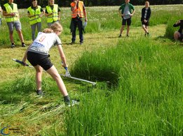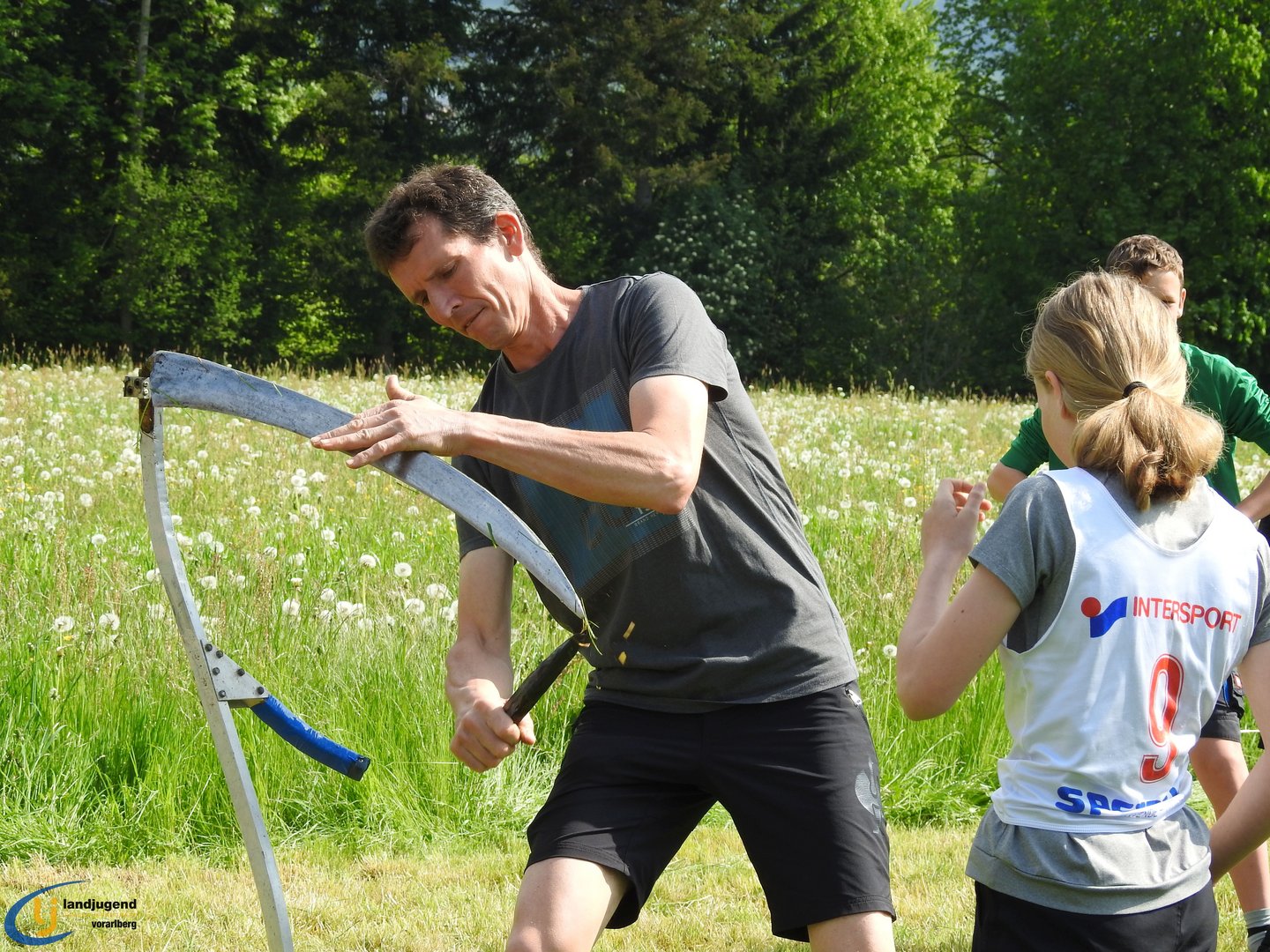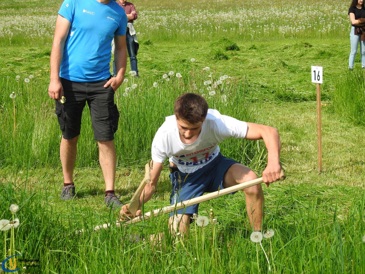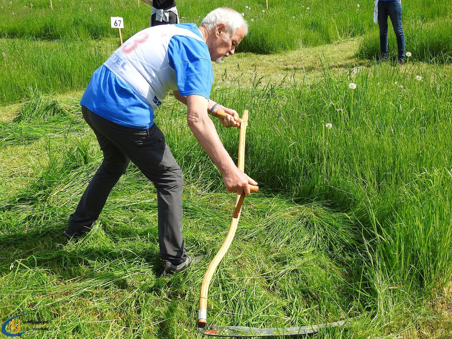 Etwas mehr als 30 Teilnehmer – zwischen fünf und 82 Jahren, Männer wie Frauen - reisten für dieses Spektakel nach Großdorf. Darunter Sportler aus Deutschland, der Schweiz, Liechtenstein, Steiermark, Salzburg und natürlich aus Vorarlberg. Der Wettbewerb wurde in unterschiedliche Klassen eingeteilt: Kinder, Damen und Herren Jugend, Damen und Herren Standard, Damen und Herren Big Battle sowie eine Senioren-Klasse. Zudem gab es mit der Kleinen und der Großen Staffel auch zwei Teambewerbe, bei denen eine Fläche zu dritt abgemäht werden musste. Nicht nur die Geschwindigkeit, mit der die Flächen abgemäht wurden war ausschlaggebend, sondern auch die Sauberkeit des Schnittes. Der Unterschied von der Standard-Klasse zum Big Battle und von der Kleinen zur Großen Staffel liegt darin, dass das Sensenblatt bei der Standard-Klasse und der Kleinen Staffel nicht länger als 90 cm sein darf. Beim Big Battle und der großen Staffel gibt es keine Begrenzung, dafür muss aber eine größere Fläche abgemäht werden. In der Klasse Herren Big Battle sind das dann schon stolze 100 m². Für die Vorarlberger Teilnehmer war das Internationale Handmähen gleichzeitig auch der Landesentscheid Sensenmähen. Das heißt, dass sich die besten Zwei jeder Klasse für den Bundesentscheid qualifiziert haben. Dieser findet heuer am 16. Juli in Feldkirch statt und wird von der Landjugend Jungbauernschaft Vorarlberg gemeinsam mit der Landjugend Jungbauernschaft Vorderland und der Landjugend Österreich organisiert. Zum ersten Mal wird es heuer auch eine Kinderklasse beim Bundesentscheid geben.