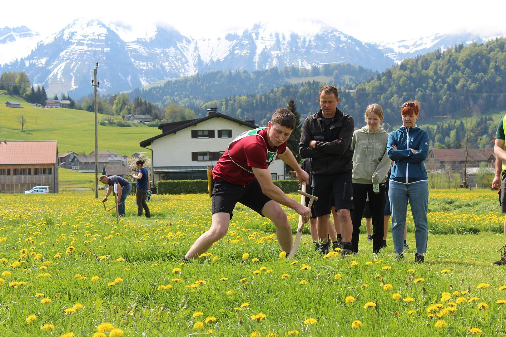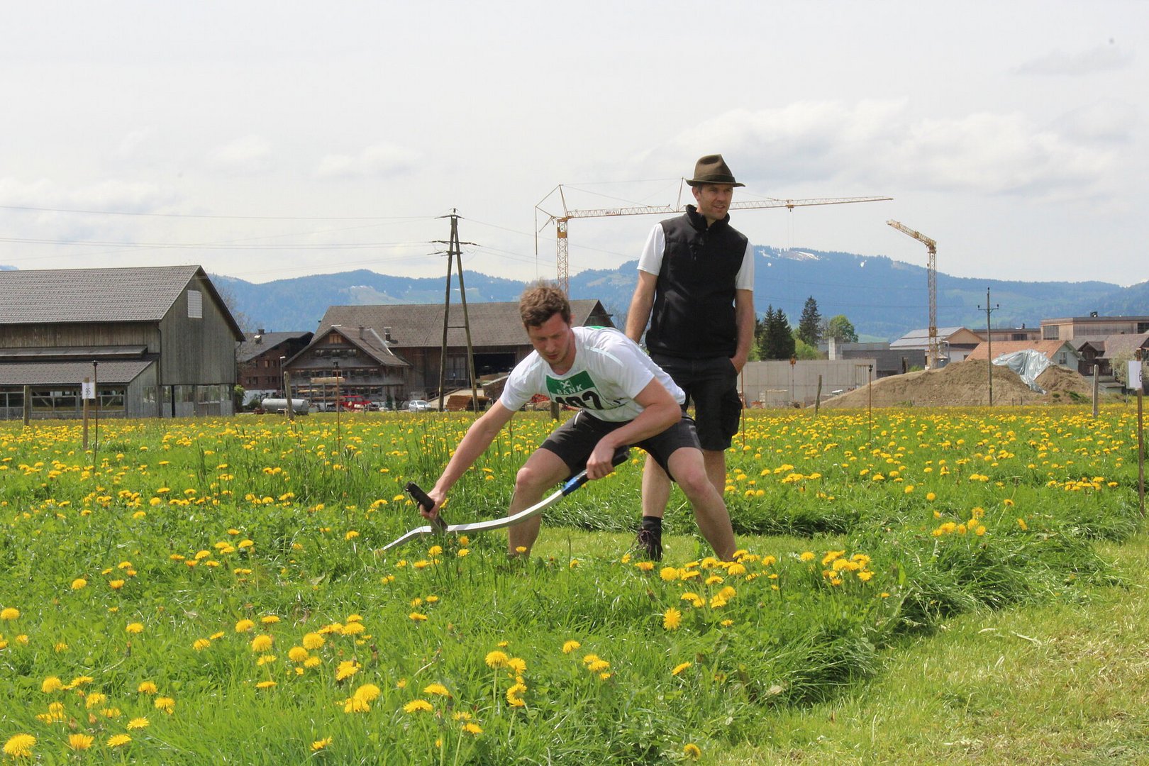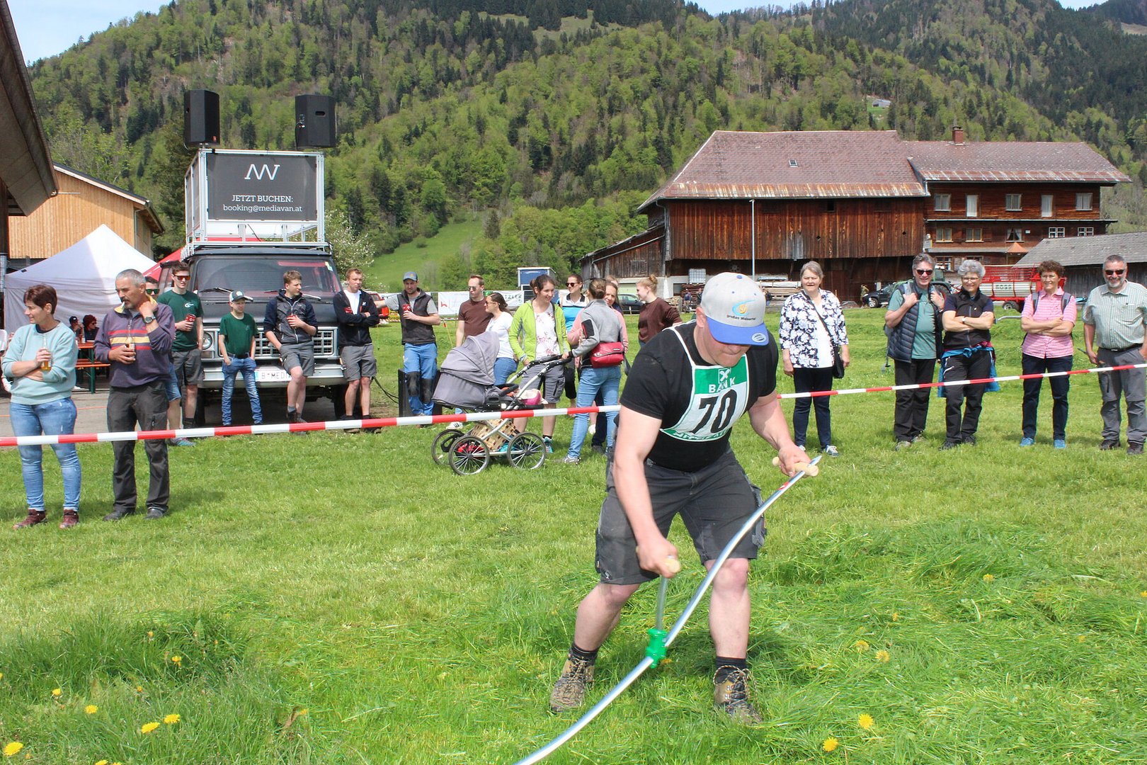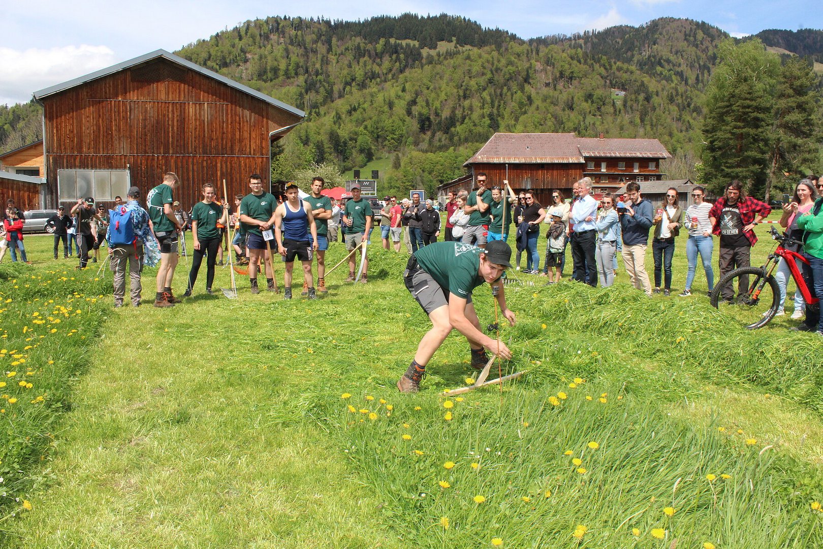 „An die Sense – fertig – los!“ Dieses Kommando hörte man am Samstag, den 04. Mai, regelmäßig durch Hittisau hallen.