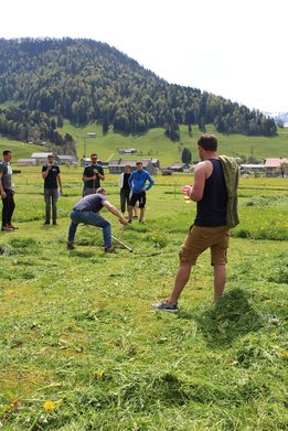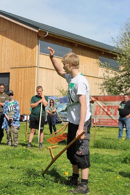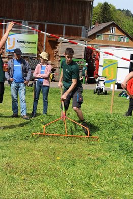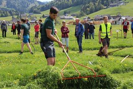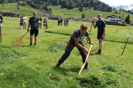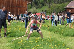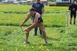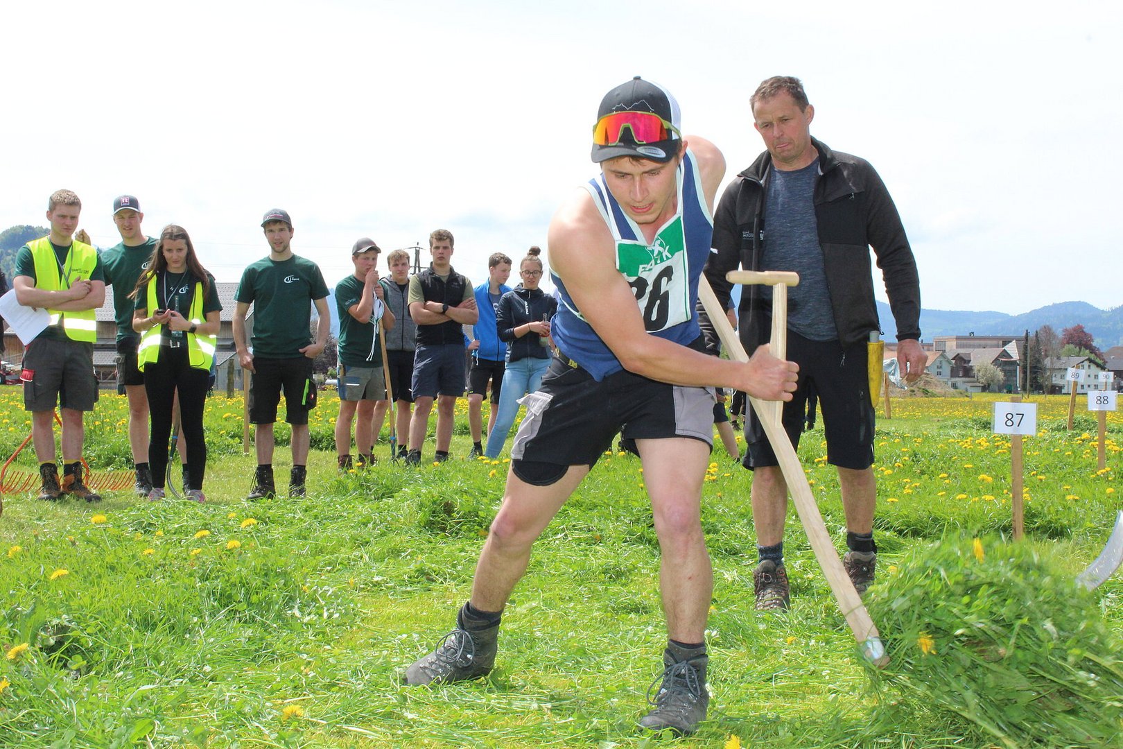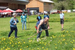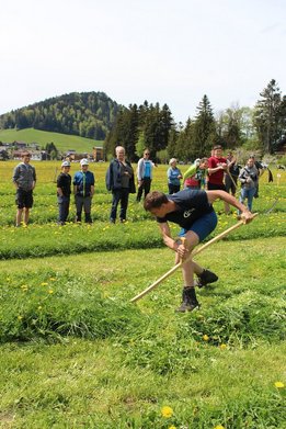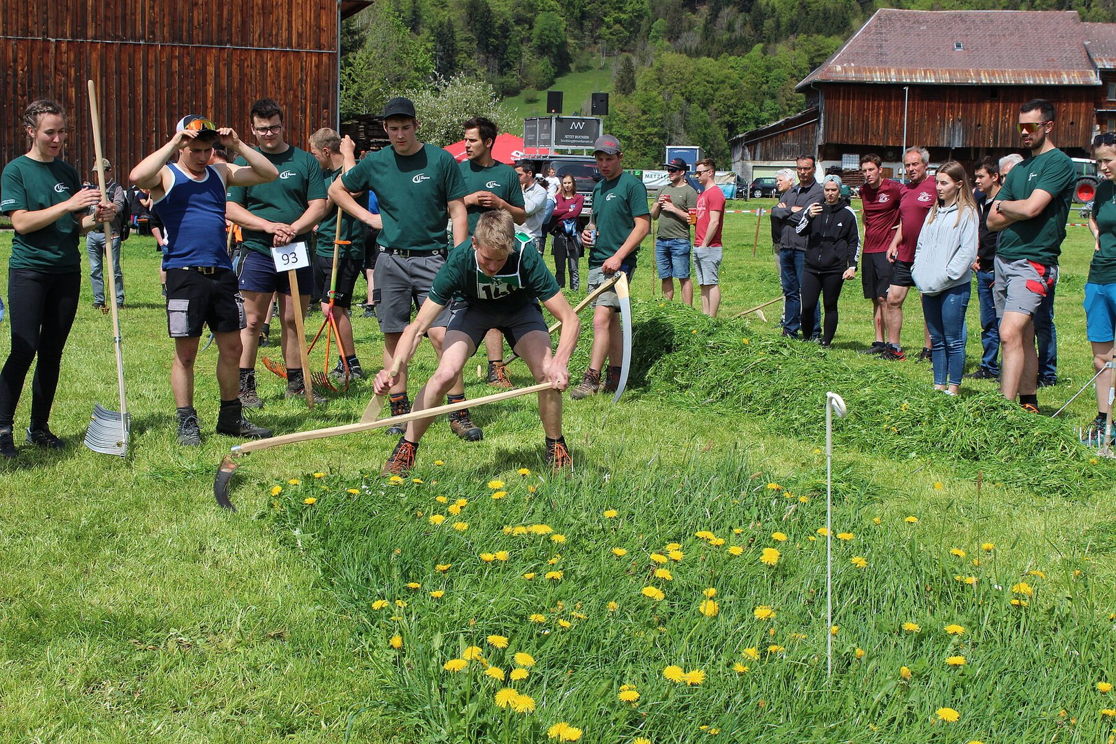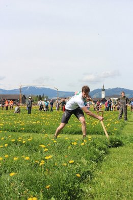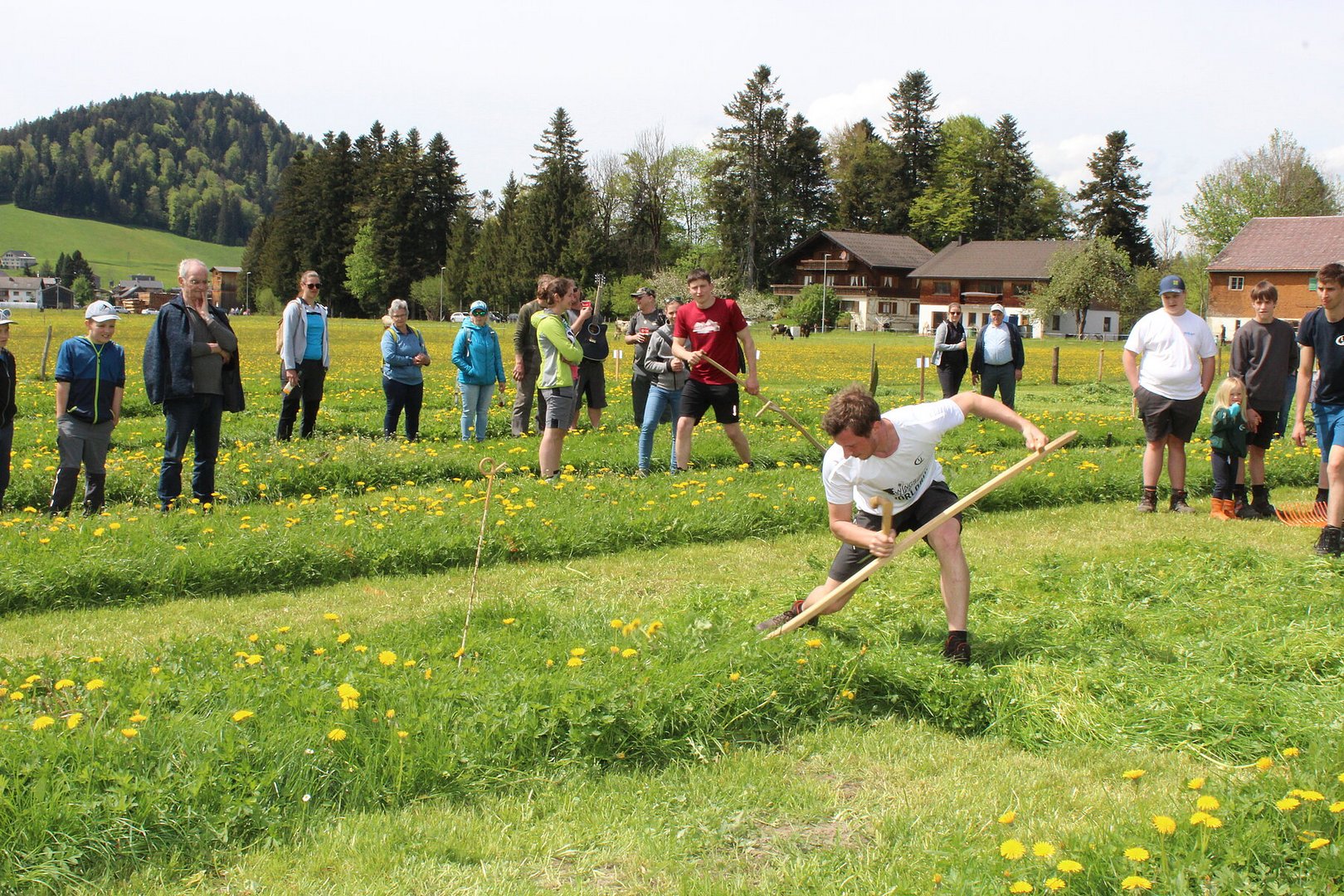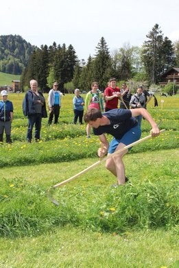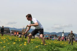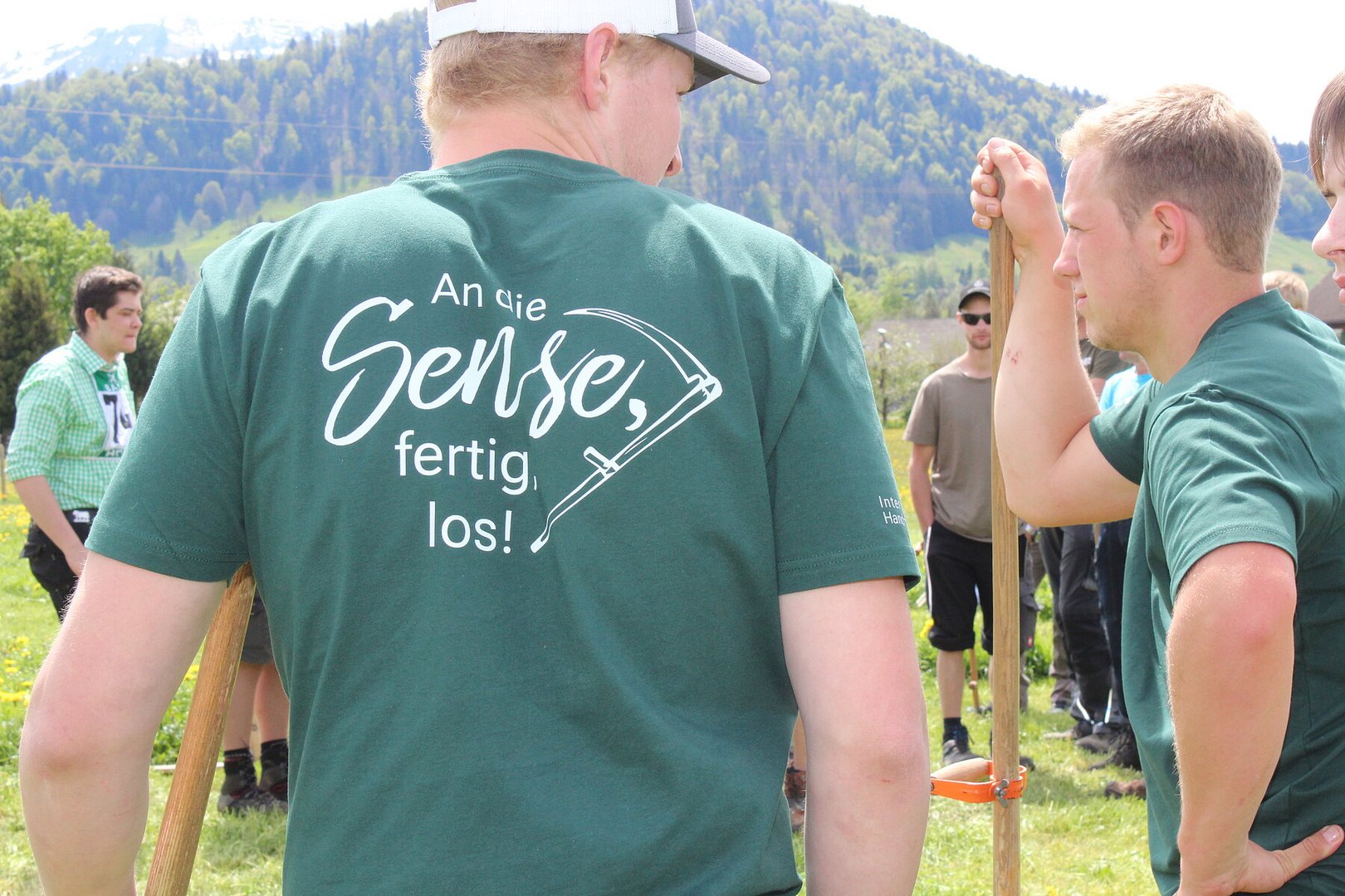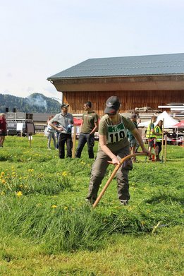 Der Sensenmäh-Wettbewerb hat bei der Landjugend schon Tradition. In der Praxis kommt das Sensenmähen an Hängen und im Berggebiet zum Einsatz, dort wo Maschinen keine Chance mehr haben und daher viel Muskelkraft und Ausdauer gefragt sind. Beim Mähwettbewerb geht es vor allem um die Schnelligkeit, Regelmäßigkeit und Sauberkeit der Mahd. Mehrere Teilnehmerinnen bzw. Teilnehmer treten im direkten Wettstreit auf ihren gelosten Parzellen gegeneinander an. Eine besonders spannende Situation für das Publikum, das hautnah, direkte Vergleiche anstellen kann. Ist die Fläche komplett abgemäht, wird das Gras von den Helfern zur Seite gebracht und von der dreiköpfigen Jury kontrolliert, welche bei unsauberem Ergebnis Zeitzuschläge vergibt. Es gewinnt, wer die geringste Gesamtzeit - also Summe aus gemessener Mähzeit und Zeitzuschlag - erzielt.