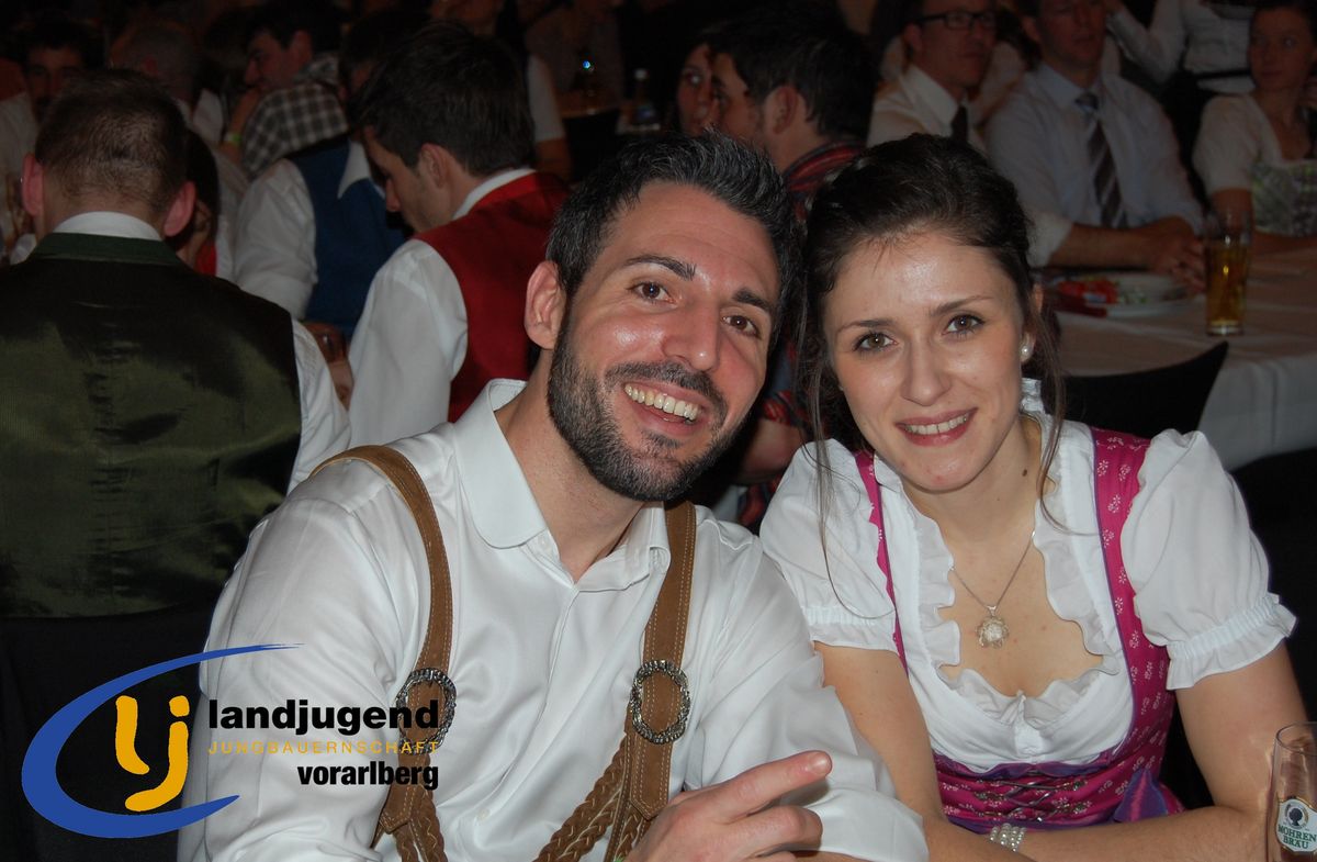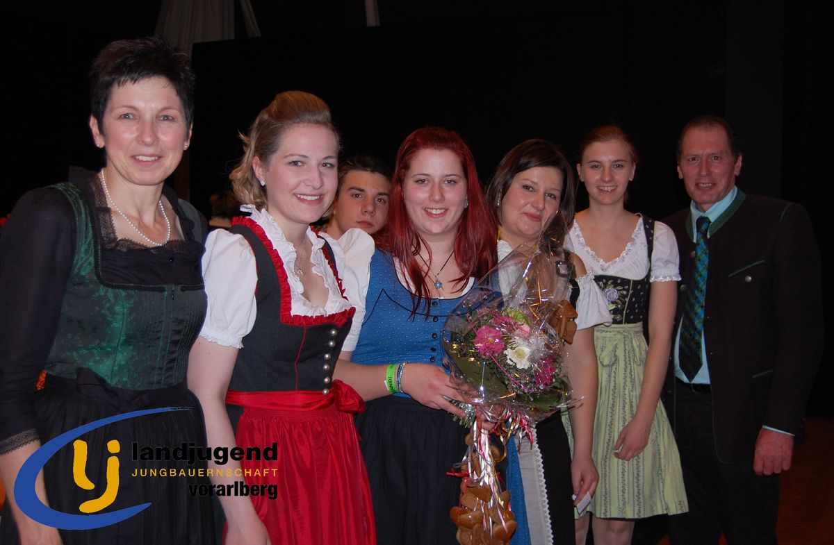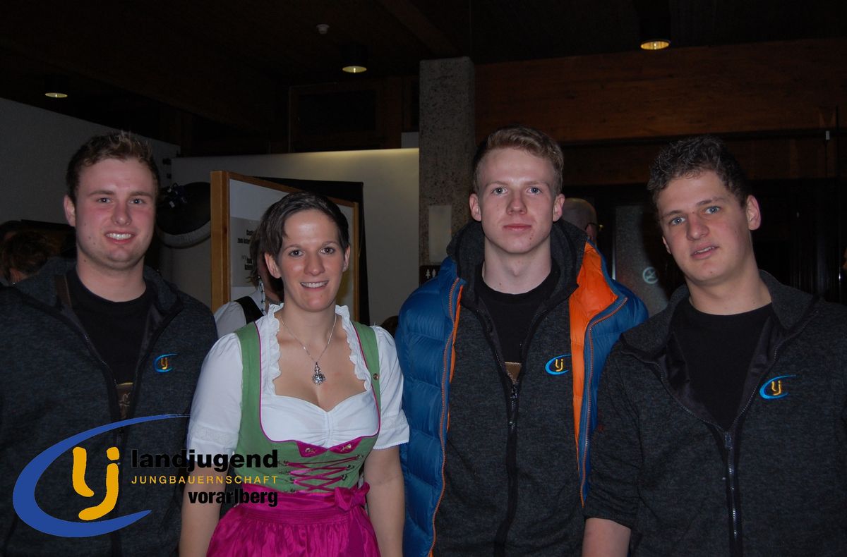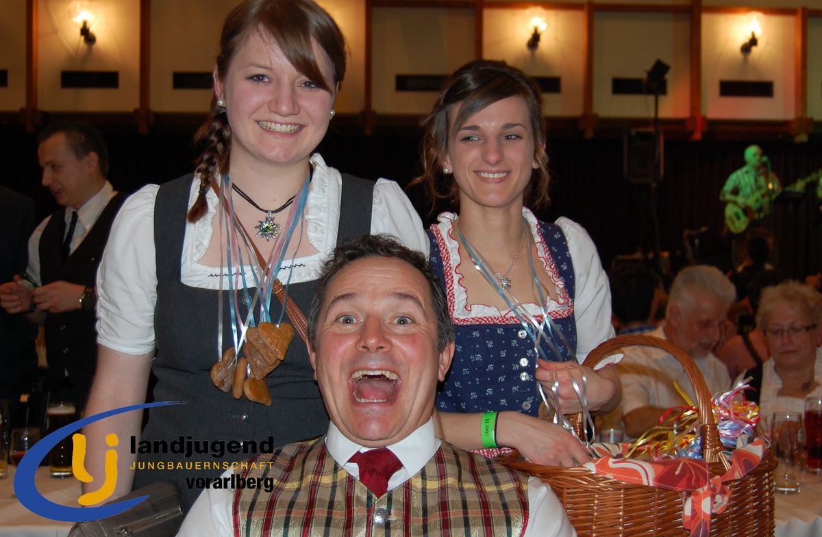 Letzen Samstag, 10. Jänner ging im Hofsteigsaal in Lauterach der inzwischen schon traditionelle Landesbauernball über die Bühne. Ein Ball mit Tradition und LÄNDLE-Genuss. Ganz im Sinne von „Ökoland – regional und fair“ boten die Veranstalter Landjugend Jungbauernschaft, Bäuerinnenorganisation und Landwirtschaftskammer den Gästen ein abwechslungsreiches Programm und Köstlichkeiten aus der Region. Ob Kuchenleckereien der Bäuerinnen Unterland, Erfrischungen der Vorarlberger Mostsommelieres, Lebensmittel der Vorarlberg Milch, Fleischspezialitäten von Karu-Sulzberg und der Metzgerei Klopfer aus Lauterach oder Nudeln vom Martinshof und andere mehr; für Gaumenfreuden aus dem Lande war bestens gesorgt. Das ließen sich auch zahlreiche Ehrengäste wie Landes- und Bundesbäuerin Andrea Schwarzmann, Landesrat Ing. Erich Schwärzler, Kammerpräsident StR. Josef Moosbrugger, Kammervizepräsident Klaus Schwarz, Nationalratsabgeordneter Norbert Sieber, LAbg. Bgm. Christian Gantner, LAbg. Bernhard Feuerstein, Landesbäuerin-Stellvertreterin Michaela Stadelmann, Thomas Reisinger und Arnulf Warmuth als Vertreter der Landjugend Österreich sowie die Leiter der Landjugend Vorarlberg Martina Schindler und Bernhard Schrottenbaum nicht entgehen. Für die musikalische Unterhaltung sorgten die BergSpatzen aus dem Bregenzerwald, bei deren Musik die Ballbesucher gar nicht mehr aufhören konnten das Tanzbein zu schwingen. Weitere Highlights des Bauernballes waren die Tanz- und Showeinlage von Menschen mit und ohne Beeinträchtigung des Tanzhauses Hohenems unter der Leitung von Britta Hafner und Liba Selner, die heitere Mitternachtseinlage des Landesvorstandes der Landjugend Jungbauernschaft Vorarlberg und das Casting zum österreichischen Jungbauernkalender, welches von den Ballbesuchern sehr gut angenommen wurde. Über die Wahl zur ersten Landesbauernball-Königin freute sich Elisabeth Feuerstein aus dem Klostertal, die von den Ballbesuchern mit rund 50 Herzchen zur Landesbauernball-Königin gekürt wurde.