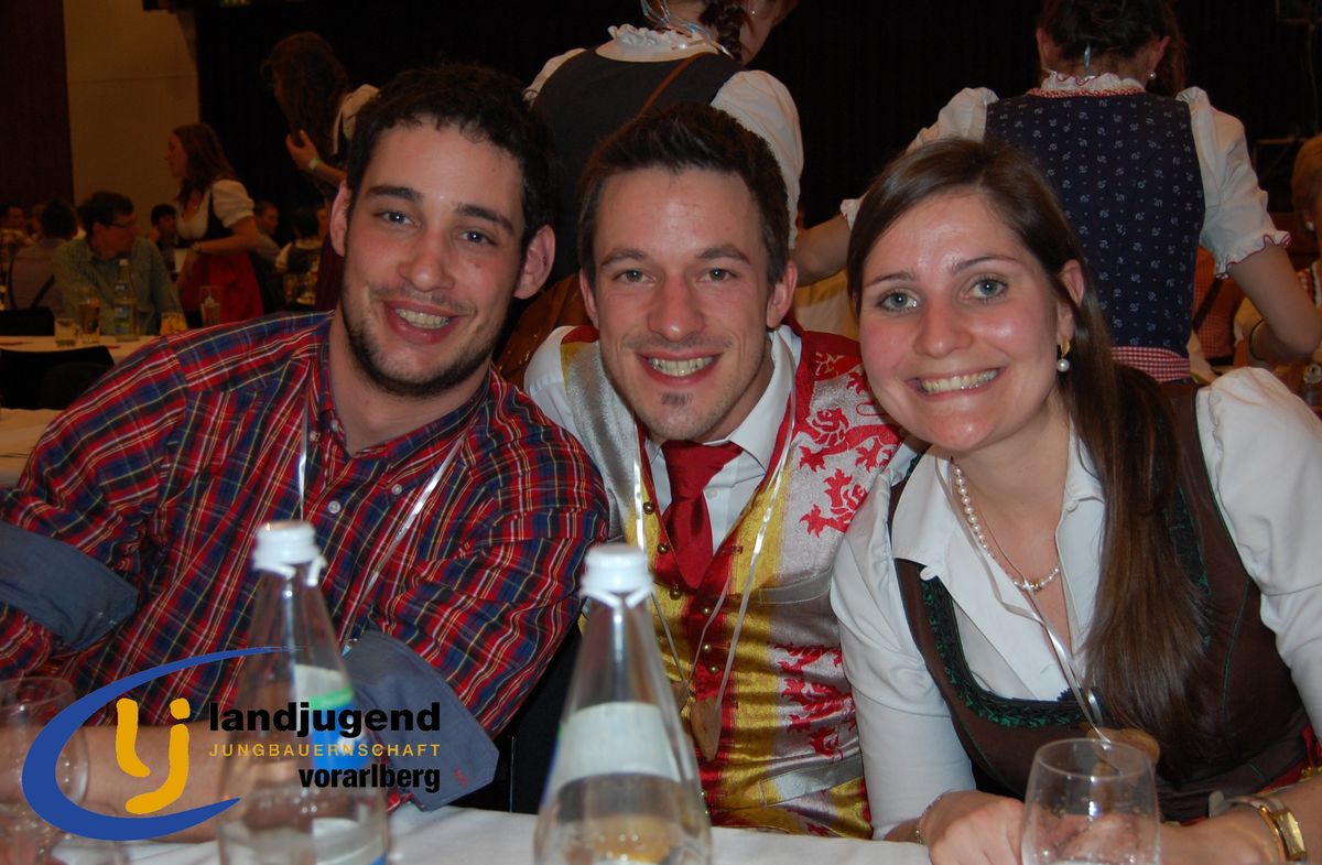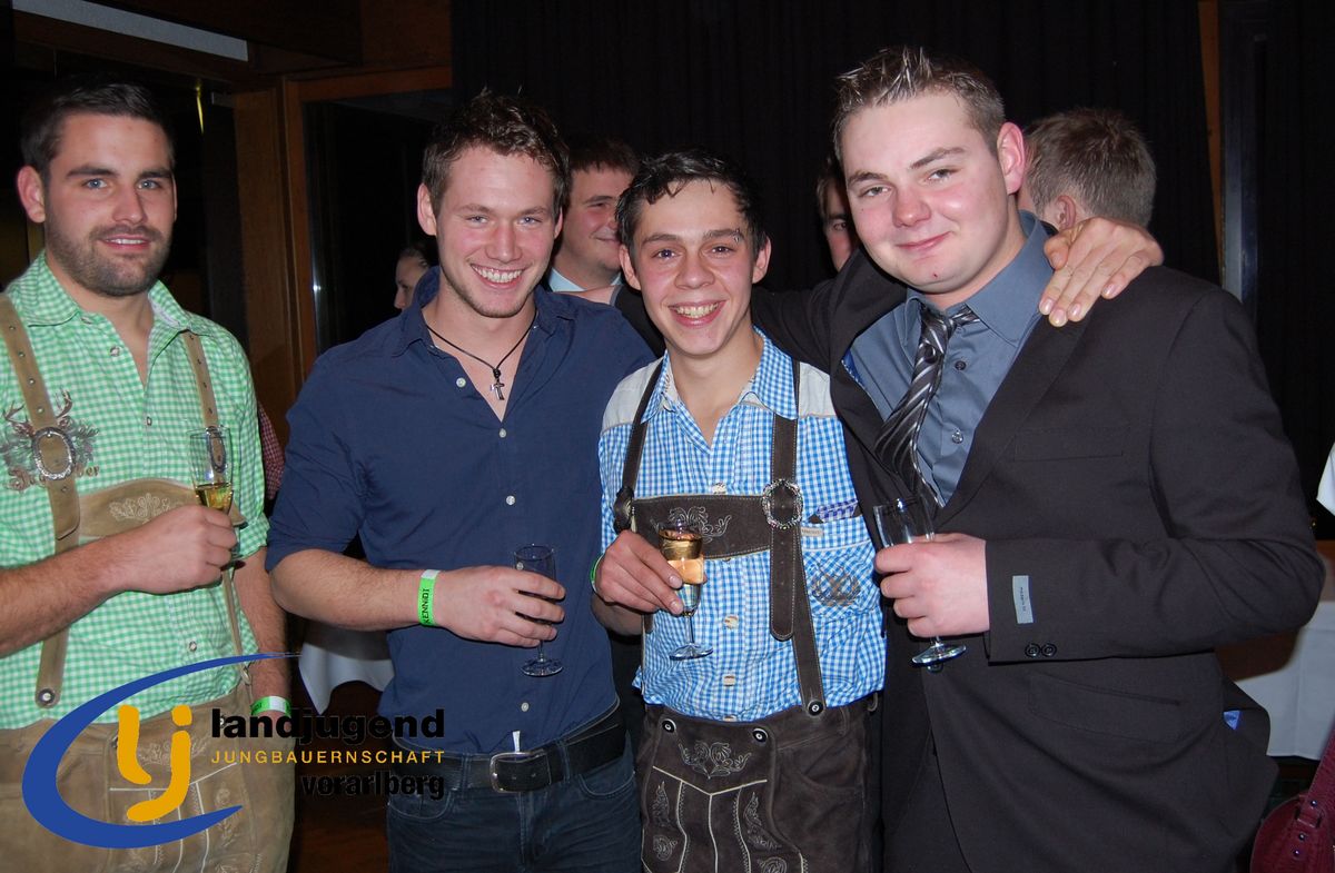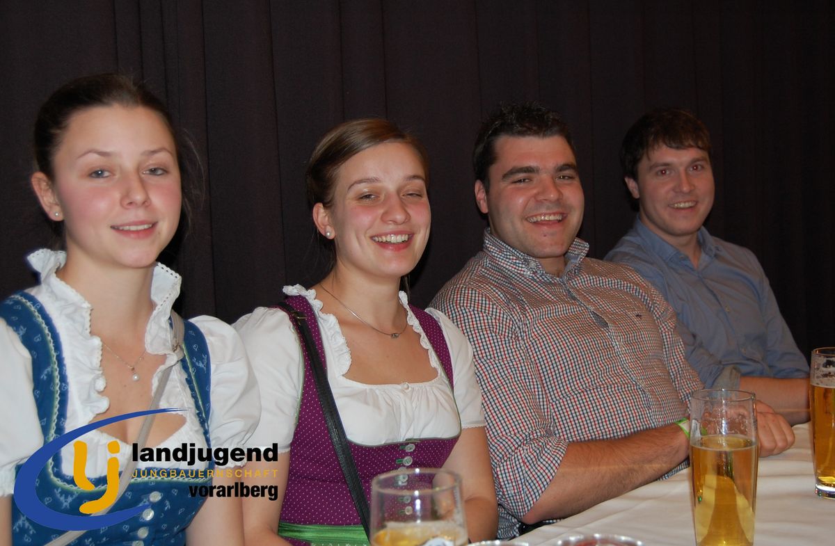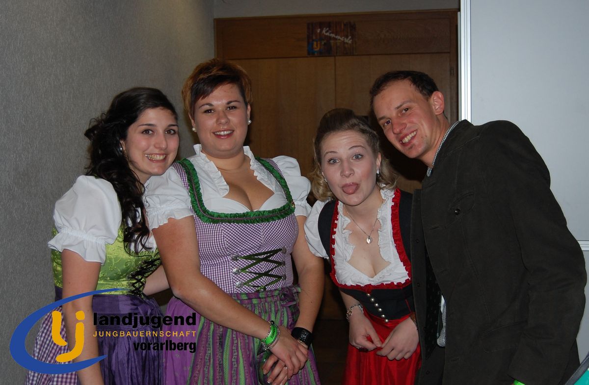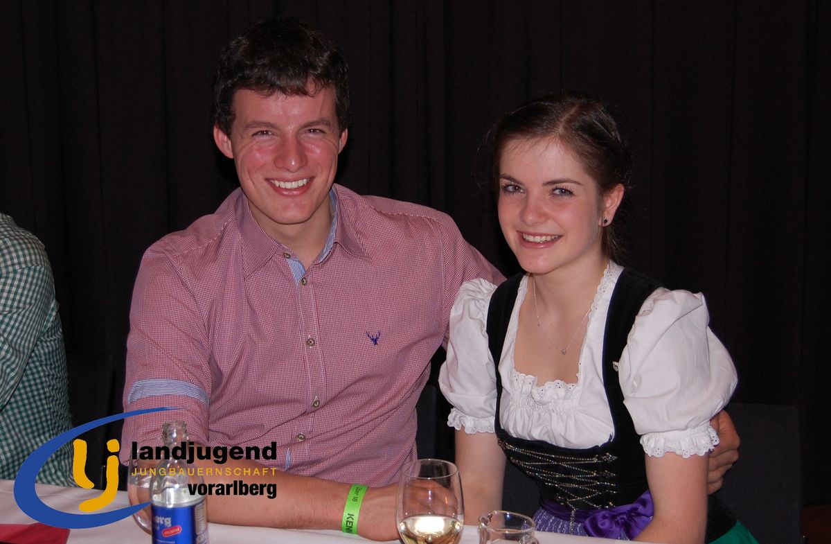 Letzen Samstag, 10. Jänner ging im Hofsteigsaal in Lauterach der inzwischen schon traditionelle Landesbauernball über die Bühne. Ein Ball mit Tradition und LÄNDLE-Genuss. Ganz im Sinne von „Ökoland – regional und fair“ boten die Veranstalter Landjugend Jungbauernschaft, Bäuerinnenorganisation und Landwirtschaftskammer den Gästen ein abwechslungsreiches Programm und Köstlichkeiten aus der Region. Ob Kuchenleckereien der Bäuerinnen Unterland, Erfrischungen der Vorarlberger Mostsommelieres, Lebensmittel der Vorarlberg Milch, Fleischspezialitäten von Karu-Sulzberg und der Metzgerei Klopfer aus Lauterach oder Nudeln vom Martinshof und andere mehr; für Gaumenfreuden aus dem Lande war bestens gesorgt. Das ließen sich auch zahlreiche Ehrengäste wie Landes- und Bundesbäuerin Andrea Schwarzmann, Landesrat Ing. Erich Schwärzler, Kammerpräsident StR. Josef Moosbrugger, Kammervizepräsident Klaus Schwarz, Nationalratsabgeordneter Norbert Sieber, LAbg. Bgm. Christian Gantner, LAbg. Bernhard Feuerstein, Landesbäuerin-Stellvertreterin Michaela Stadelmann, Thomas Reisinger und Arnulf Warmuth als Vertreter der Landjugend Österreich sowie die Leiter der Landjugend Vorarlberg Martina Schindler und Bernhard Schrottenbaum nicht entgehen. Für die musikalische Unterhaltung sorgten die BergSpatzen aus dem Bregenzerwald, bei deren Musik die Ballbesucher gar nicht mehr aufhören konnten das Tanzbein zu schwingen. Weitere Highlights des Bauernballes waren die Tanz- und Showeinlage von Menschen mit und ohne Beeinträchtigung des Tanzhauses Hohenems unter der Leitung von Britta Hafner und Liba Selner, die heitere Mitternachtseinlage des Landesvorstandes der Landjugend Jungbauernschaft Vorarlberg und das Casting zum österreichischen Jungbauernkalender, welches von den Ballbesuchern sehr gut angenommen wurde. Über die Wahl zur ersten Landesbauernball-Königin freute sich Elisabeth Feuerstein aus dem Klostertal, die von den Ballbesuchern mit rund 50 Herzchen zur Landesbauernball-Königin gekürt wurde.