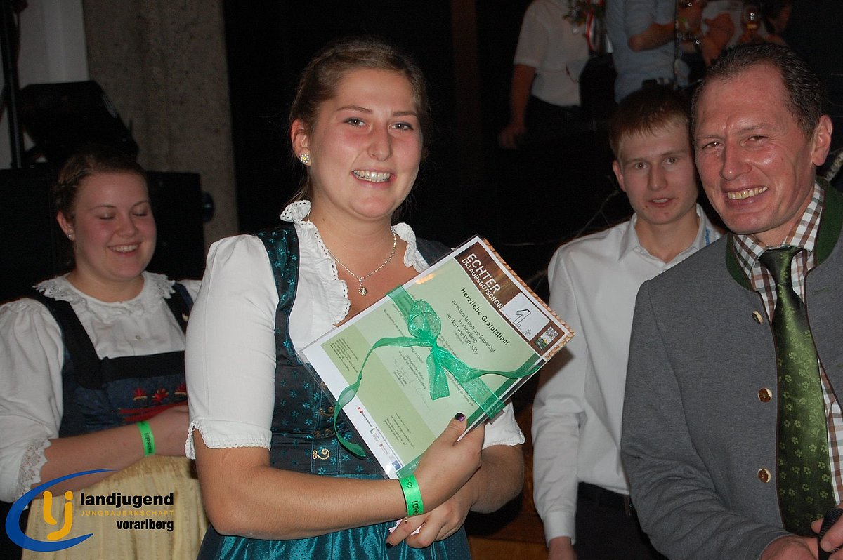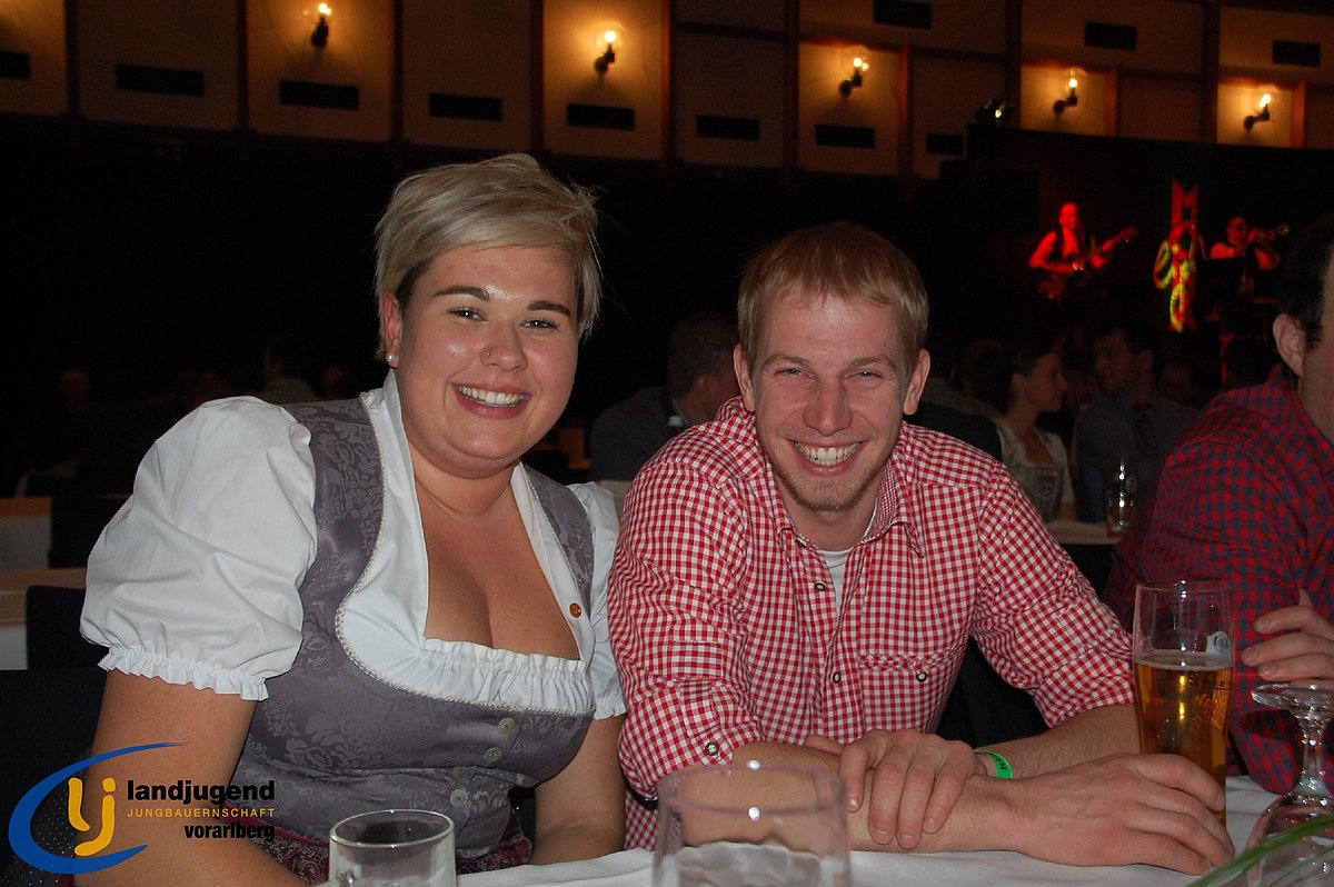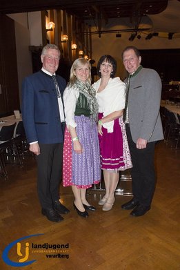 Die Landwirtschaftskammer und die Vorarlberger Bäuerinnen luden gemeinsam mit der Landjugend Jungbauernschaft Vorarlberg zum Landesbauernball im Hofsteigsaal in Lauterach ein. Mit Spezialitäten aus dem Ländle konnten sich die Gäste köstlich verwöhnen lassen. Bei den Speisen angefangen bis hin zum erfrischenden, prickelnden Mostgetränk der Vorarlberger Mostsommeliers - der gesamte Ball stand im Zeichen der Regionalität. Die Familie Nachbaur vom Peter Hof aus Fraxern hat Mostspezialitäten ins Rampenlicht gerückt und den Facettenreichtum des Mostes präsentiert. Der Einladung zu dieser top organisierten Ballveranstaltung ging Landesrat Erich Schwärzler mit Gattin Kathi, sowie Landes- und Bundesbäuerin Andrea Schwarzmann, Nationalratsabgeordneter Norbert Sieber mit Sybille, Kammerpräsident StR. Josef Moosbrugger mit Gattin Doris, sowie Bäuerinnen Stv. Michaela Stadelmann mit Gatte Hubert gerne nach. Die Bundesleiterin der österreichischen Landjugend Julia Saurwein, die Landtagsabgeordneten Bernhard Feuerstein und Christof Bitschi genossen das abwechslungsreiche Programm inmitten einer Vielzahl von Dirndl- und Trachtenträgern. Die Monalight aus Salzburg unterhielten mit flotter Musik die zum Tanzen einlud. Unter der Leitung von Andreas Tschann präsentiere die Trachtengruppe Nüziders, beim Auftanz trittsicher ihren neu einstudierten Jubiläumstanz und die Landjugend Jungbauernschaft Kleinwalsertal punktete mit einer humorvollen Einlage. Das Organisationsteam, zu dem Evy Halder, Barbara Geißler, Theresia Meusburger, Thomas Ganahl und Gebhard Bechter gehörten, hat mit dem traditionellen Ball für einen schwungvollen Start in das Jahr der Land- und Forstwirtschaft gesorgt.