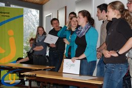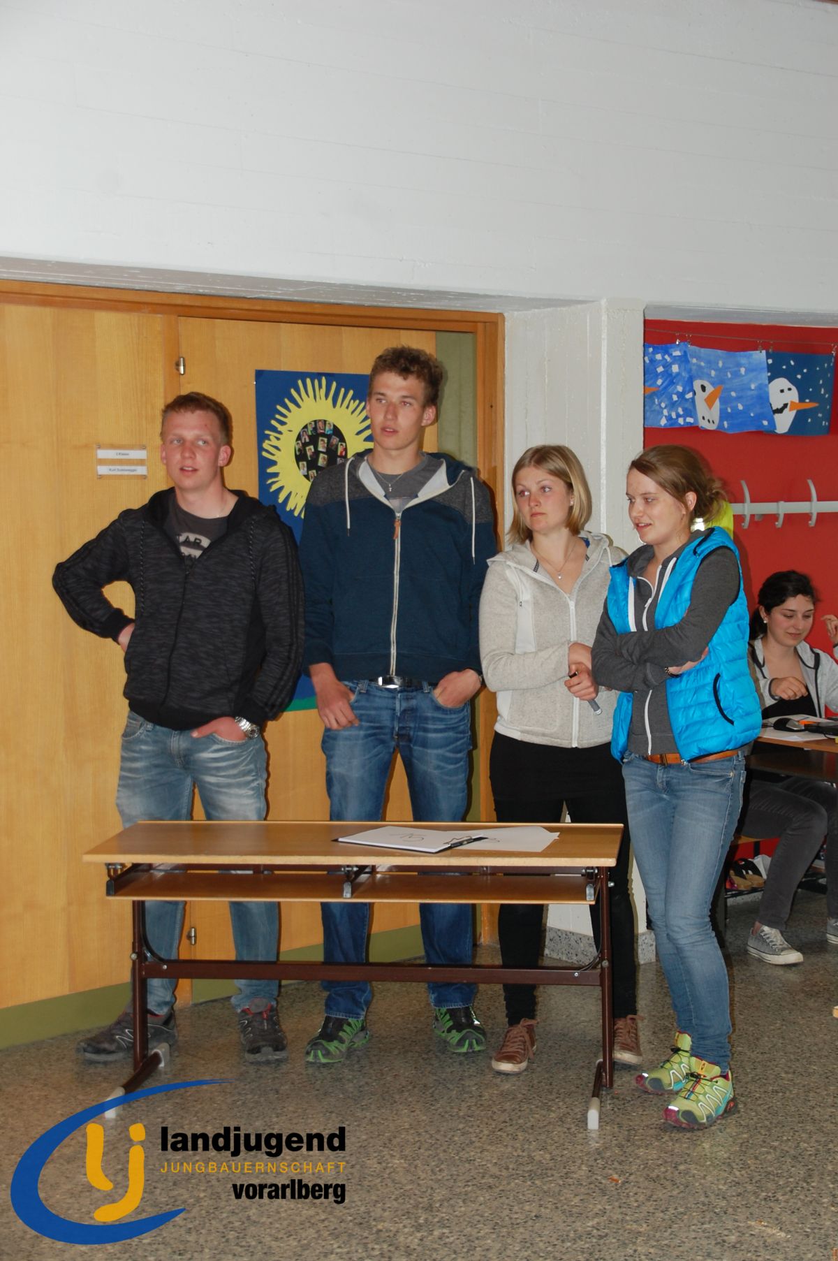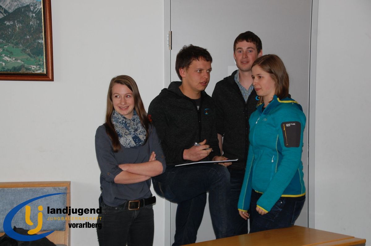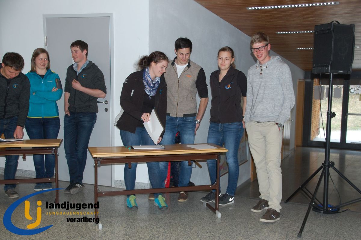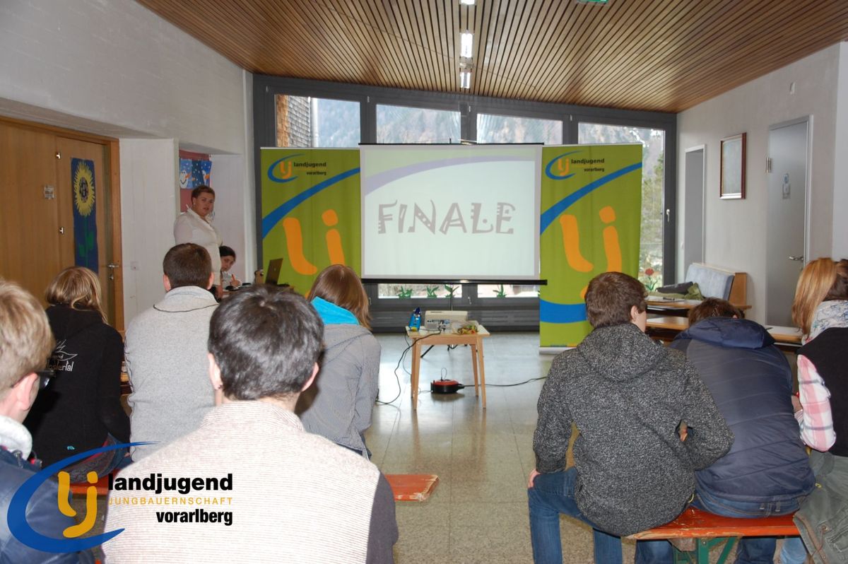 Die besten vier Teams, welche aus dem Hinterwald, dem Vorderwald und dem Großwalsertal kamen, traten sich im Finale gegenüber. Zum Finale durfte die Landesleitung Alt-Landjugendobmann und Hausherrn Bürgermeister Christian Gantner herzlichst begrüßen. Er übernahm eine tragende Rolle in den Finalaufgaben und meisterte diese bravourös. Im Finale entschied nämlich nicht allein das Wissen der Finalisten, auch das gewisse Quäntchen Glück war erforderlich. Das Team „cool runnings“ mit Lisbeth Zengerle, Adriane Martin, Georg Düringer und Florian Sutter konnte den Landesentscheid 4er Cup für sich entscheiden und hat sich somit für den Bundesentscheid qualifiziert. Ebenso das zweitplatzierte Team aus dem Vorderwald mit Anja Bechter, Lina Bilgeri, Konrad Nußbaumer und Klaus Gmeiner darf Vorarlberg beim Bundesentscheid 4er Cup und Reden von 14. bis 17. Juli in Bezau vertreten. Ein herzlicher Dank gilt der Landjugend Jungbauernschaft Oberland, die die Teilnehmer/-innen und Juroren den gesamten Tag mit Köstlichkeiten aus der Region verpflegten.