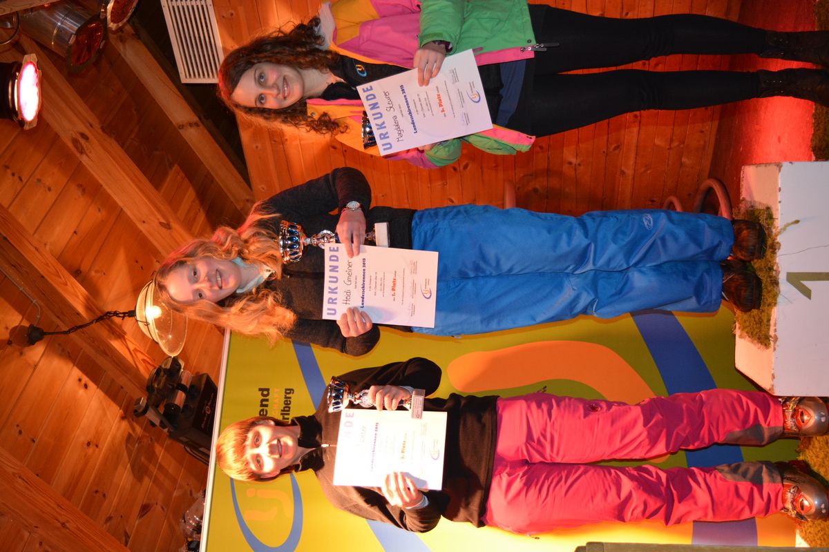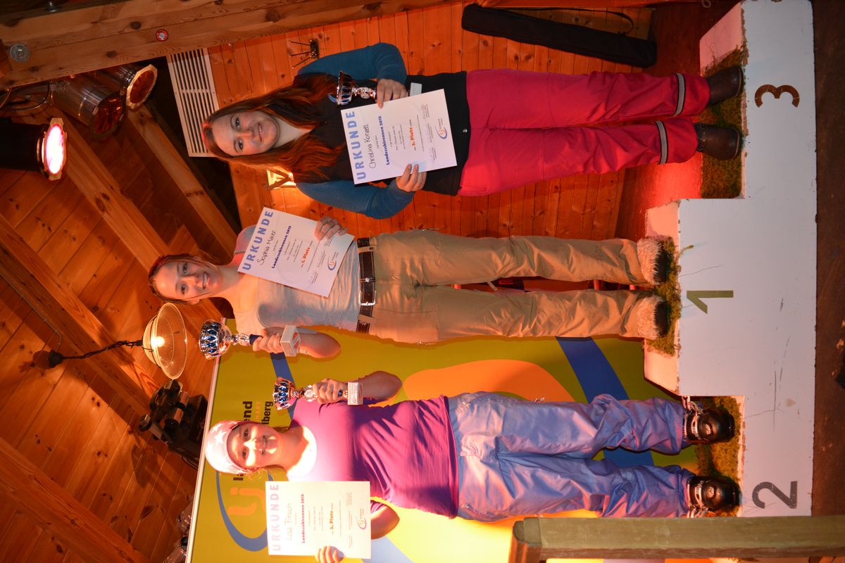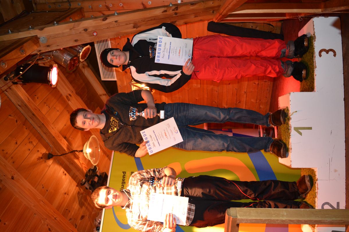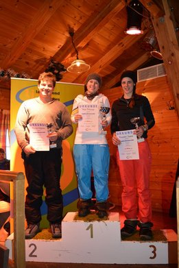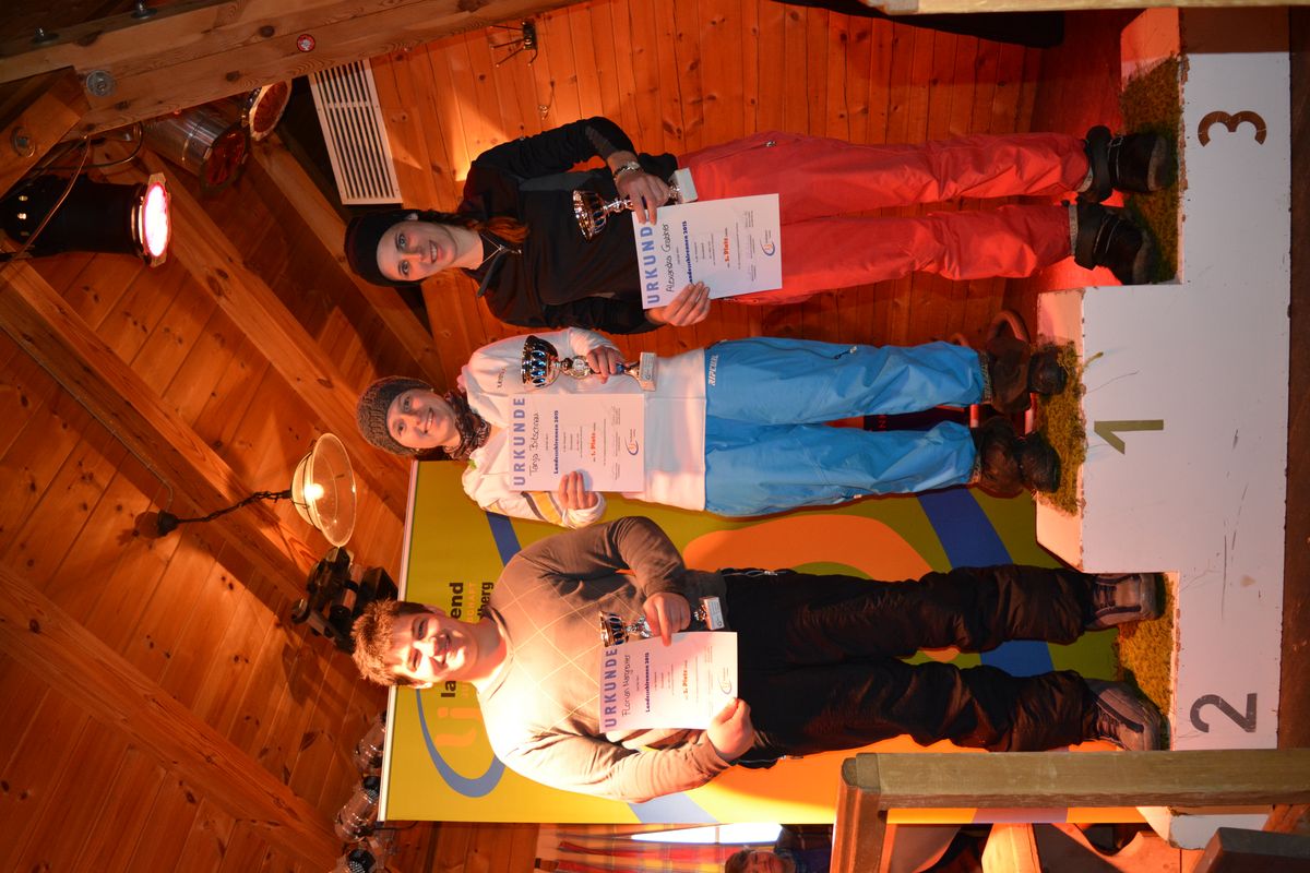 ERGEBNISSE Snowboard 1. Tanja Bitschnau, Bartholomäberg 2. Florian Margreitter, Braz 3. Alexandra Grabher, Altach Schi Damen unter 20 1. Sophia Maier, Schruns 2. Lisa Fitsch, St. Gallenkirch 3. Christina Konzett, Fontanella Damen über 20 1. Heidi Gmeiner, Riefensberg 2. Tamara Natter, Bezau 3. Magdalena Steurer, Hittisau Herren unter 20 1. Jakob Winder, Alberschwende 2. Felix Tschohl, Tschagguns 3. Aron Bitschnau, Bartholomäberg Herren über 20 1. Florian Rinderer, Thüringerberg 2. Tobias Bitsche, Feldkirch 3. Julian Rinderer, Sonntag Gebietswertung: 1. Montafon 2. Großwalsertal Gaudi-Bewerb: 1. Vorderwald 2. Klostertal