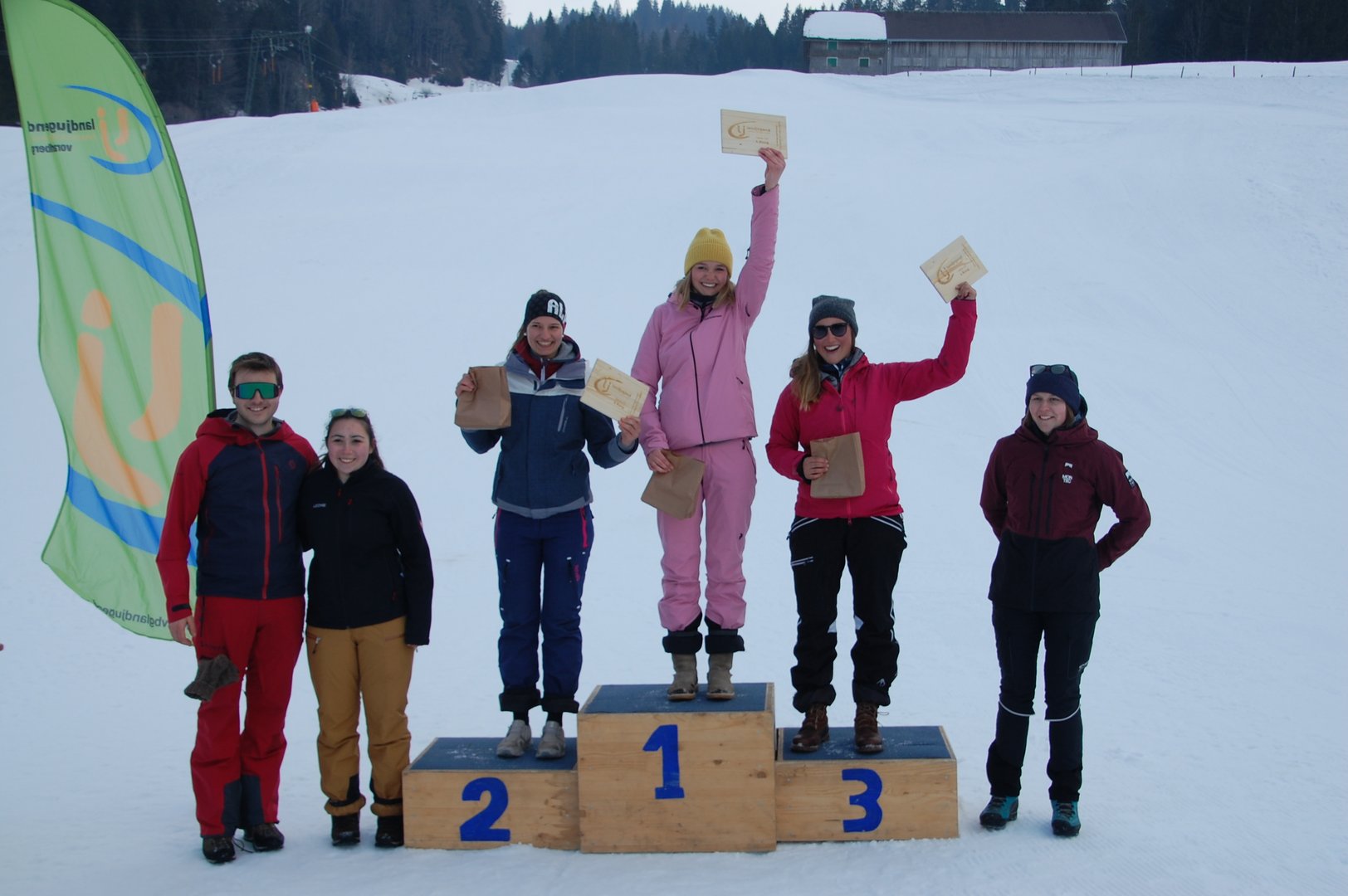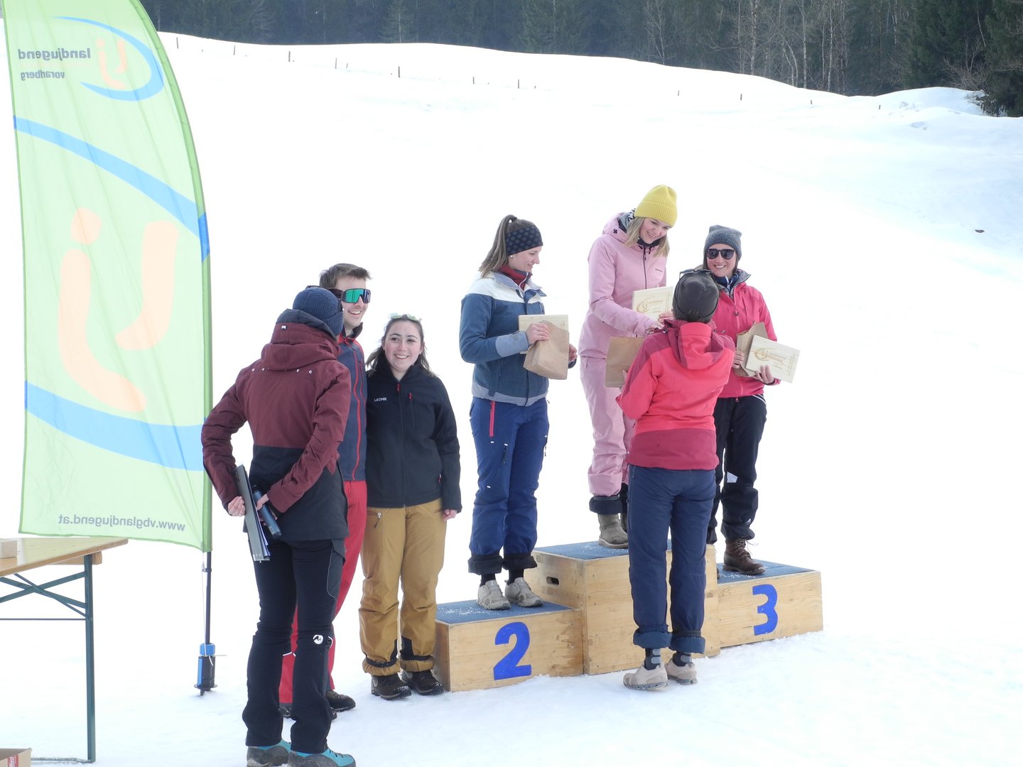 Pünktlich um 12 Uhr standen alle 31 Rennläufer beim Start der Rennstrecke im Krähenberg und warteten darauf ihr Können zu zeigen. Bei wunderbarem Sonnenschein schafften es alle Rennläufer sicher ins Ziel. Dabei fuhren sie in den vier Kategorien Damen U20, Damen Ü20, Herren U20 und Herren Ü20. Die Sieger der jeweiligen Kategorien erhielten ein tolles Jausen-Brett mit Landjäger und Käse – dies wurde von der LJ Vorderwald organisiert.