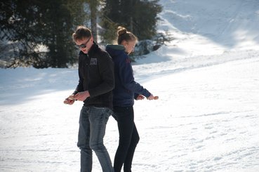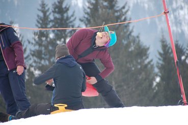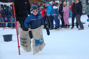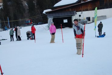 Nach dem Rennlauf traten zahlreiche Schneebegeisterte zum Gaudibewerb an. Das schnellste 2er-Team konnte einen Gutschein von „Vorarlberg isst“ und ein tolles Landjugend-Stirnband gewinnen – darüber freuten sich Richard & Benjamin Flatz von der LJ-JB Vorderwald.