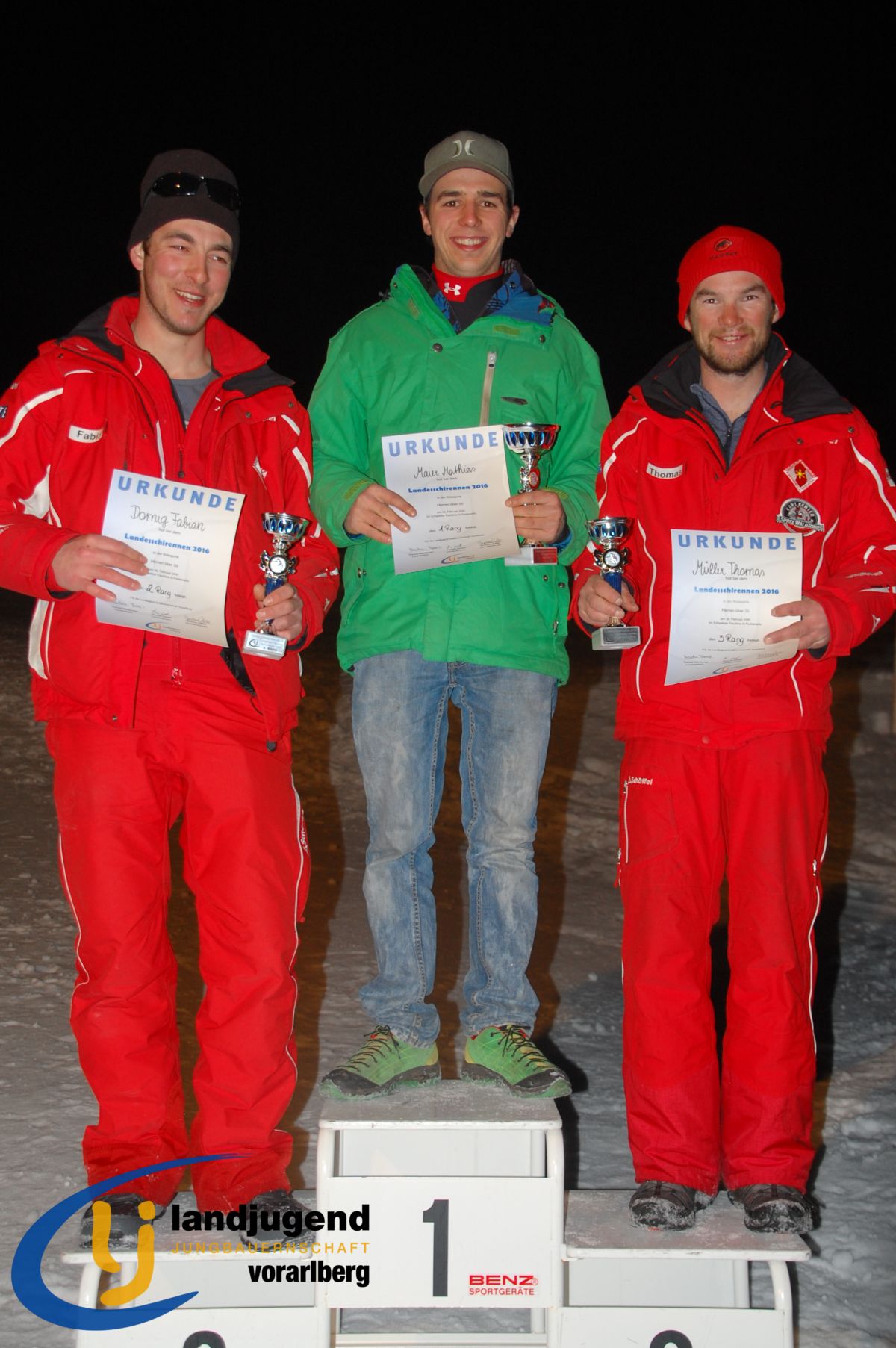Rang 1 Aron Bitschnau (Montafon) Rang 2 Ivan Rüscher (Hinterwald) Rang 3 Simon Bickel (Großwalsertal) Schi Herren über 20 Rang 1 Mathias Maier (Montafon) Rang 2 Fabian Domig (Großwalsertal) Rang 3 Thomas Müller (Großwalsertal)