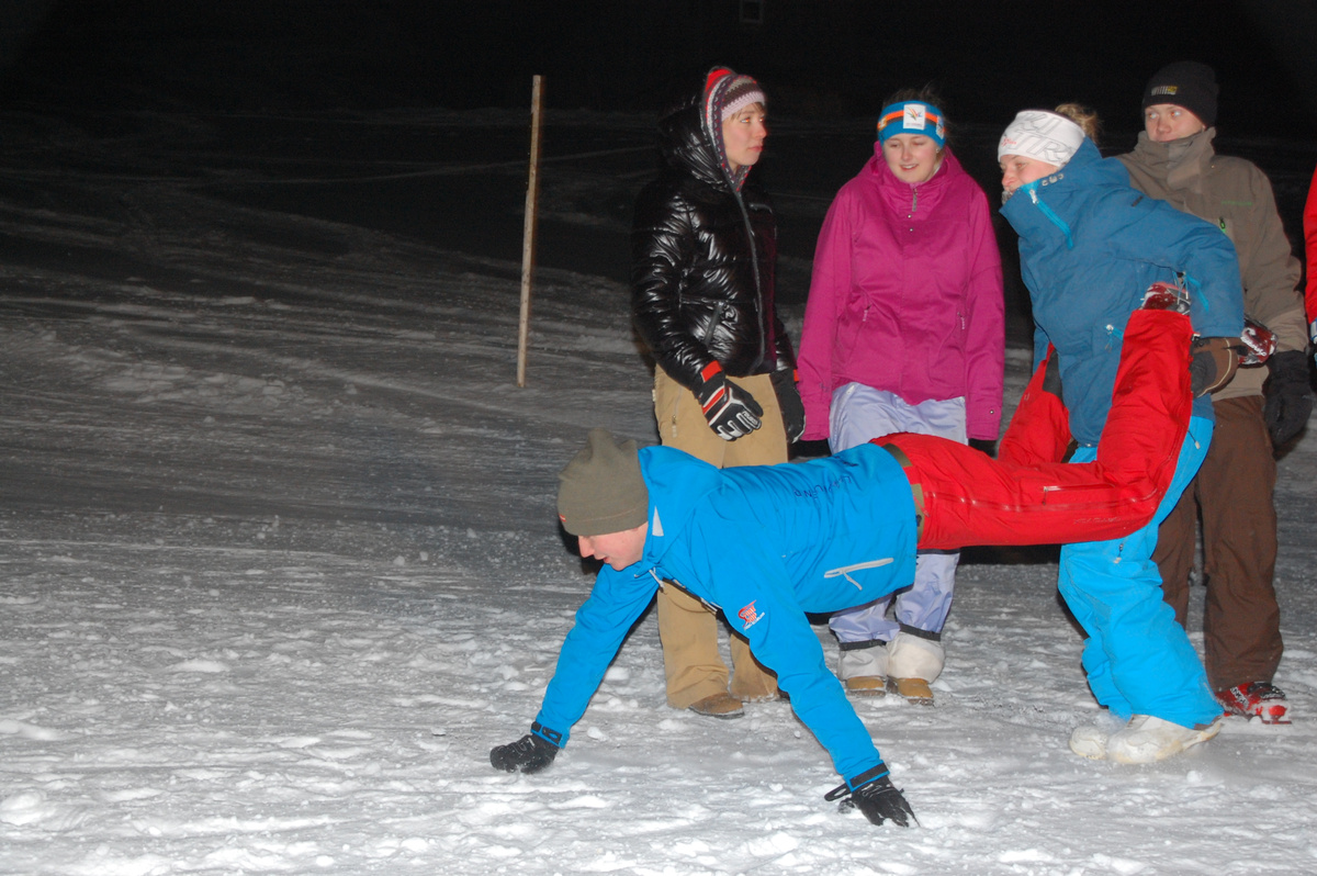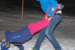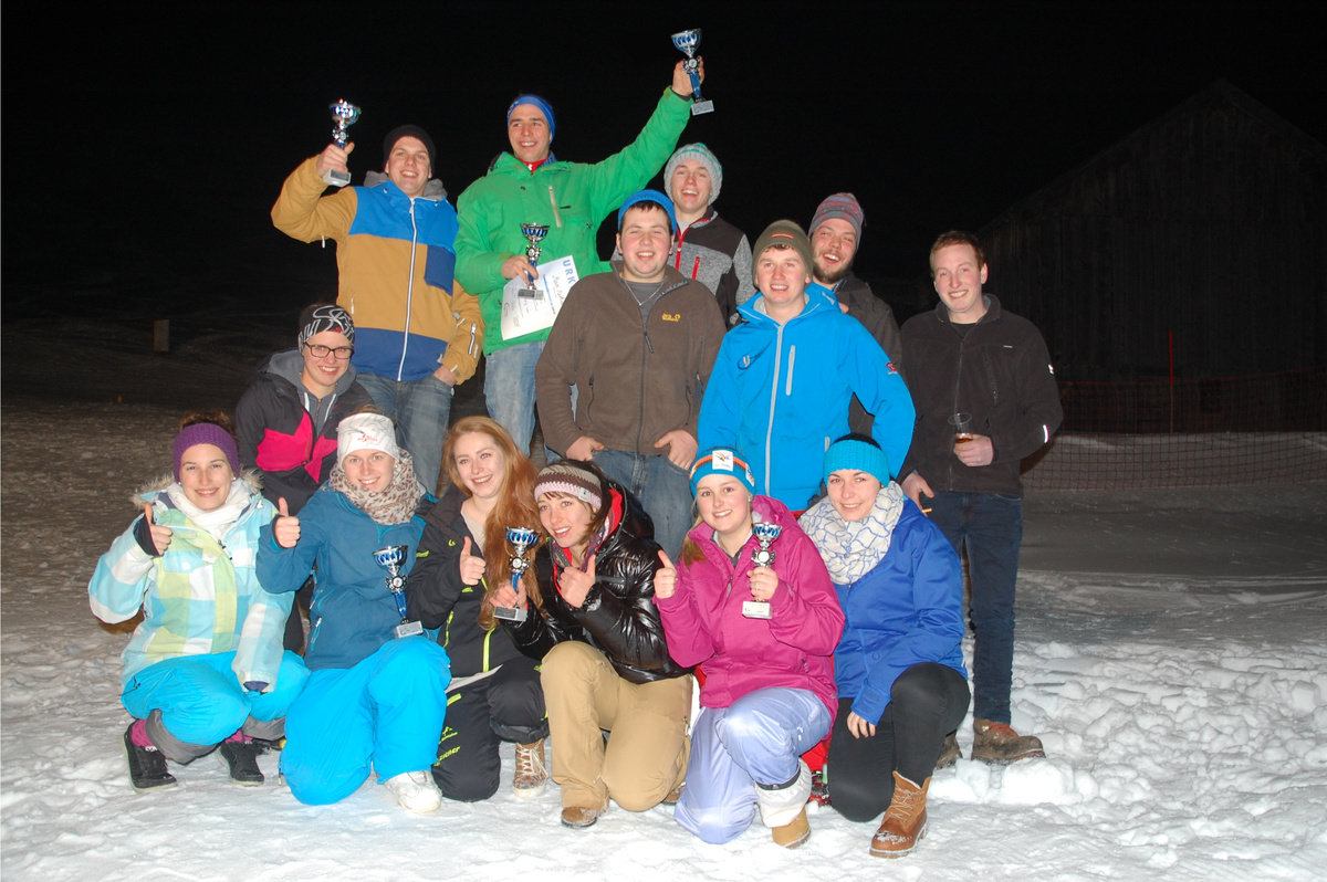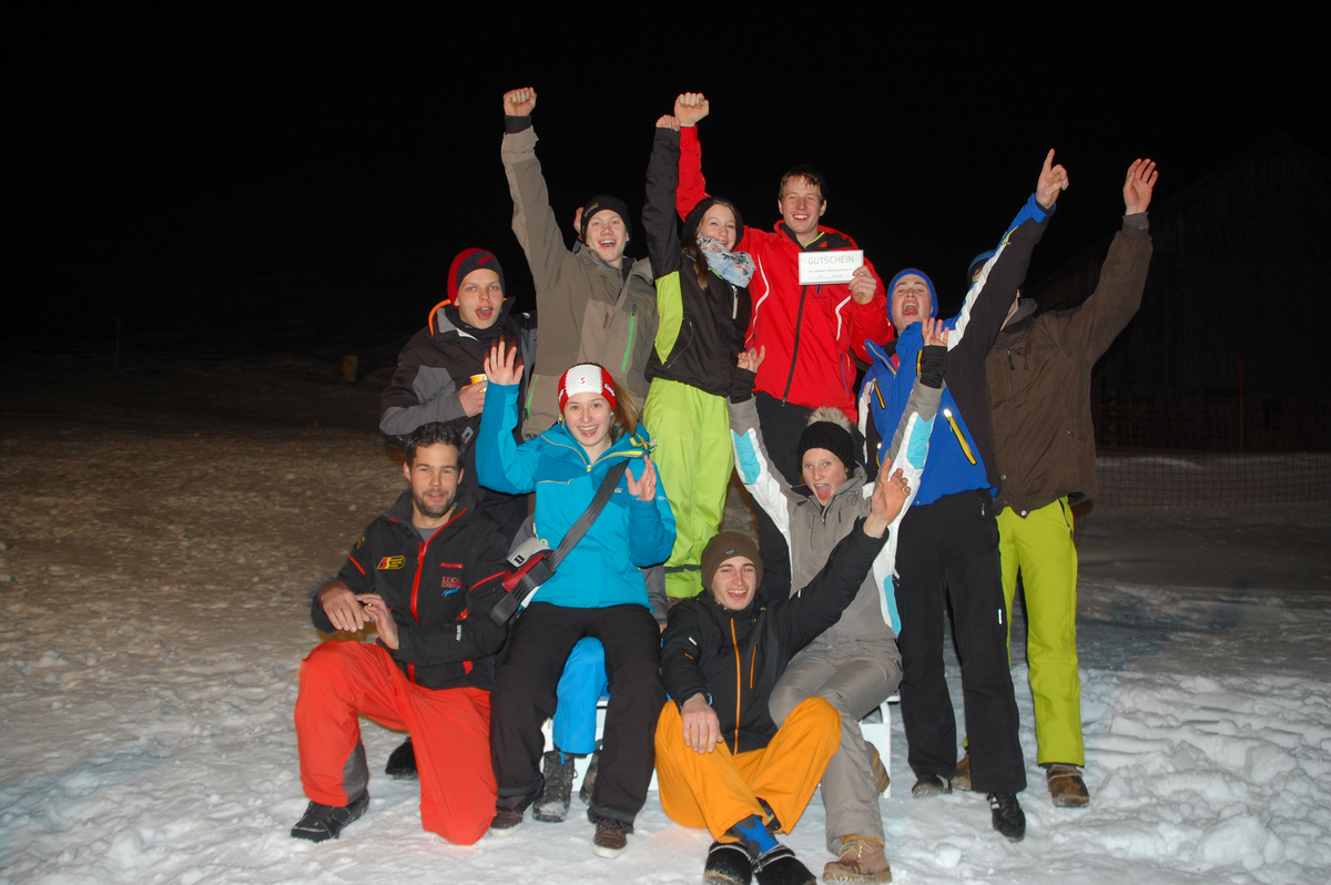 Nach dem unfallfreien Rennverlauf trafen sich die zahlreichen Wintersportler zum Gaudibewerb ein. Beim Gaudebewerb konnte die schnellste Landjugendgruppe eine Käsknöpflepartie für zehn Personen in Schönebach gewinnen. Über diese deftige Einladung haben sich die Gaudebewerb-Gewinner der Landjugend Jungbauernschaft Vorderwald sehr gefreut.