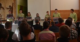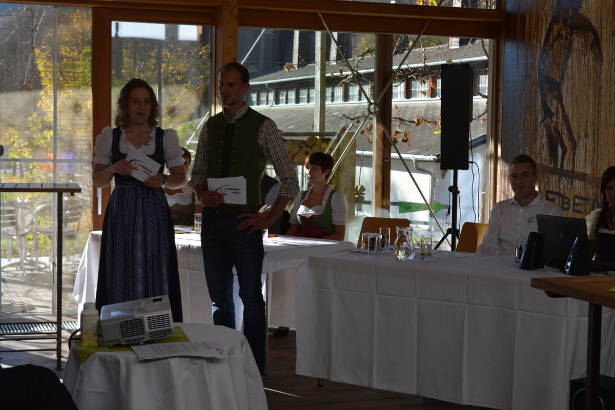 Bei strahlendem Herbstwetter ging im Sunnahof Tuffers in Göfis die Generalversammlung der Landjugend Jungbauernschaft Vorarlberg über die Bühne. Über 100 Mitglieder und Gäste aus dem ganzen Land nahmen sich die Zeit, sich über die umfangreichen Aktivitäten der größten Jungendorganisation des Landes zu informieren. Gut 2.500 Mitglieder, davon die Hälfte aus nichtbäuerlichen Familien, organisiert in Bezirks-, Gebiets- und Ortsgruppen gehören zum Verein. So leistet die Landjugend einen unverzichtbaren Austausch zwischen Konsumenten und Produzentenseite und trägt zum Image der heimischen Landwirtschaft bei. Nach der Begrüßung durch Obmann Bernhard Schrottenbaum und Landesleiterin Martina Schindler startete die Veranstaltung mit einem Wortgottesdienst, gehalten vom Egger Pfarrer Friedl Kaufmann. Musikalisch begleitet wurde die Messe und die Generalversammlung durch das Duo Breitbänd. RÜCKBLICK In ihrem "letzten" Tätigkeitsbericht ließen Martina Schindler und Bernhard Schrottenbaum noch einmal die Höhepunkte des Jahres Revue passieren. Dazu gehören z.B. der Landesbauernball, der 4er Cup, die Beteiligung an der Woche der Landwirtschaft zum Thema Boden, der Redewettbewerb oder die Unterstützung der Erntedankfeste. Im Anschluss wurden an besonders engagierte Mitglieder die Leistungsabzeichen vergeben. PROJEKTPRÄMIERUNG Spannung versprach die Präsentation der vier "LAKI" Projekte, die in einer internen Abstimmung um den Titel "Projekt des Jahres" kämpften. Zur Wahl stellte sich das Projekt "Zukunft Berglandwirtschaft" der Landjugend Vorderwald, das Projekt "Mitanand - Hand in Hand" der Landjugend Hinterwald, das Flüchtlingsprojekt der Landjugend Großwalsertal und das Projekt "Zemma heba - Alpa pflega der Landjugend Montafon. Den Sieg konnte schlussendlich das Projekt "Mitanand - Hand in Hand" erringen. NEUWAHLEN Höhepunkt der Generalversammlung war die Wahl des neuen Vorstandes. Das bisherige Führungsduo Bernhard Schrottenbaum und Martina Schindler hatte sich schweren Herzens entschlossen, nach vielen Jahren im Vorstand die Fackel in neue Hände zu übergeben. Sie dankten "ihrer" Landjugendfamilie und Partnern der Landjugend für die spannenden und bereichernden Jahre, wobei sie insbesondere LR Ing. Erich Schwärzler und der Kammerspitze mit Präsident Josef Moosbrugger und Direktor Dr. Gebhard Bechter für die umfangreiche Unterstützung dankten. Besonderes Lob sprachen die Beiden der Landjugend Geschäftsführerin Barbara Geißler aus, die sich bestens um die Belange der Organisation kümmert. Als neue Führung stellten sich Theresia Meusburger aus Bezau und Thomas Ganahl aus Bartholomäberg zur Wahl, die auch mit überwältigender Mehrheit gewählt wurden. Beide wollen die neue Aufgabe mit viel Elan und neuen Ideen anpacken. Komplettiert wird der neue Vorstand mit Hannah Türtscher und Florian Rinderer als Stellvertreter, sowie den Beiräten Eva Schnetzer und Andreas Schwarz. Ganz loslassen konnten Martina Schindler und Bernhard Schrottenbaum dann doch nicht und erklärten sich bereit, die Funktion der Kassaprüfer für die nächsten zwei Jahre zu übernehmen.