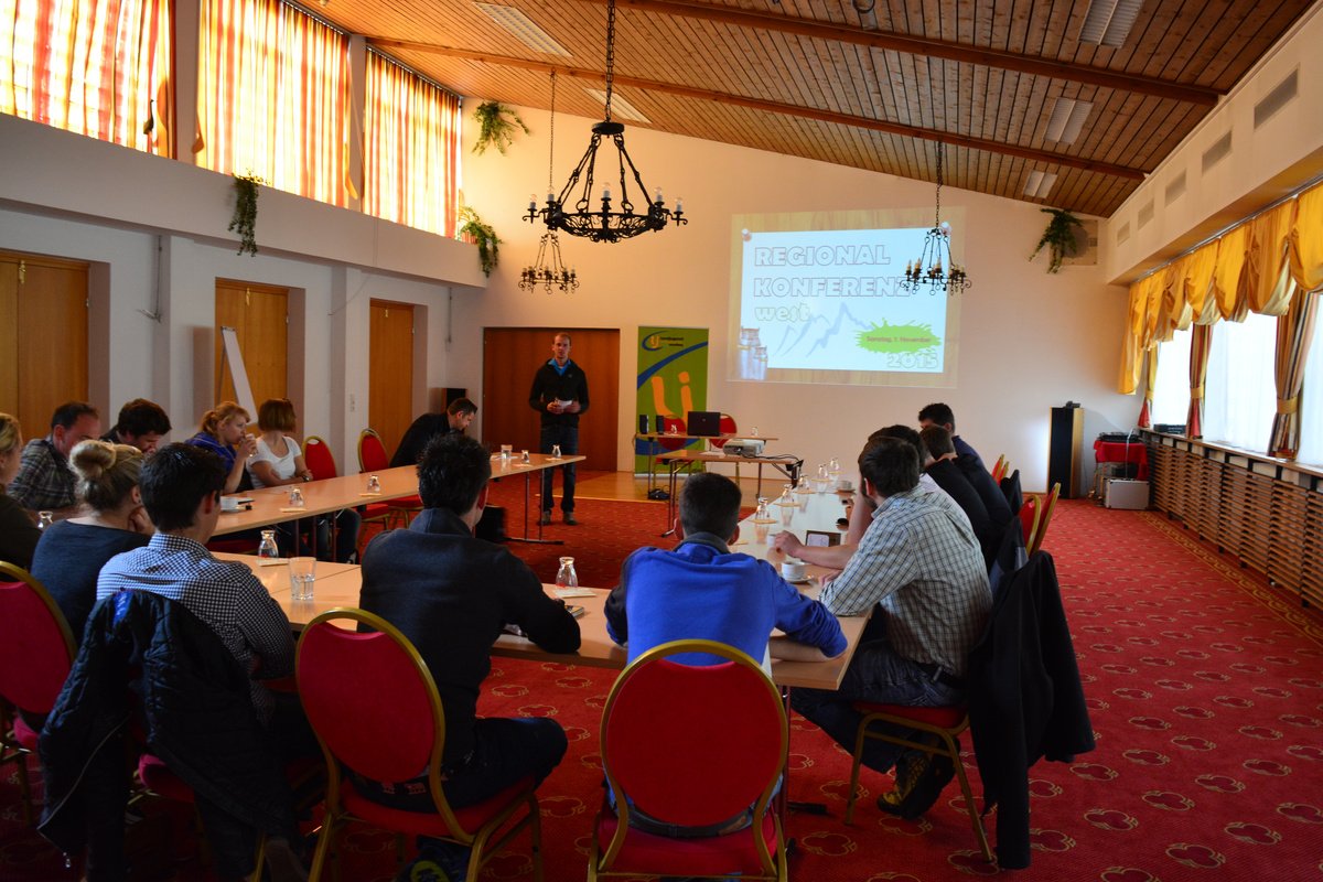 Am Samstag, 7. November fand im Hotel Vitalquelle Gauenstein in Schruns die Regionalkonferenz West der Jungbauern aus Vorarlberg, Tirol und Salzburg statt. Zum ersten Mal fand die überregionale Jungbauernkonferenz West hier in Vorarlberg statt. Treffpunkt war im Hotel Vitalquelle Gauenstein in Schruns. Moderator Bernhard Schrottenbaum stellte nach der Begrüßung das Schwerpunktthema der Veranstaltung - "Michwirtschaft im Mittelpunkt" vor. Passend zum Thema startete das Programm mit einem Vortrag von Mag. Raimund Wachter. Der Geschäftsführer der Vorarlberg Milch ging dabei besonders auf die Chancen in der Milchwirtschaft für Landwirte und Milchverarbeiter ein. Heiß diskutierte Themen, wie die Abschaffung der Milchquote und deren Folgen wurden aufgegriffen. Auch die Milchpreisentwicklung der letzten Jahre wurde von Herrn Wachter angesprochen. Vor allzu genauen Zukunftsprognosen warnt er jedoch, denn wie sich in der Vergangenheit gezeigt hat, ist es sehr schwierig einen Trend in der Milchpreisentwicklung vorherzusagen. "Natürlich versucht die Vorarlberg Milch den Preis so stabil wie möglich zu halten, ein schwieriges Unterfangen bei der derzeitigen Milchmarktsituation", so Wachter. In Zukunft will die V-Milch vor allem den Export ihrer Produkte, sowie die Ausweitung des BIO-Sortiments forcieren. Den nächsten Vortrag zum Thema "Milchwirtschaft im Mittelpunkt" hielt der Obmann der KäseStrasse Bregenzerwald Jonas Metzler. Er stellte dabei die KäseStrasse als ein starkes Netzwerk mit guten Zukunftschancen vor. Die KäseStrasse ist eine Kooperation von Landwirten, Dorf- und Talsennerein, Gastronomie und Hotellerie, Handel, Handwerk und Tourismus. Ziel ist es, kleine Strukturen zu erhalten und die regionale Vermarktung auszubauen. "Regionalität sichert die Glaubwürdigkeit des Tourismus", sagt Obmann Jonas Metzler. Besonders stolz ist er, dass alle Sennereien der KäseStrasse ausschließlich mit Heumilch beliefert werden. Der Bregenzerwald ist somit die größte zusammenhängende silofreie Region in der EU. In Zukunft will man die Marke KäseStrasse noch weiter verbreiten, sie garantiert die hundertprozentige Herkunft aus dem Bregenzerwald.