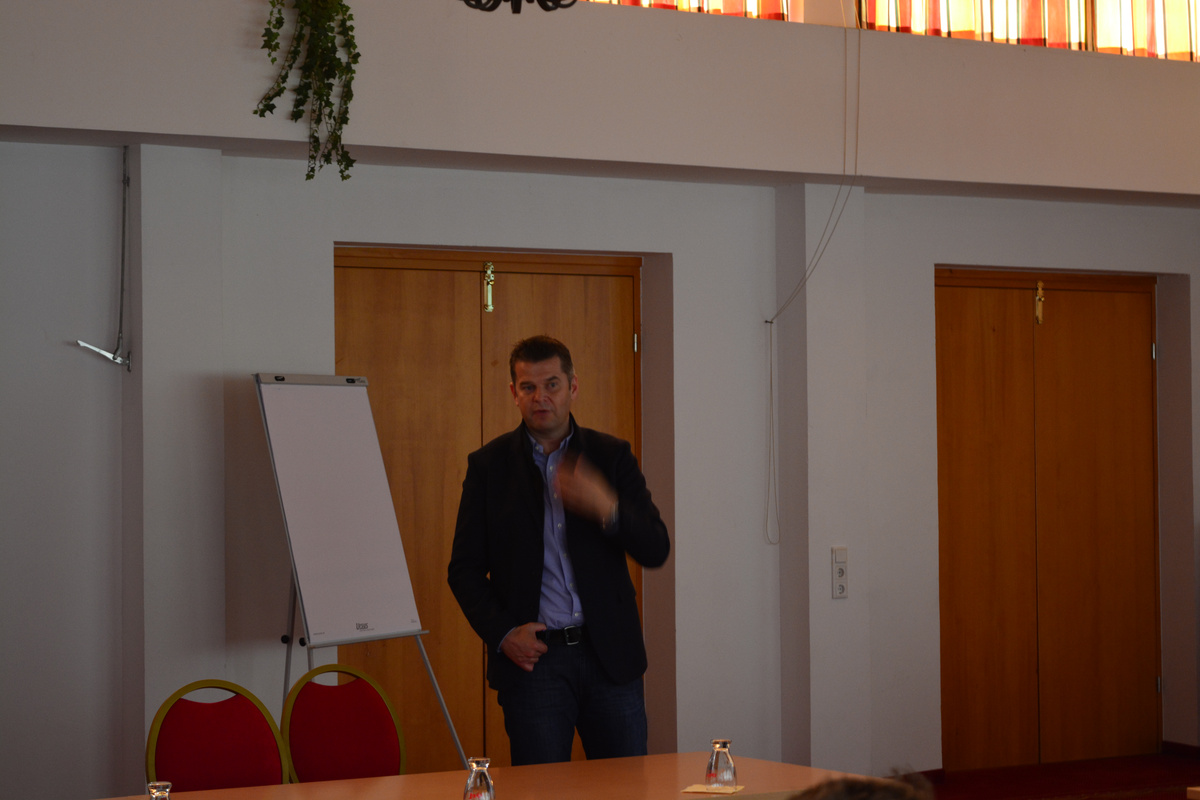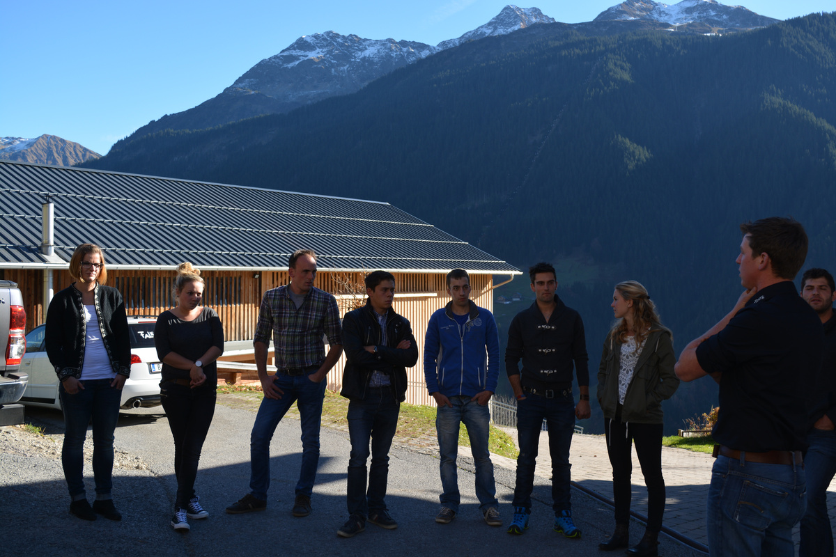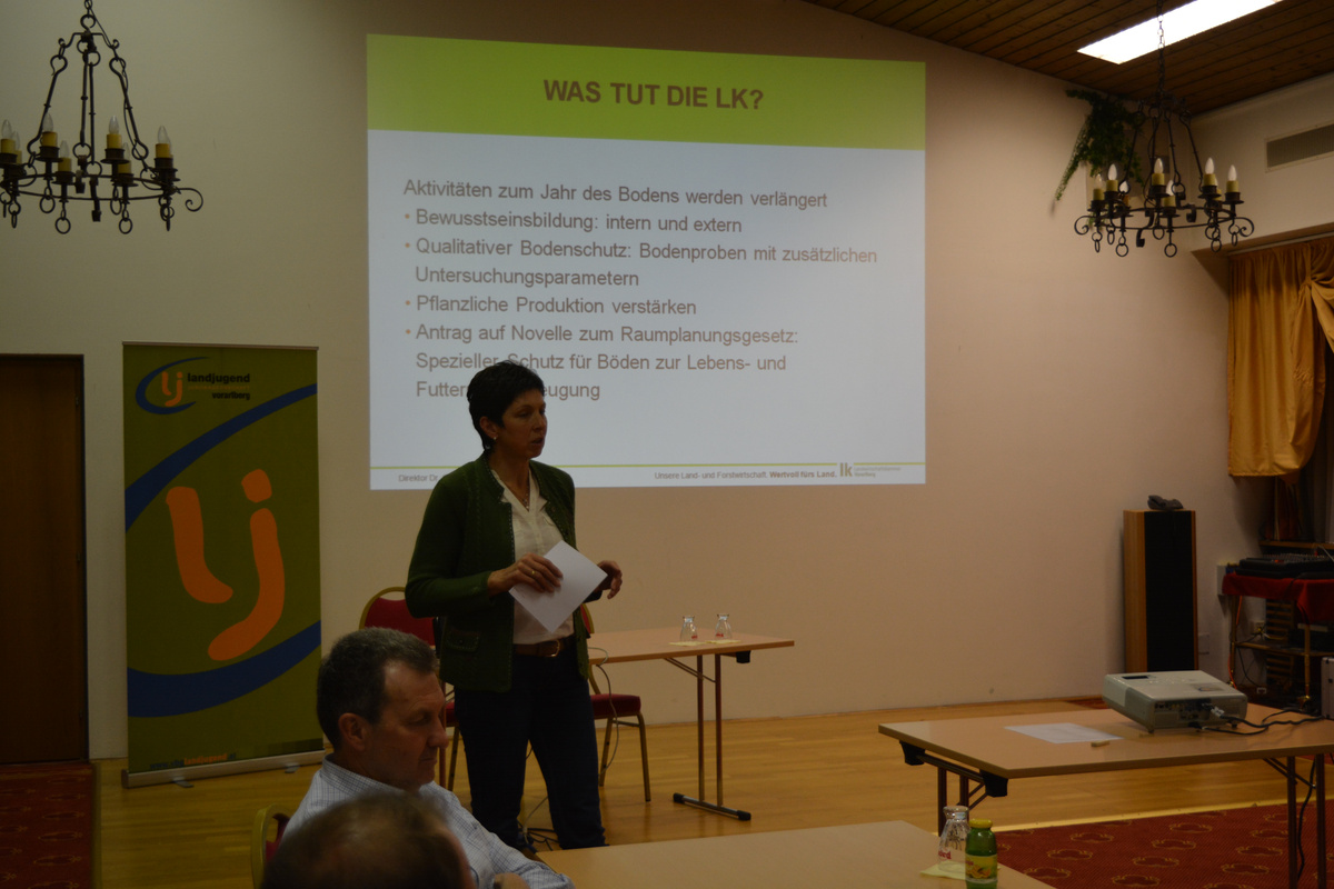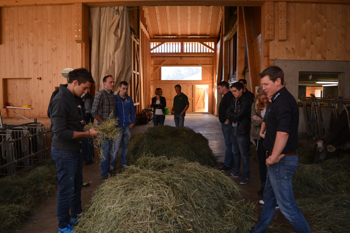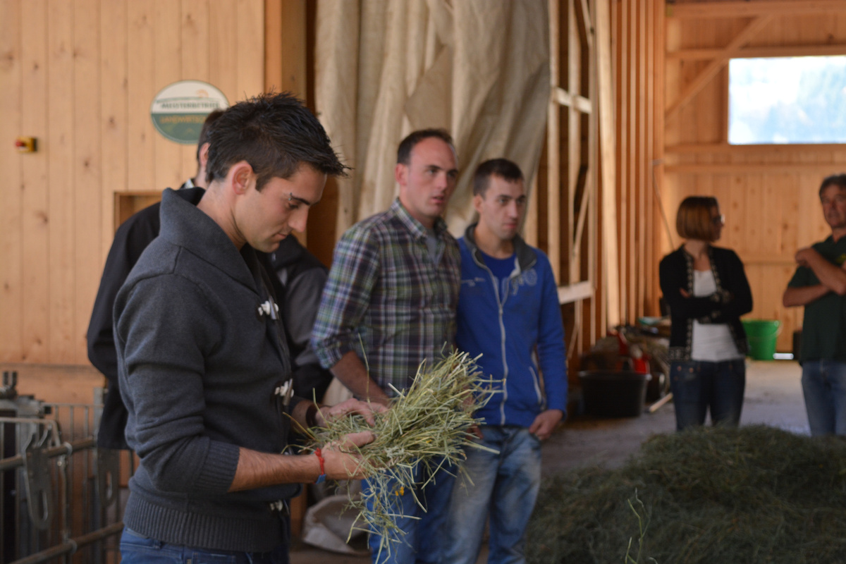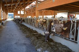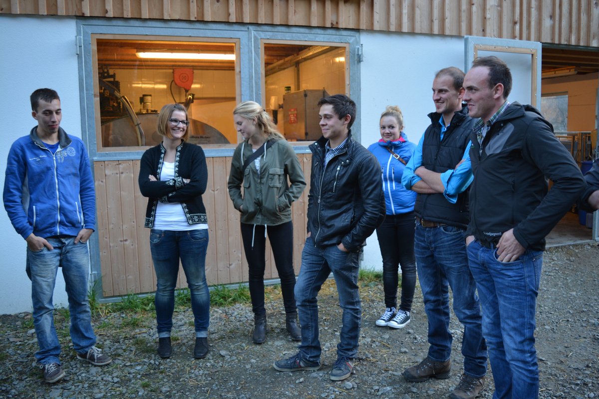 Nach dem Mittagessen ging es nach Bartholomäberg zum Bio-Bergbauernhof der Familie Ganahl. Auf 1080 Metern Seehöhe bewirtschaftet die Familie eine Fläche von 32 Hektar, zum größten Teil in steilem Gebiet. Zudem hat Sohn Thomas seit 2014 die Alpe Oberbuchen im Gemeindegebiet von Silbertal gepachtet. Ein Großteil des Stallgebäudes wurde neu gebaut um höchsten Tierkomfort zu gewährleisten. Neben der Milchproduktion setzt die Familie auf Direktvermarktung. In der neuen Hofkäserei wird Bio-Surakees hergestellt und an Privatkunden und die heimische Gastronomie verkauft. Ein weiteres finanzielles Standbein der Familie Ganahl ist Urlaub am Bauernhof. Durch die Hofbesichtigung bei Familie Ganahl erhielten die Teilnehmer eine Vorstellung was es bedeutet, einen Bergbauernhof zu bewirtschaften. Vom "Bärg" ging es wieder zurück ins Tal auf den Bauernhof der Familie Schrottenbaum in Schruns. Dort führt Bernhard zusammen mit seinem Bruder Manuel den Betrieb seiner Eltern weiter. Auch der Rest der Familie hilft tatkräftig mit, denn auch auf dem Hof der Familie Schrottenbaum geht die Arbeit nicht so schnell aus. Der Betrieb bewirtschaftet 51 Hektar, auf 7 davon wird Mais angebaut und an die Tiere verfüttert. Die Familie betreibt neben der Milchproduktion, auch noch Kälber- und Schweinemast, sowie Pensionspferdehaltung. Ein besonderes Highlight dieser Hofbesichtigung war der neu gebaute Laufstall mit Melkroboter. Dieser moderne und innovative Betrieb zeigte den Teilnehmern wie sich traditionelle Landwirtschaft und neue Technologien gut miteinander verbinden lassen. Am Abend wurde mit Bundes- und Landesbäuerin Andrea Schwarzmann und Landwirtschaftskammerdirektor Dr. Gebhard Bechter eine offene Diskussion zu den Themen Bodenverbrauch und Lebensqualität am Bauernhof geführt. Ein gelungener Abschluss nach einem interessanten und abwechslungsreichen Tag.