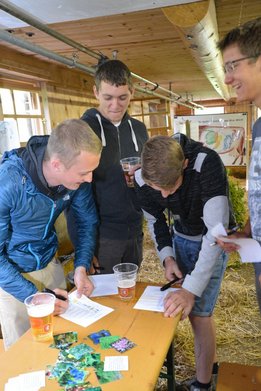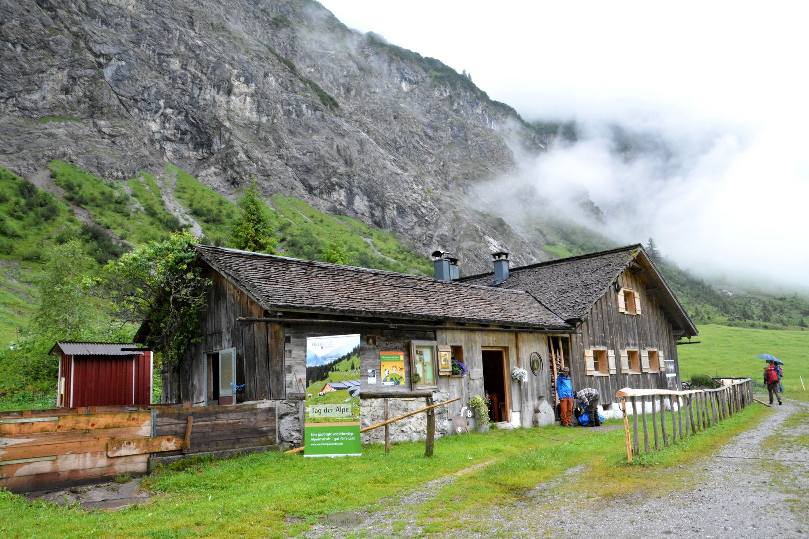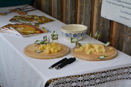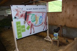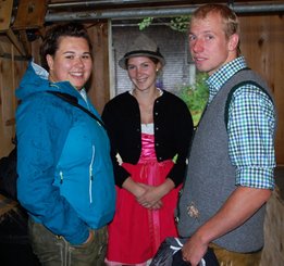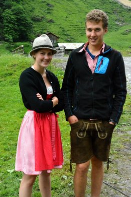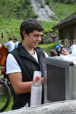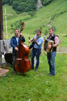 Die Alpe Metzgertobel im Großen Walsertal war am vergangenen Sonntag, 25. Juni ein tolles Ausflugsziel. Ein Shuttlebus ermöglichte den rund 150 Gästen trockenes Ankommen auf der 1.200 Meter hoch liegenden Alpe in Buchboden. Auch dem Regen trotzende Wanderer waren unter den Alpgästen. Für Klein und Groß gab es vieles zu Entdecken. Neben den frechen Ziegen die ständig ausbüxten und den friedlich weidenden Kühen gab es für die Kinder eine tolle Schaukel und einen Älpler-Fußballplatz, so wie man ihn sich vorstellt. Auf Begeisterung stieß auch der Erlebnispfad "Vom Gräs zum Käs". Dort erfreuten sich die Alpbesucher über ihren eigens geschüttelten Butter und das darauffolgende Butterbrot, ihre Melkurkunde, und über die spielerisch zu endeckenden Informationen, wie Kuh Rosalinde aus Gras Milch macht. Für Hauptorganisatorin Hannah Türtscher und ihre Familie, sowie für die Mitorganisatoren Martin Rusch und Karin Steuer vom Land Vorarlberg war der Tag ein Erfolg. "Wir wollten mit dem Tag der Alpe der Bevölkerung das Leben auf der Alpe näherbringen. Ein besonderes Anliegen war es mir, den Kindern aufzuzeigen, wie Milch und Käse entsteht. Dies auf spielerische Art und Weise zu vermitteln, war für mich eine spannende Herausforderung. Darum freut es mich umso mehr, dass der Pfad von Jung und Alt so gut angenommen wurden", so Türtscher. Für beste Verpflegung sorgte die Landjugend Großwalsertal und stillte den Hunger und Durst jedes Einzelnen mit viel Freude und Humor. Das Wälder Trio übernahm die musikalische Umrahmung.