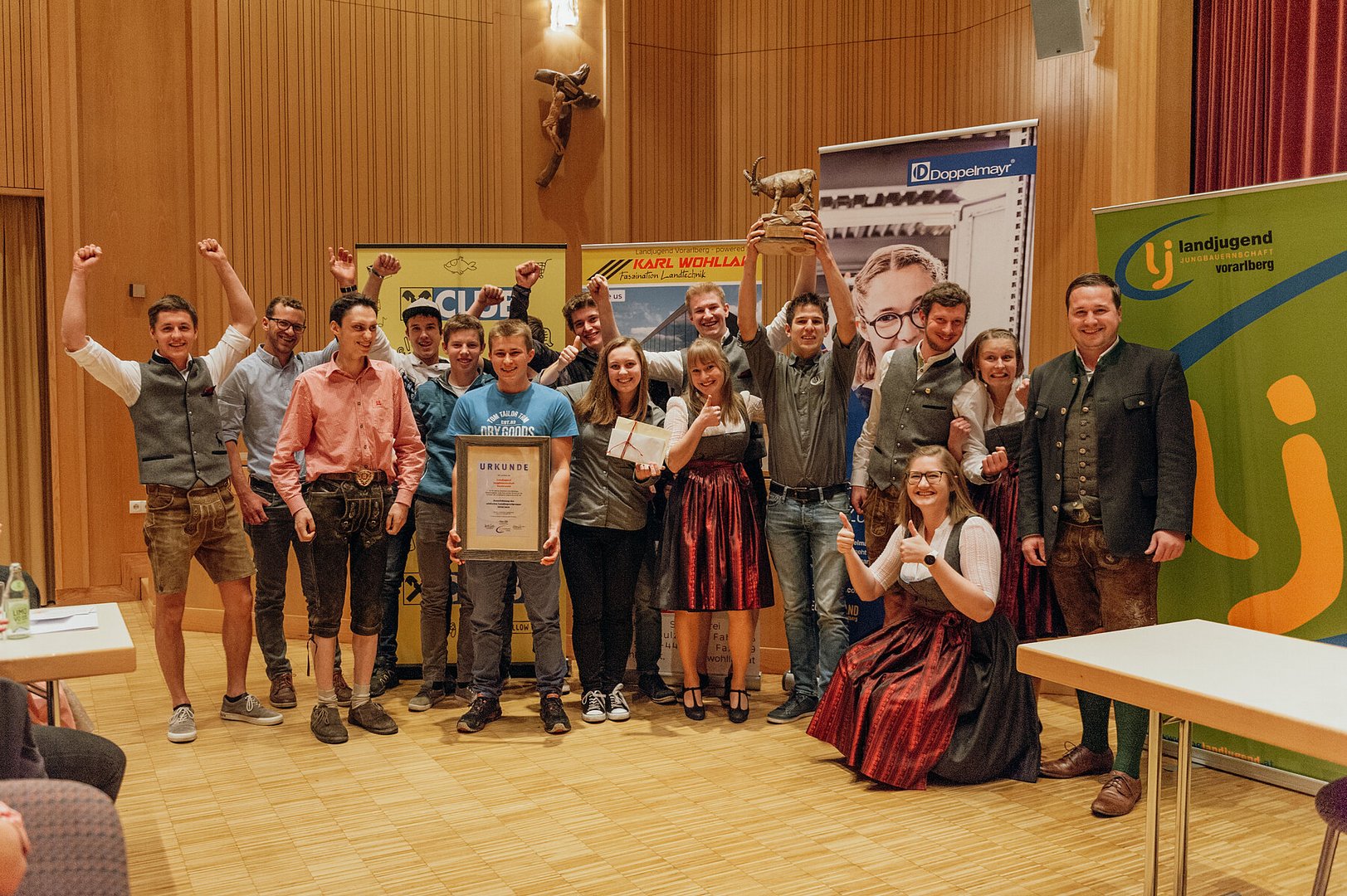 Zwei unvergessliche Jahre erlebte die Landjugend Jungbauernschaft Vorderwald, welche sich bereits zum 3. Mal gegen alle 13 Landjugendgruppen durchsetzen konnte und 2021 zur aktivsten Landjugend gekürt worden ist. Der Vorarlberger Landjugend-Steinbock für die aktivste Ortsgruppe und der Gutschein für eine Spanferkelpartie inkl. einem Besuch der Guggamusig „Emser Palast-Tätscher“ wurde voller Stolz überreicht.