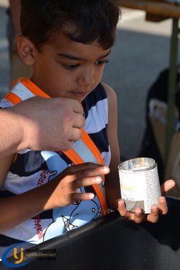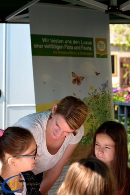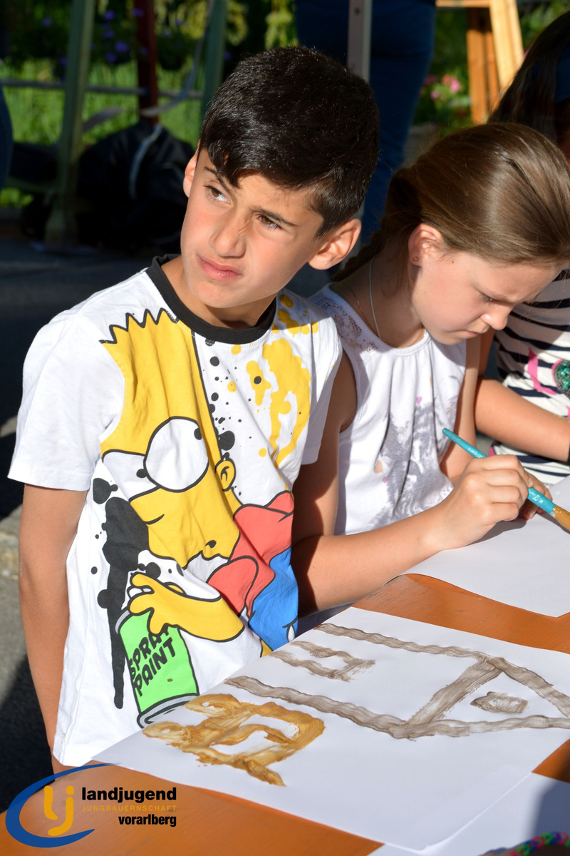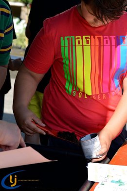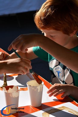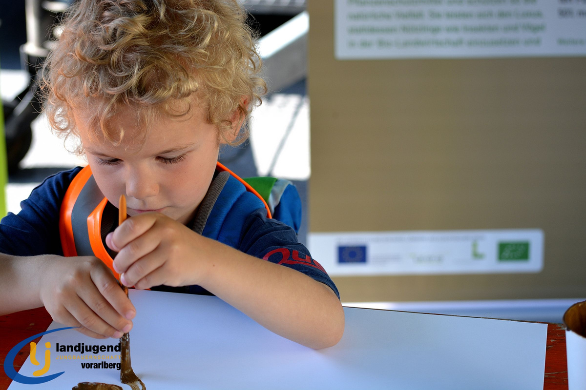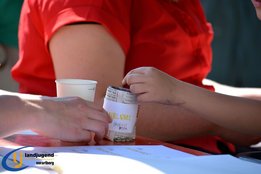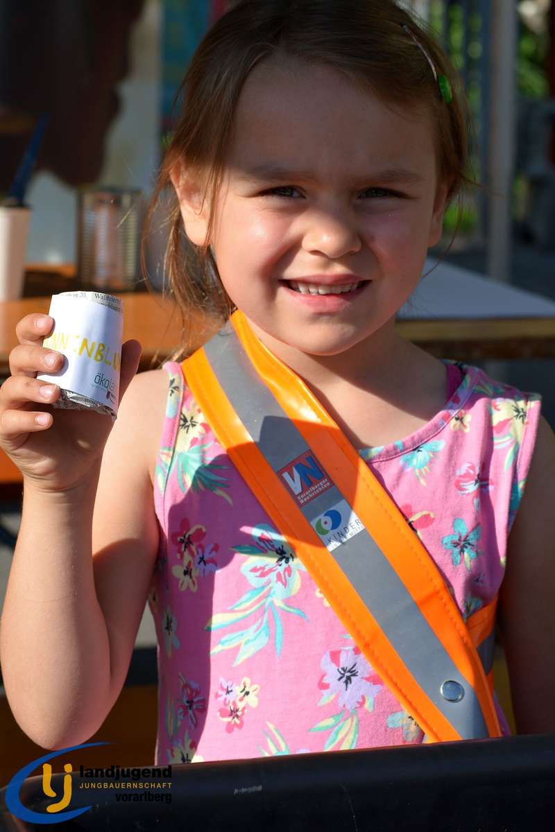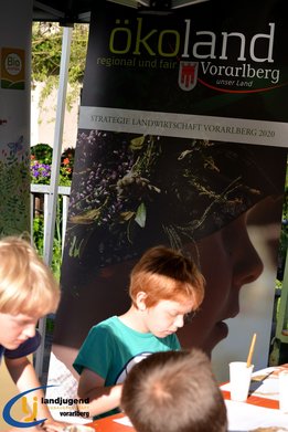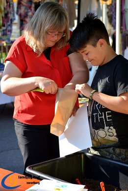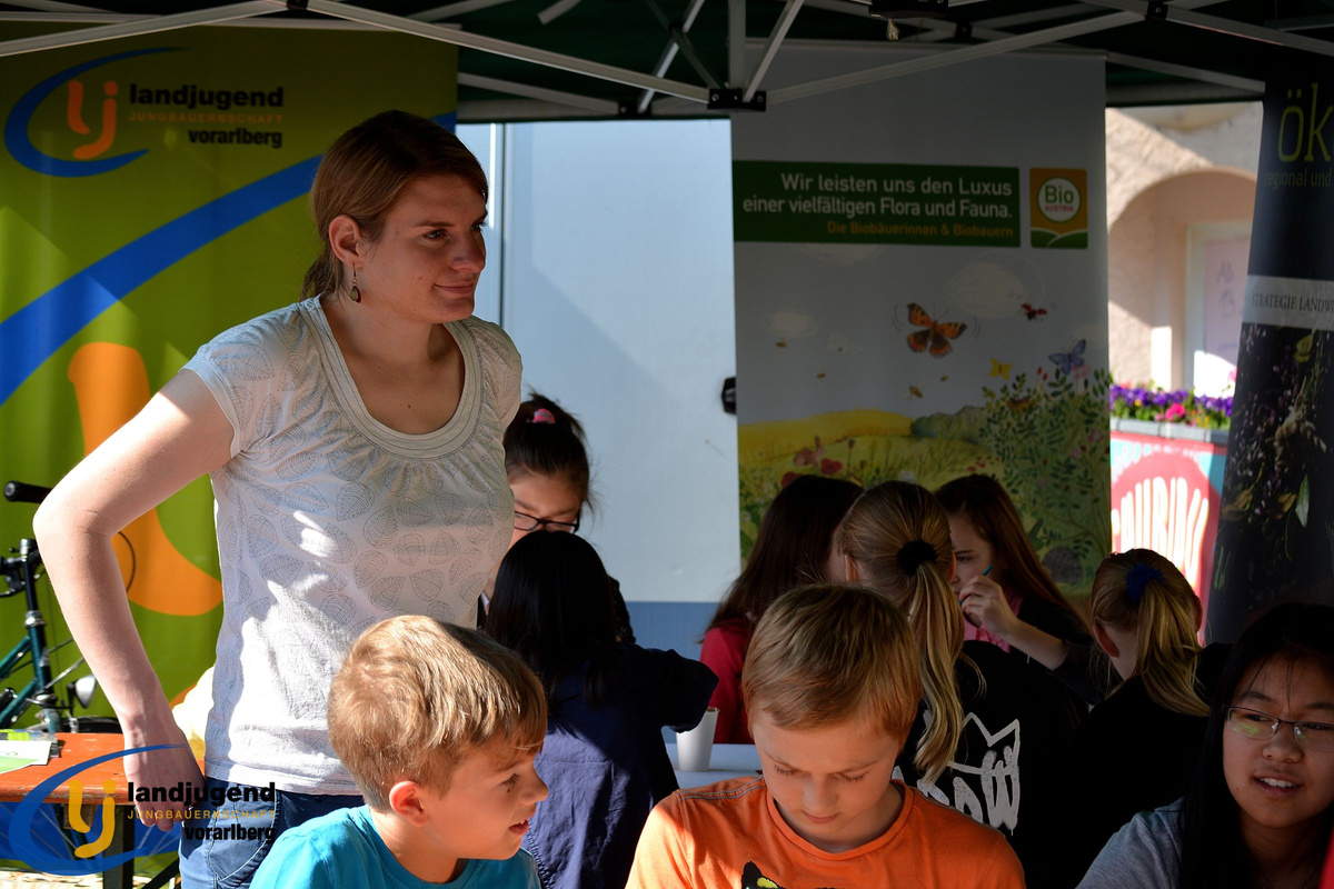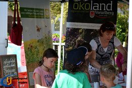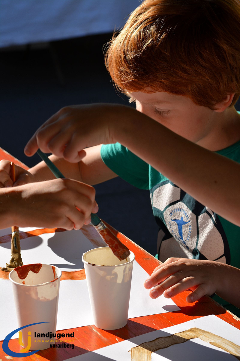 Am Mittwoch, 3. Juni gab es für die Harder Kinder der Kindergärten Seezentrum und Kunterbunt am See sowie Klassen der Volksschule Markt und der Mittelschule Markt auf dem Harder Markt Einiges zu erleben. Die Marktgemeinde Hard hatte zum Aktionstag "Lebensmittel sind kostbar - Verwenden statt verschwenden" eingeladen. Beim Kühlschrankspiel erlernten die Kinder spielerisch, welche Lebensmittel in welchem Bereich des Kühlschranks gelagert werden sollten. Und erfinderische Leute konnten mit einem Tipp gegen Lebensmittelverschwendung am Gewinnspiel teilnehmen und Honig gewinnen. Doch damit noch nicht genug: Die Landjugend Jungbauernschaft Vorarlberg, Verein vom Ländle Bur, Abt. Landwirtschaft des Landes Vorarlberg, Bio Austria Vorarlberg und Schule am Bauernhof boten verschiedene Aktivitäten an. Tanja Pitter war Herrin über die Erdfarbentöpfe und regte die Kinder an, ihre Gedanken zum Thema Bauernhof gemalt zu Papier zu bringen. Ein wenig Geschick oder Hilfe von Elisabeth Zeiner oder Barbara Geißler brauchten die Schüler zur Herstellung von Anzuchttöpfchen aus Zeitungspapier. Beate Bück half dann beim Befüllen der Töpfe mit Erde und beim Säen von Sonnenblumen. Mit transportfähig verpackten Blumentöpfchen und den Erdfarben-Bildern ging es für die Kinder wieder zurück in den Kindergarten oder das Klassenzimmer. Auch die erwachsenen Marktbesucher gingen nicht leer aus. Informationsmaterialien über den Bodenverbrauch in Vorarlberg wurden von der Landjugend Jungbauernschaft verteilt und von den Wochenmarktbesuchern dankend angenommen.
